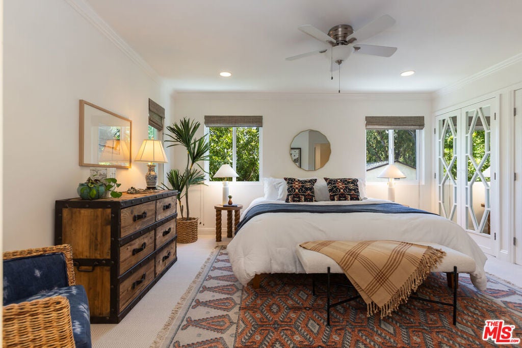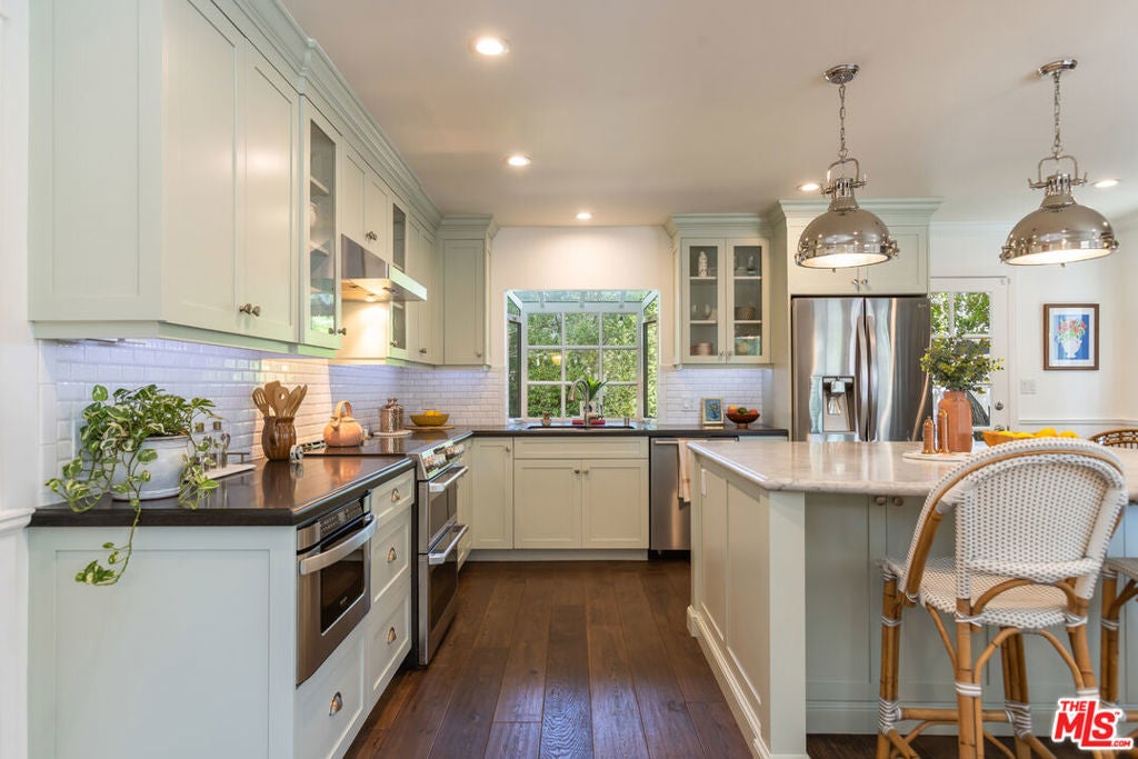 Charming and full of character, this SoCal-meets-Cape Cod home blends warmth, functionality, and thoughtful updates in one of Woodland Hills' most walkable neighborhoods. From the moment you arrive, the home feels warm and welcoming, with timeless details including beadboard, classic moldings, stained glass windows, and a cozy wood-burning fireplace.The spacious kitchen and dining area form the heart of the home, perfectly designed for anyone who loves to cook and gather. The efficient layout places everything within easy reach, while a sunny window above the sink overlooks the lush backyard and visiting birds.With a main-floor bedroom and adjacent full bathroom, this home would work wonderfully for multigenerational living. The upstairs bedrooms are bright and cheerful, each with windows on two sides that fill the rooms with natural light.The private backyard is shaded by a magnificent mature ash tree and surrounded by colorful landscaping, fruit trees, and culinary herbs. Lime and Meyer lemon trees, crepe myrtles, and a raised garden create a peaceful outdoor retreat that stays shaded in the summer.Extensive improvements include a 2023 roof with cool-roof shingles, solar panels with sunlight backup, an EV charger, updated HVAC components, an induction range, a tankless water heater, a seismic retrofit, dual-pane windows, and more.Located on a friendly, vibrant street with excellent guest and street parking, this home offers exceptional walkability. Just moments away are Lodge Bread, Blue Bottle Coffee, Brother's Sushi, Whole Foods, Trader Joe's, Serrania Park, and scenic Mulholland trails, while Topanga Village, Malibu Creek State Park, and the beach are all within easy reach.This home is a rare combination of charm, smart upgrades, and an unbeatable lifestyle location.