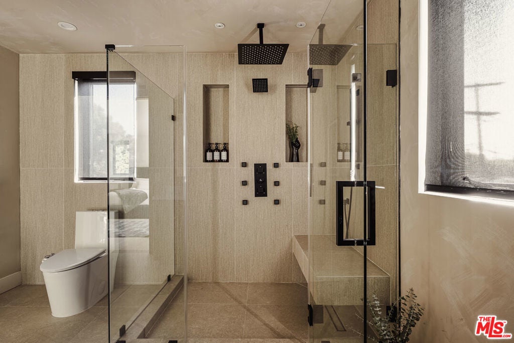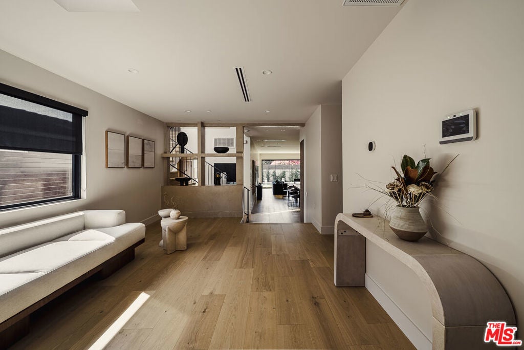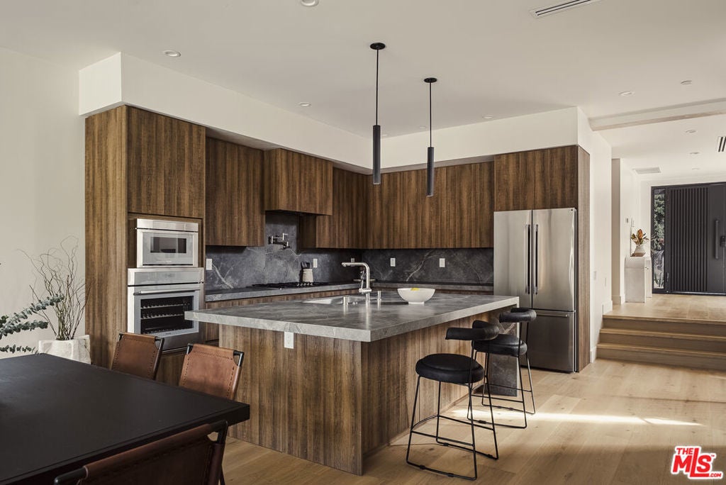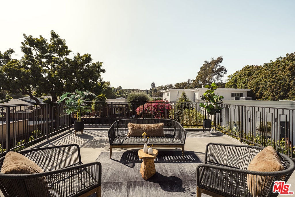 Experience modern luxury in this fully reimagined, 3-bedroom, 3-bath villa nestled in the heart of coveted West LA. Beyond the striking front entry with its custom metal door, an open living area seamlessly connects to the designer kitchen and two spacious ensuite bedrooms on the main level. A built-in wine display elegantly anchors the space under the staircase, adding a refined touch - the main living area flows effortlessly into a firesided family room framed by expansive Fleetwood glass doors that open to a private, resort-style backyard complete with an outdoor kitchen, pool & spa, and fire pit, all surrounded by mature ficus for ultimate seclusion. Up the sunlit staircase awaits the primary suite, a tranquil retreat featuring a generous walk-in closet, spa-inspired bath, and a sprawling west-facing deck perfect for enjoying the afternoon sun and evening breezes - tailored perfectly and fully furnished for the most discerning buyers.