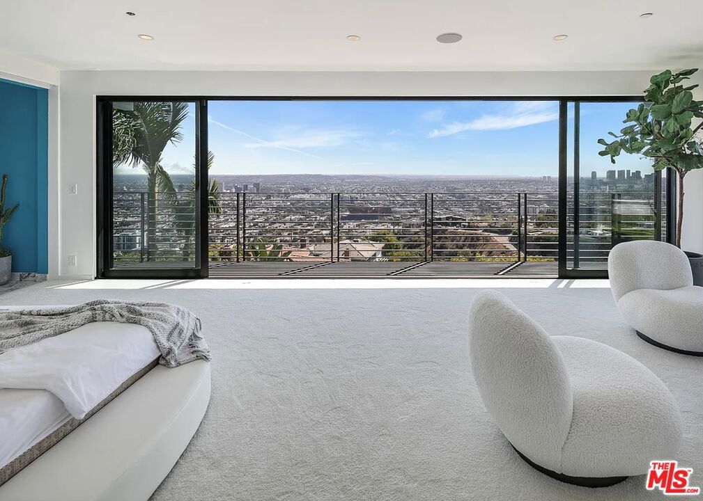 A newly reimagined contemporary estate showcasing dramatic 360-degree views, perched in the prestigious Bird Streets at the end of a serene cul-de-sac just above the Sunset Strip. Secure and secluded, the residence commands sweeping sightlines from Downtown Los Angeles to Century City and out to the Pacific coastline.Thoughtfully designed for effortless indoor-outdoor living, the main level features a bright, open layout with Fleetwood sliding glass walls that extend to more than 1,450 square feet of wraparound terrace space. Lush, mature landscaping surrounds the property, which also includes a direct-entry two-car garage and a separate service access to the kitchen.The outdoor setting evokes a private resort, highlighted by a rare flat grassy yard, a saltwater pebble-finish pool and spa, sunken fire lounge, outdoor sauna, built-in kitchen, and an entertaining pavilion. Inside, the chef's kitchen is appointed with top-tier Viking, Miele, and Sub-Zero appliances.The home offers four generously sized en-suite bedrooms, including a luxurious primary suite with dual spa-inspired bathrooms complete with a steam shower, soaking tub, and bidet, along with an expansive walk-in closet. A private approximately 850-square-foot rooftop-style terrace off the primary suite captures striking city and canyon views.Additional features include a dedicated screening room with projector and Sonos audio, an upper-level lounge, and elevator service to every floor. A rare opportunity to own a private retreat in one of Los Angeles' most sought-after hillside neighborhoods.
