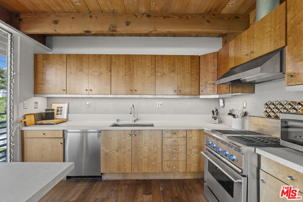 Located in the hottest neighborhood in Los Angeles just steps from Soho House. This hip and sexy mid century gem is nestled perfectly in the heart of the coveted Bird Streets, just minutes from the heart of Beverly Hills and West Hollywood. Renovated by architect Frank D. Israel who epitomized the creative ferment of contemporary Hollywood, with a classic style maintained and updated for ease of living, creating the perfect escape from the city and surrounded by A list celebrities and Forbes listers alike. Great open floor plan with 2 bedrooms & newly updated baths and a large wrap around deck to enjoy the serene canyon and city views only the famed Bird Streets can offer.
