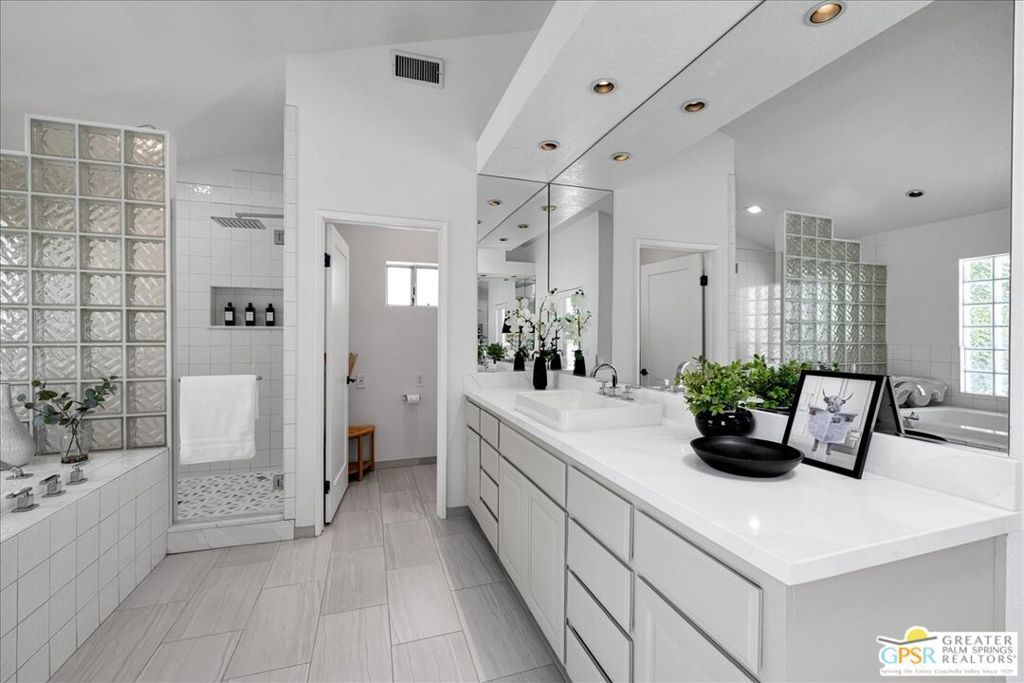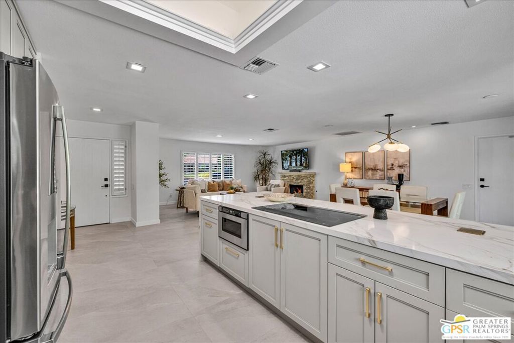LARGEST HOUSE IN THE NEIGHBORHOOD with ONE OF THE LARGEST PRIMARY BEDROOMS ANYWHERE! The Primary Suite alone is almost 1,000 square feet and features a vaulted ceiling, gas fireplace and a huge walk-in closet with built-in shelves and access to a large attic storage area above. The Primary Bathroom features dual sinks and vanities with 18 feet of counter space, a very large shower and separate oversized soaking tub and a water closet. A second primary bedroom has its own redone bathroom with dual sinks. Both primaries have direct access to the redone pool, spa and spacious yard. The GREAT ROOM features a second fireplace and ceramic tile floors throughout. The kitchen has new cabinets and QUARTZ COUNTERTOPS, stainless refrigerator and dishwasher, and a new built-in drawer-style microwave and glass surfaced INDUCTION COOKTOP in the 13-foot long peninsula with a waterfall edge, pop-up electrical outlets and seating for 4 or more. Two more guest bedrooms and a third redone bathroom complete this spacious home. There are skylights in the kitchen, bathrooms and hallways and ceiling fans in each of the bedrooms. The house has dual HVAC units and two gas water heaters. The pool, spa and decking were just redone along with adding a new Pentair Intellicenter wifi-controlled automation system. The oversized 2-car garage features extra storage and direct access. The long driveway provides additional off-street parking. The oversized lot features room to expand or possibly add an ADU with existing unapproved plans included in the sale of this spectacular home.