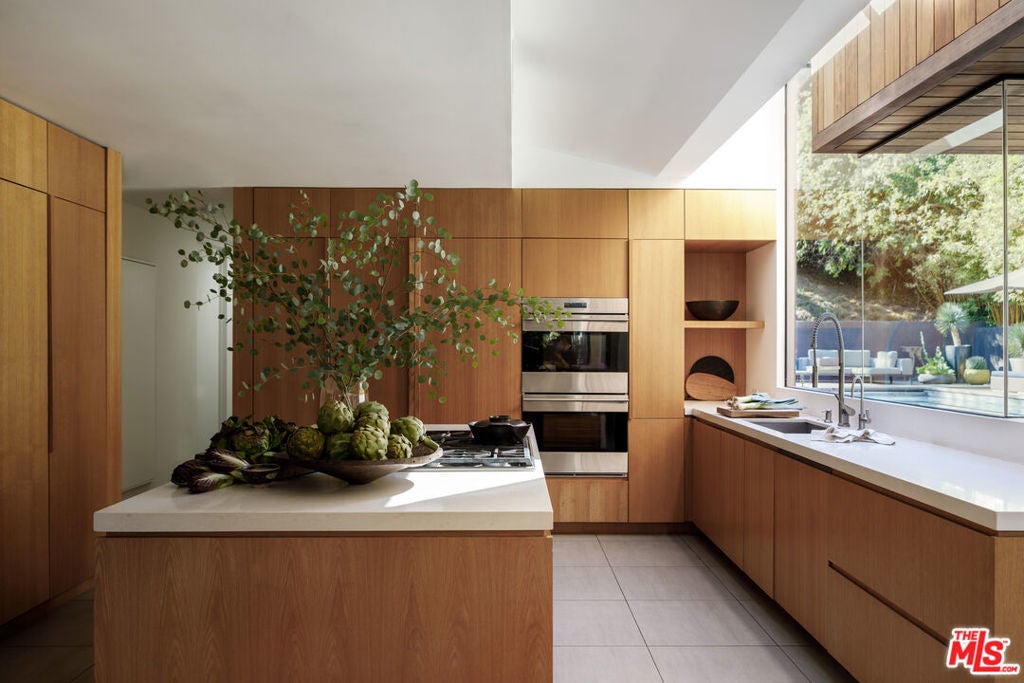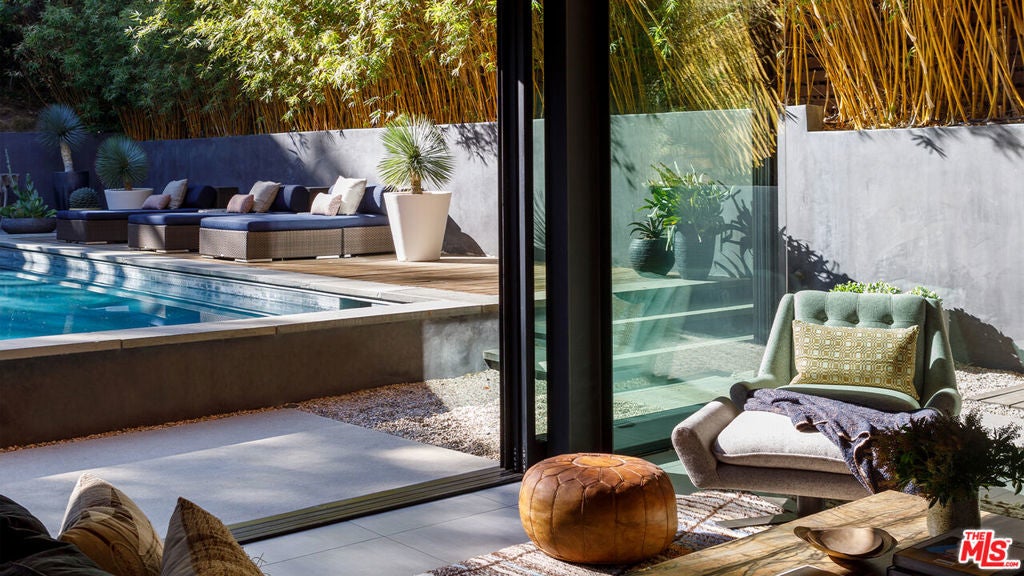 Available for long-term lease, furnished or unfurnished. Experience elevated living in this masterfully reimagined Mid-Century modern residence, ideally located within the acclaimed Wonderland Avenue Elementary School district and near the Mulholland Tennis Club, in Laurel Canyon's exclusive Wonderland Park enclave. This fully furnished architectural masterpiece seamlessly blends historic charm with contemporary luxury, offering an unparalleled rental opportunity in one of Los Angeles' most coveted neighborhoods. The thoughtfully designed floor plan showcases a dramatic thirty-foot skylight that floods the interior with natural light, while floor-to-ceiling sliding glass doors create a seamless connection to private outdoor spaces. The five-bedroom residence features a luxurious primary suite with sweeping canyon views, perfect for those seeking a sophisticated work-from-home lifestyle with its treehouse-inspired office. The gourmet kitchen serves as the home's centerpiece, appointed with custom white oak cabinetry and dual Caesarstone waterfall islands ideal for entertaining. Additional amenities include a dedicated screening room, whole-home Control 4 system with built-in speakers, and a sparkling heated pool surrounded by mature landscaping. This turn-key offering comes completely furnished with designer selections and sustainably minded features including solar power. Nestled among architectural landmarks including Pierre Koenig's Case Study House #21, this exceptional property offers distinguished residents the opportunity to experience the pinnacle of Los Angeles luxury living in a historically significant setting.