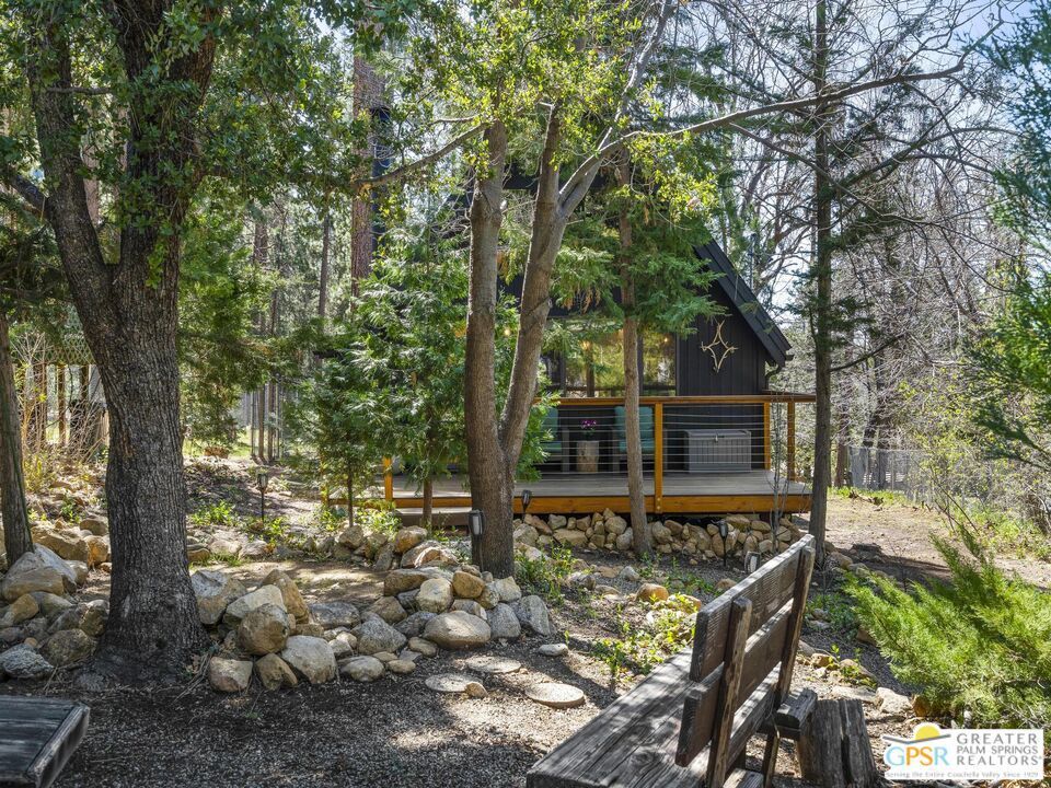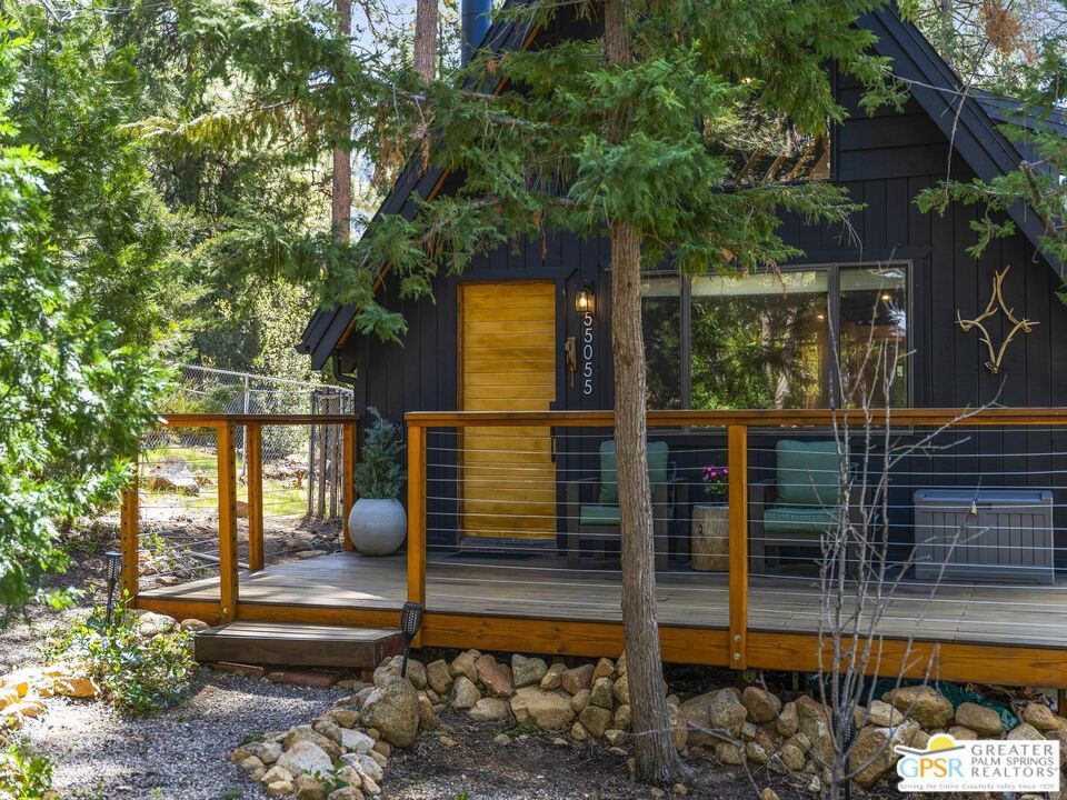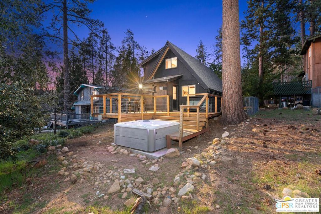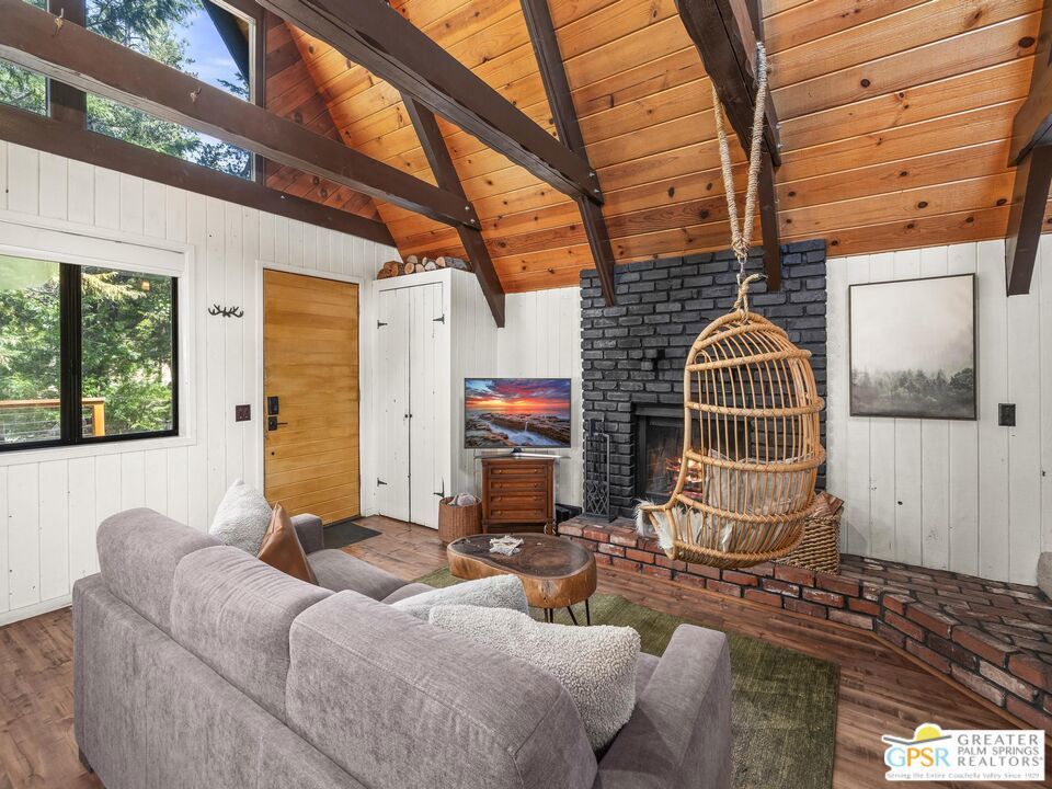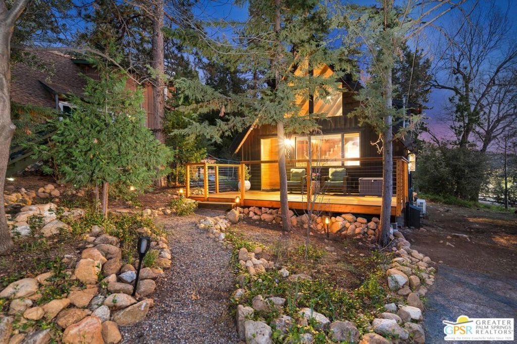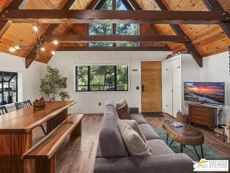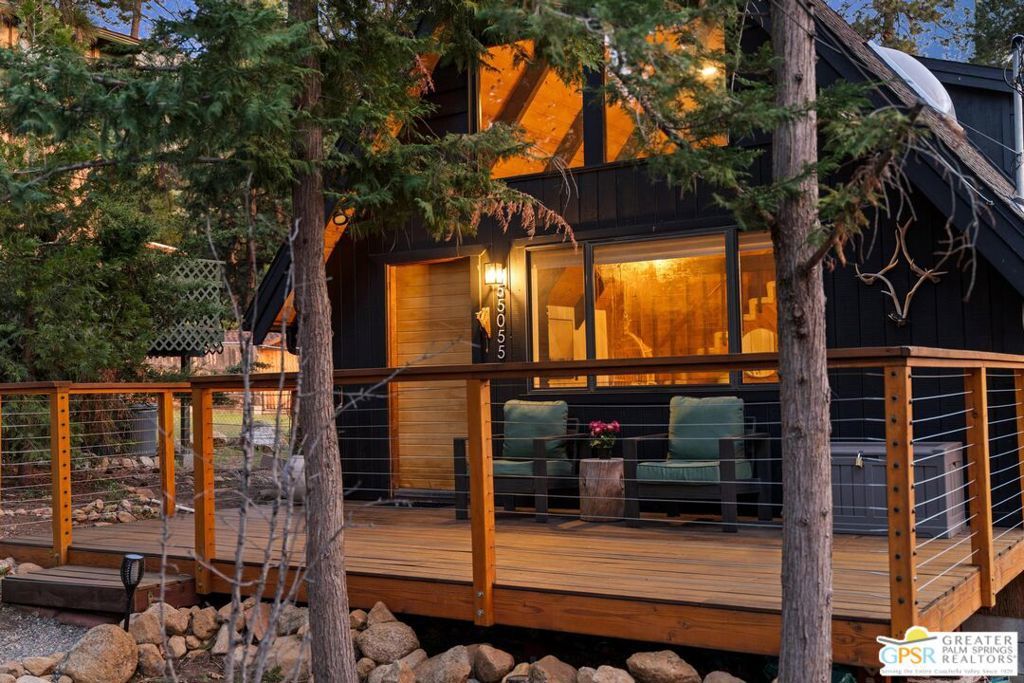 A-frame cabin just minutes from the village. Defined by its classic A-frame architecture, this stunning cabin features vaulted ceilings & dramatic windows that flood the interior with natural light & showcase peaceful forest views. Nestled among towering pines in highly sought-after Fern Valley it offers a seamless blend of rustic charm and modern comfort in a serene setting.The open concept living area is designed for relaxation & entertaining, with warm wood finishes creating an inviting mountain atmosphere. Thoughtfully designed for comfort & functionality, the layout is ideal for weekend getaways or full-time living. Step outside to enjoy multiple outdoor spaces, including a jacuzzi, perfect for soaking under the stars after a day exploring nearby trails. Start your mornings on the deck with a cup of coffee, breathing in the crisp mountain air & taking in the forest surroundings. Minutes from hiking trails, outdoor recreation, dining & entertainment, this property offers the ultimate mountain lifestyle. Whether you're searching for a weekend get-away, investment, or full-time residence, this distinctive A-frame cabin presents a rare chance to own a piece of Idyllwild paradise.