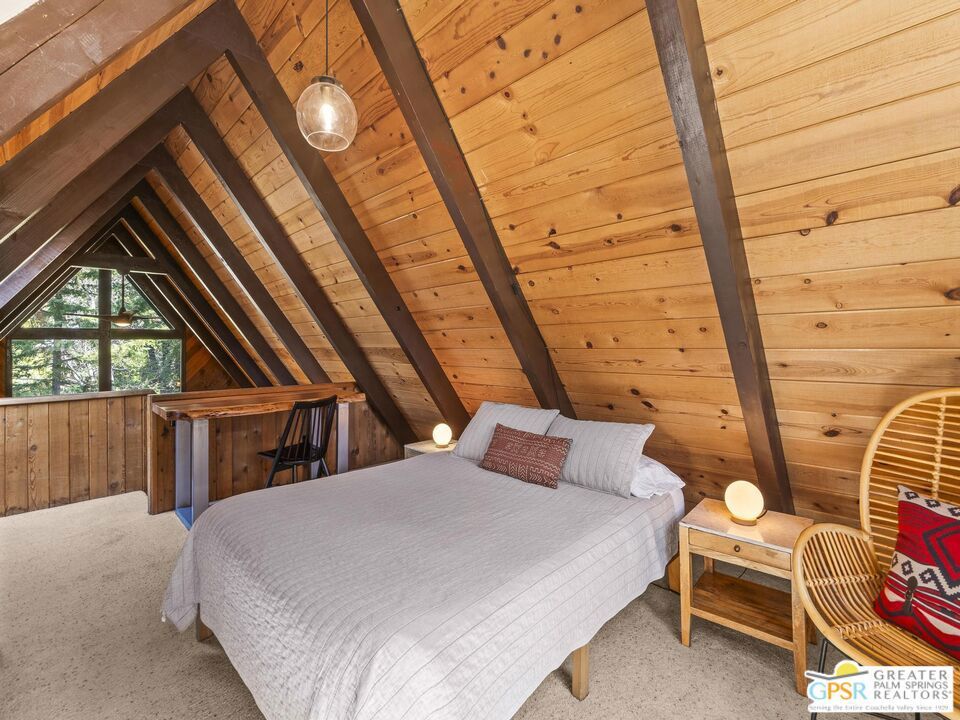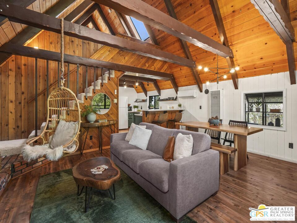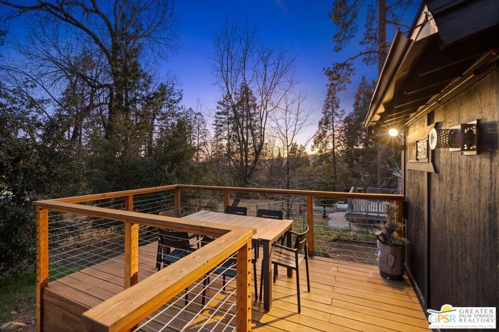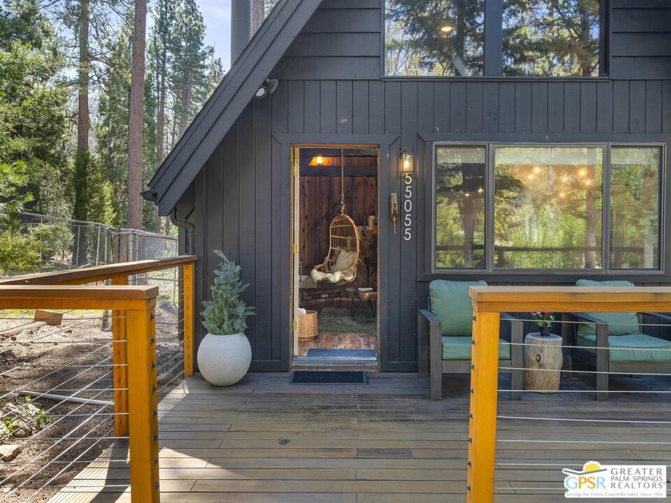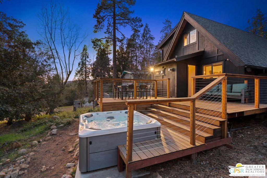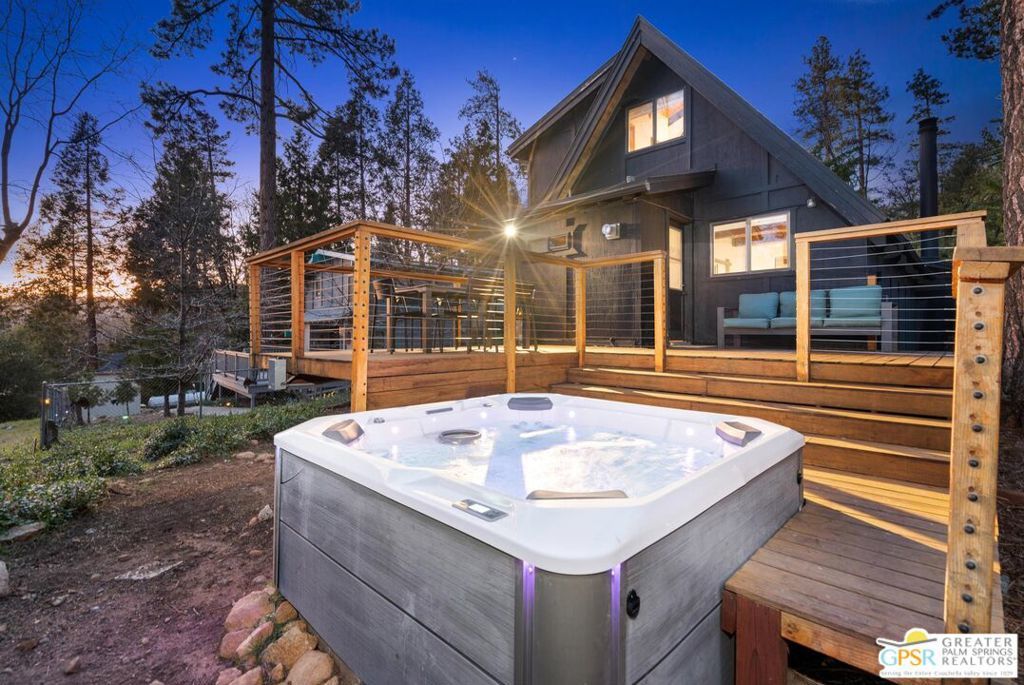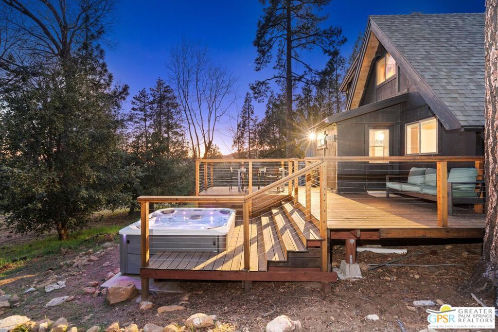 A-frame cabin just minutes from the village. Defined by its classic A-frame architecture, this stunning cabin features vaulted ceilings & dramatic windows that flood the interior with natural light & showcase peaceful forest views. Nestled among towering pines in highly sought-after Fern Valley it offers a seamless blend of rustic charm and modern comfort in a serene setting.The open concept living area is designed for relaxation & entertaining, with warm wood finishes creating an inviting mountain atmosphere. Thoughtfully designed for comfort & functionality, the layout is ideal for weekend getaways or full-time living. Step outside to enjoy multiple outdoor spaces, including a jacuzzi, perfect for soaking under the stars after a day exploring nearby trails. Start your mornings on the deck with a cup of coffee, breathing in the crisp mountain air & taking in the forest surroundings. Minutes from hiking trails, outdoor recreation, dining & entertainment, this property offers the ultimate mountain lifestyle. Whether you're searching for a weekend get-away, investment, or full-time residence, this distinctive A-frame cabin presents a rare chance to own a piece of Idyllwild paradise.