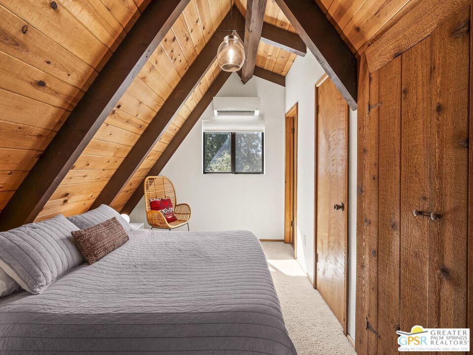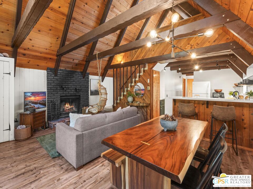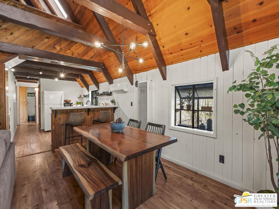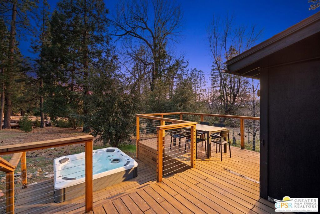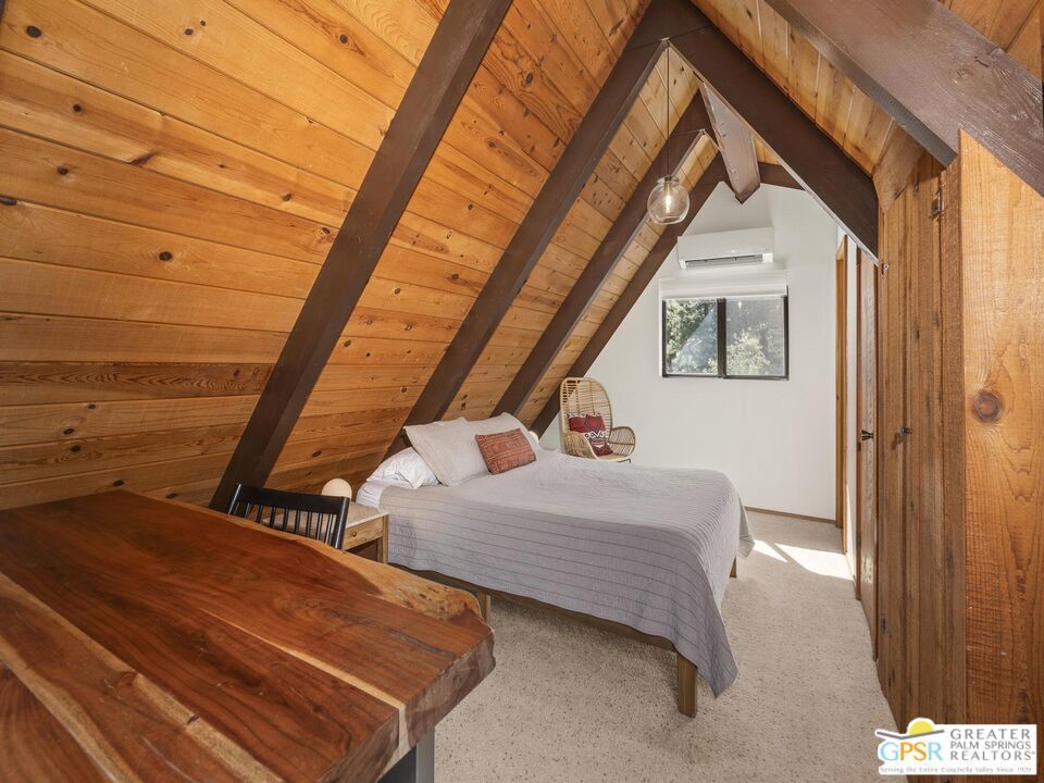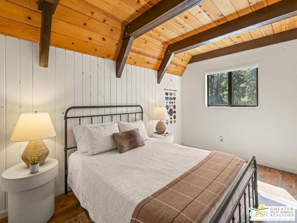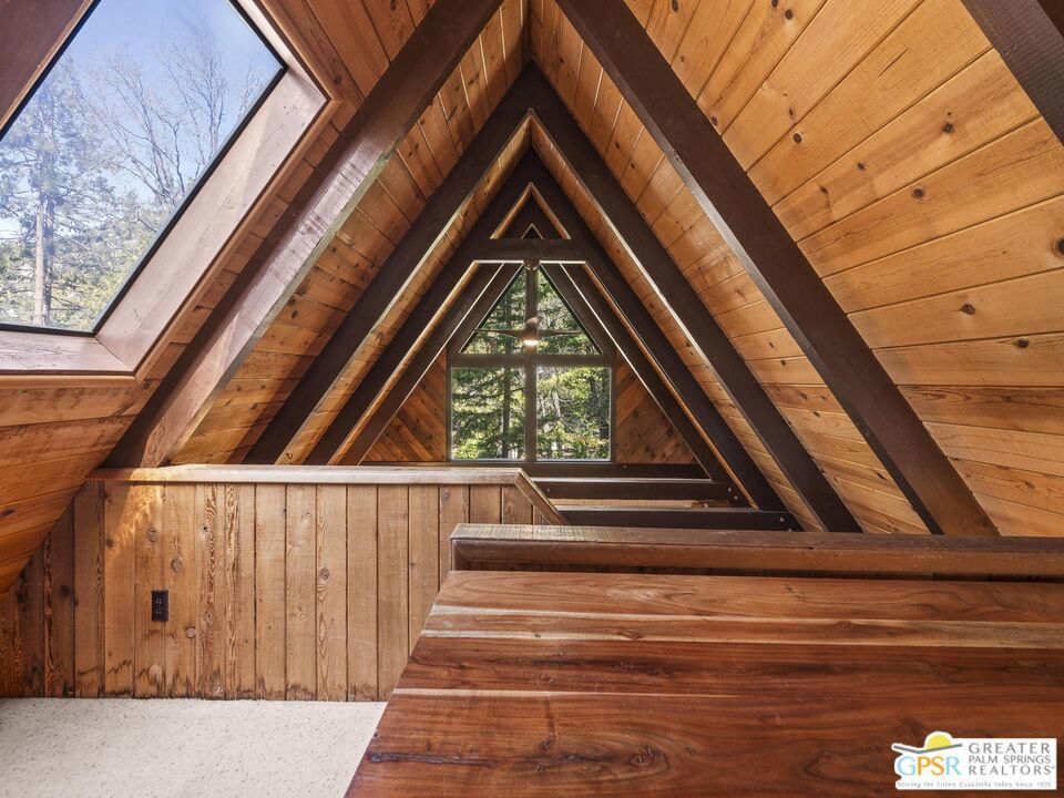 A-frame cabin just minutes from the village. Defined by its classic A-frame architecture, this stunning cabin features vaulted ceilings & dramatic windows that flood the interior with natural light & showcase peaceful forest views. Nestled among towering pines in highly sought-after Fern Valley it offers a seamless blend of rustic charm and modern comfort in a serene setting.The open concept living area is designed for relaxation & entertaining, with warm wood finishes creating an inviting mountain atmosphere. Thoughtfully designed for comfort & functionality, the layout is ideal for weekend getaways or full-time living. Step outside to enjoy multiple outdoor spaces, including a jacuzzi, perfect for soaking under the stars after a day exploring nearby trails. Start your mornings on the deck with a cup of coffee, breathing in the crisp mountain air & taking in the forest surroundings. Minutes from hiking trails, outdoor recreation, dining & entertainment, this property offers the ultimate mountain lifestyle. Whether you're searching for a weekend get-away, investment, or full-time residence, this distinctive A-frame cabin presents a rare chance to own a piece of Idyllwild paradise.