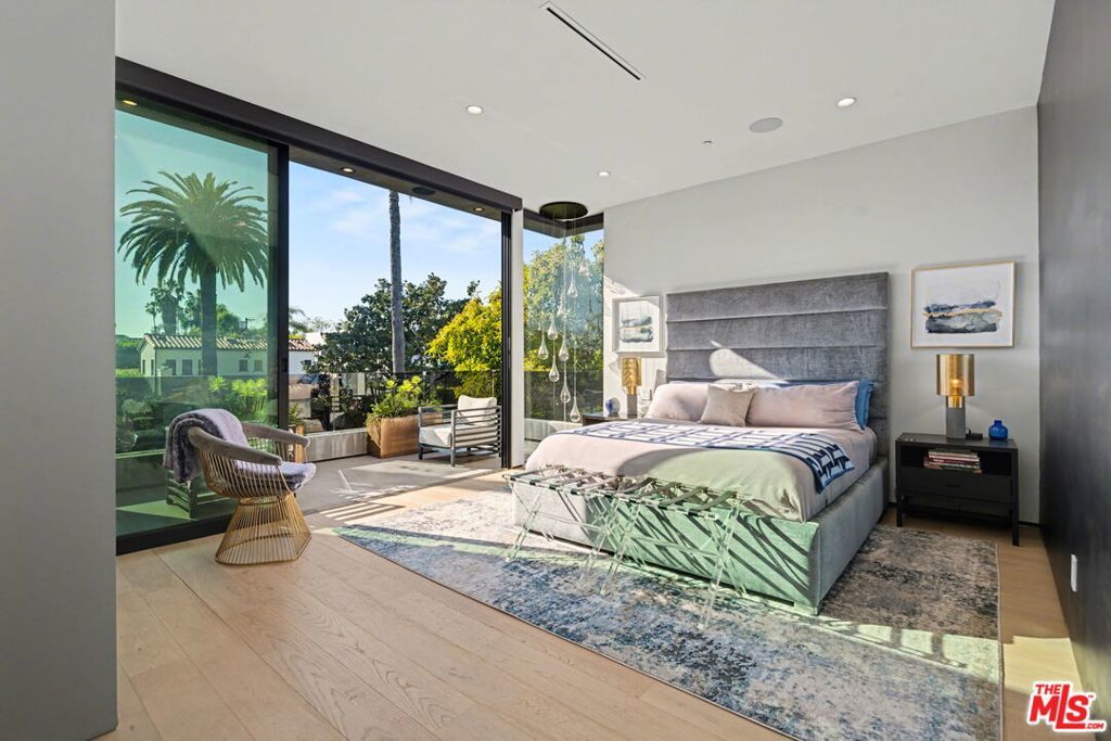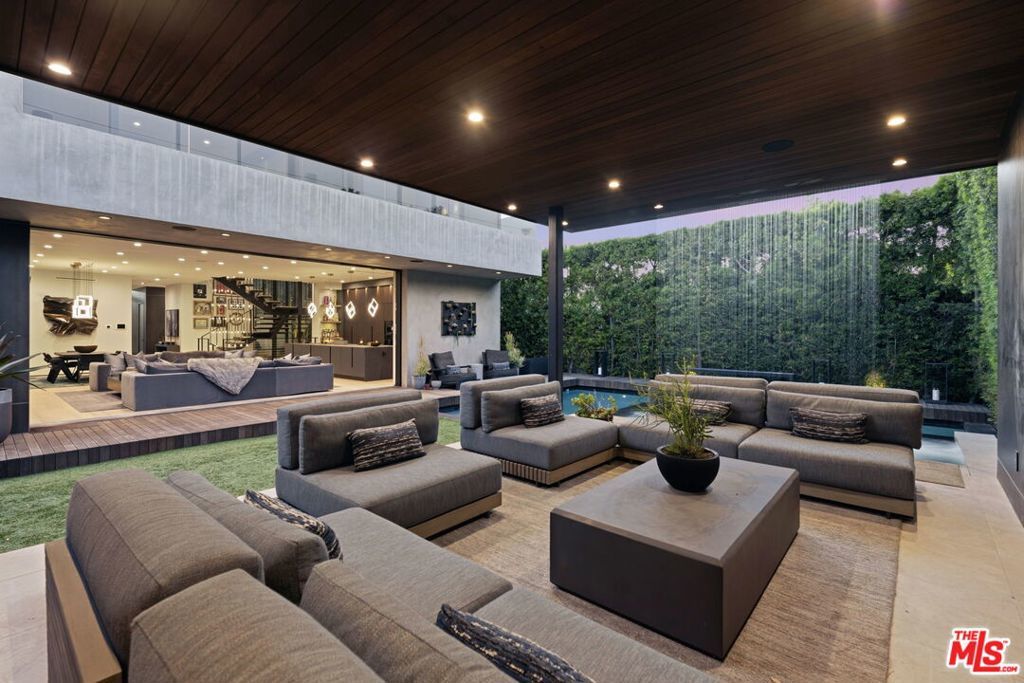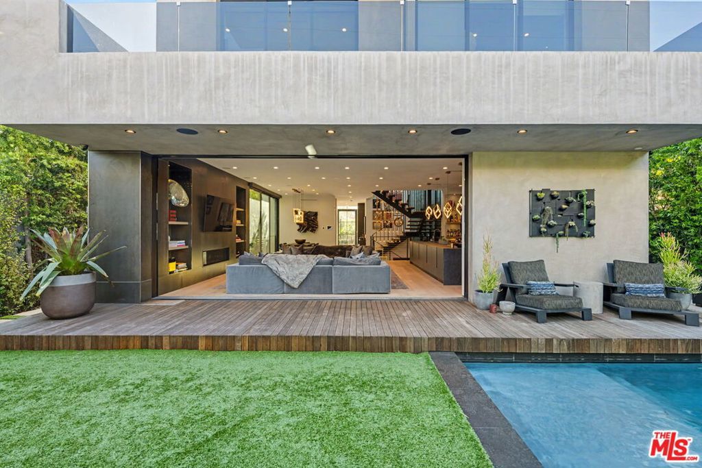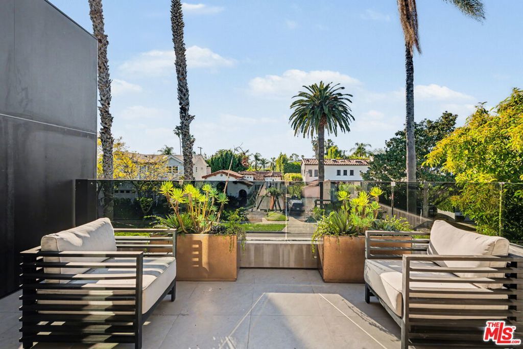 Newly built, gated architectural home with an elevator and approximately 2,000 sq ft of outdoor space, including a professionally designed rooftop deck with a fire pit and views of the Hollywood Hills. Conveniently located near Beverly Blvd, Melrose Ave, and Santa Monica Blvd. and situated between the Grove and the Beverly Center near West Hollywood. The home features an open floor plan with large Fleetwood sliding doors that connect the main living areas to multiple balconies and decks. The kitchen is equipped with top-of-the-line Miele appliances, including a Miele refrigerator and gas stove, along with a large center island that opens to the living and dining areas. The backyard includes a pool and hot tub with water features, cabana, a fireplace, and space for outdoor entertaining. The primary suite offers a spacious walk-in closet, dual shower, spa-style bath, and two private balconies including an outdoor fireplace. Additional features include a home theater, gym, recreation area with wet bar, smart home system, two-car garage with EV charger, and additional gated parking. Rent includes weekly pool service, weekly housekeeping, bi-weekly gardening, and all TVs. Property will be delivered unfurnished.