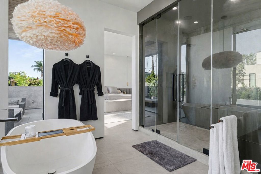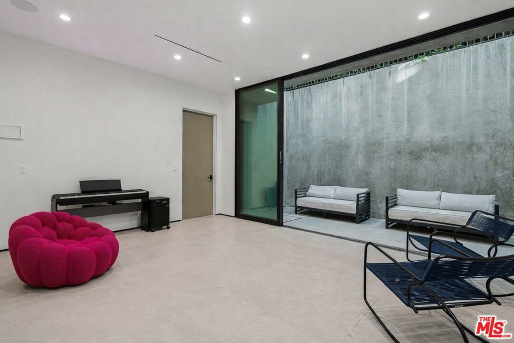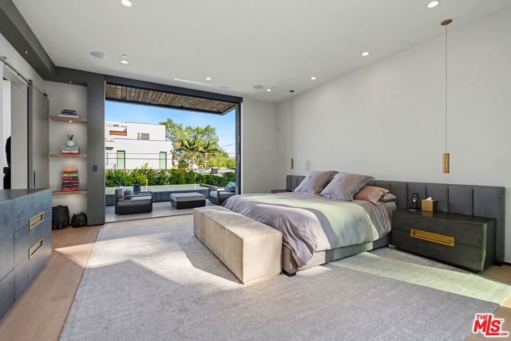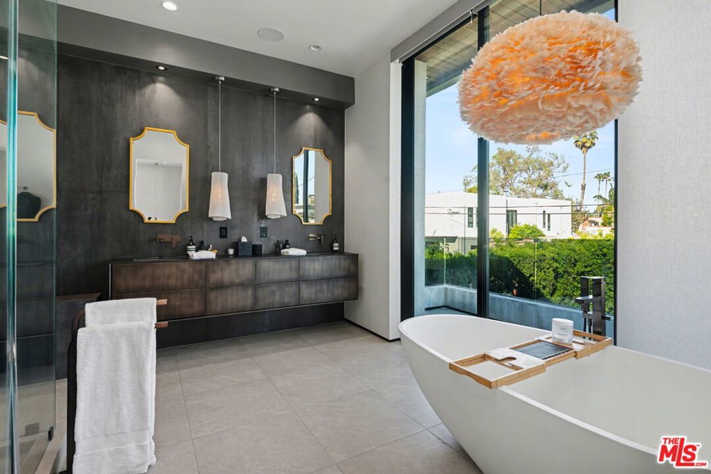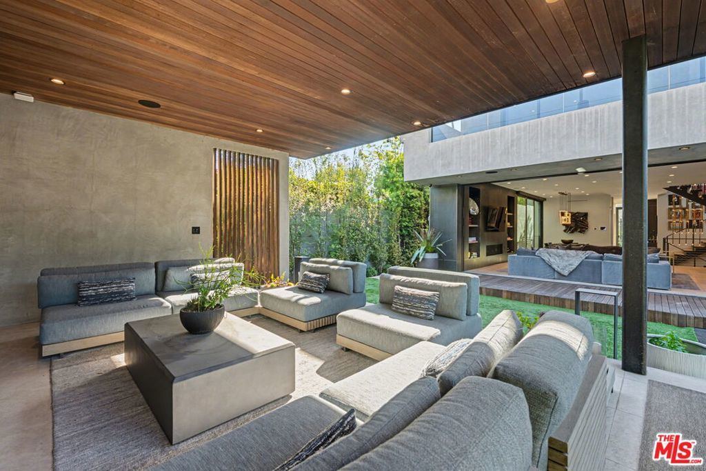 Newly built, gated architectural home with an elevator and approximately 2,000 sq ft of outdoor space, including a professionally designed rooftop deck with a fire pit and views of the Hollywood Hills. Conveniently located near Beverly Blvd, Melrose Ave, and Santa Monica Blvd. and situated between the Grove and the Beverly Center near West Hollywood. The home features an open floor plan with large Fleetwood sliding doors that connect the main living areas to multiple balconies and decks. The kitchen is equipped with top-of-the-line Miele appliances, including a Miele refrigerator and gas stove, along with a large center island that opens to the living and dining areas. The backyard includes a pool and hot tub with water features, cabana, a fireplace, and space for outdoor entertaining. The primary suite offers a spacious walk-in closet, dual shower, spa-style bath, and two private balconies including an outdoor fireplace. Additional features include a home theater, gym, recreation area with wet bar, smart home system, two-car garage with EV charger, and additional gated parking. Rent includes weekly pool service, weekly housekeeping, bi-weekly gardening, and all TVs. Property will be delivered unfurnished.