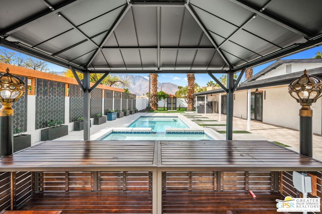 Gorgeous remodeled and updated Beauty in the coveted Desert Park Estates area of Palm Springs. This home boasts over 1,700 square feet with a great open floor plan and Gorgeous Mountain views. Upgrades include Porcelain tile throughout, Bespoke premium line glass appliances, Wine cooler, Mini bar, A new Pool/Spa, Covered patio, Gazebo, Barbecue area, 2 Cozy Fireplaces, and much more. There are too many amenities this incredible home offers to list and is a must see! Only minutes from downtown Palm Springs, and easy access to all the great sites this wonderful city offers. Don't forget to check out the cute dollhouse in the backyard when you view this incredible home. This home is a must see for anyone looking for that Perfect Home in Palm Springs.