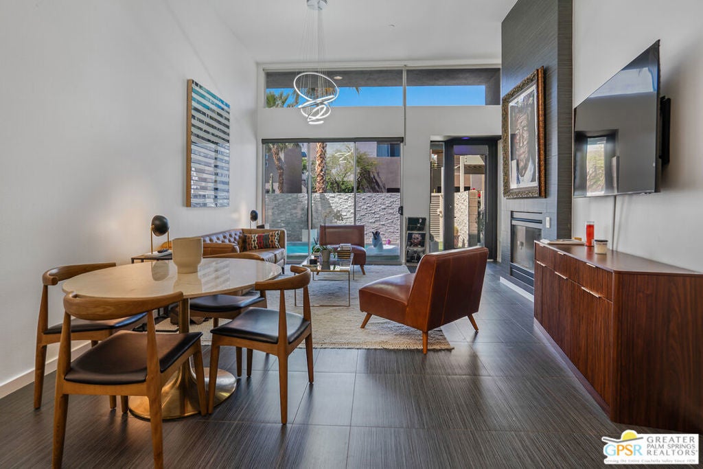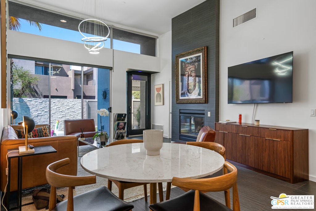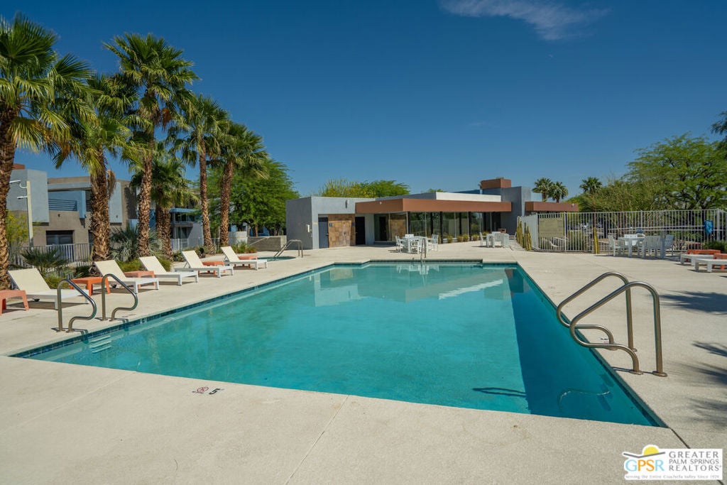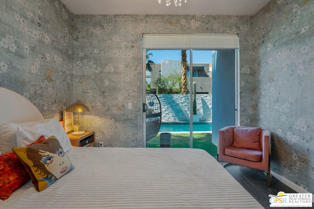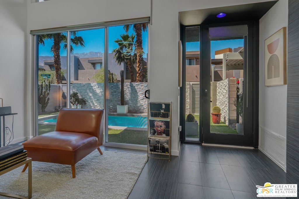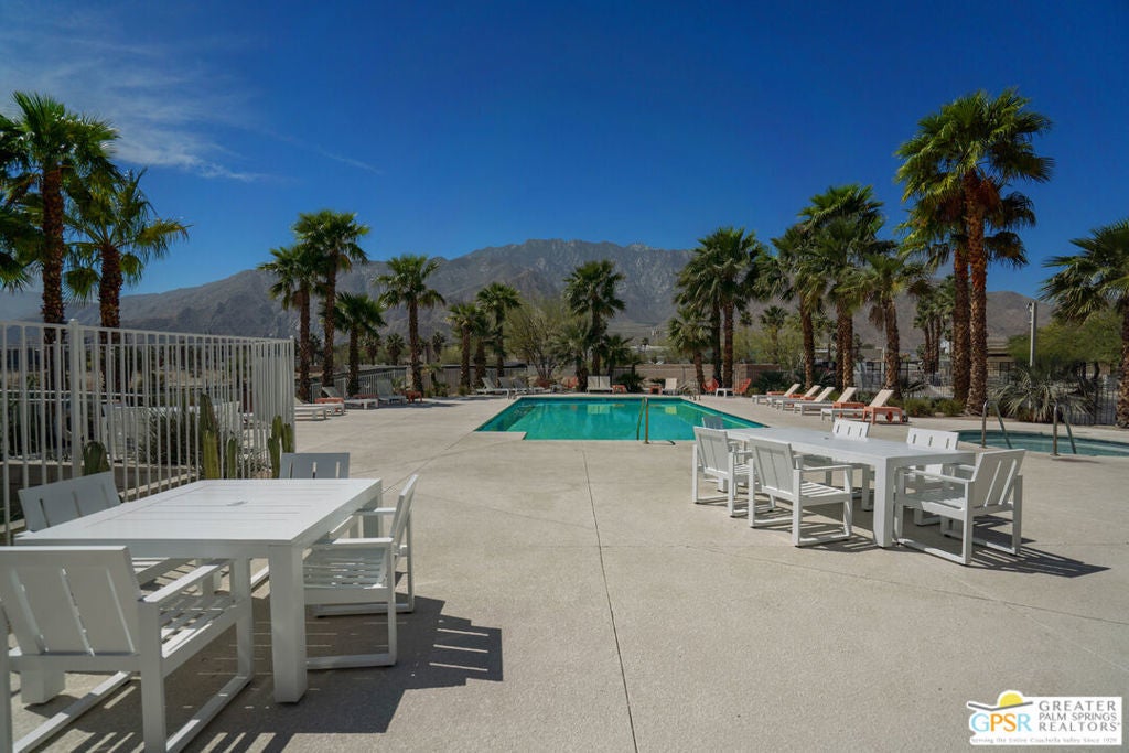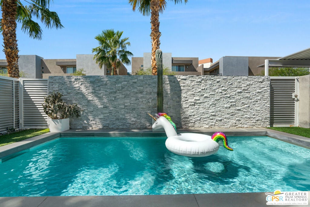 Welcome home to your Pied--terre in Palm Springs! This lovely, private, single story, 2 beds, 2 baths, with saltwater pool-- is ready to move right in. Tasteful finishes and perfect flow. Bedrooms on either side of common area, again, fantastic privacy. On a corner lot, one of 6 of it's kind. Wonderful double-sided fireplace. New HVAC, newer pool equipment. Laundry in unit. Community amenities include 2 pools, 2 spas, gym, and clubhouse. Gated and secure. Great for full-time occupancy, long-term rental, or just a week-ender getaway.