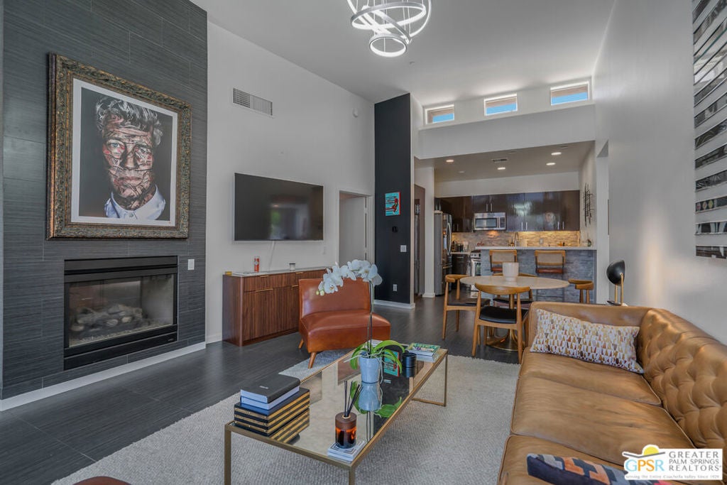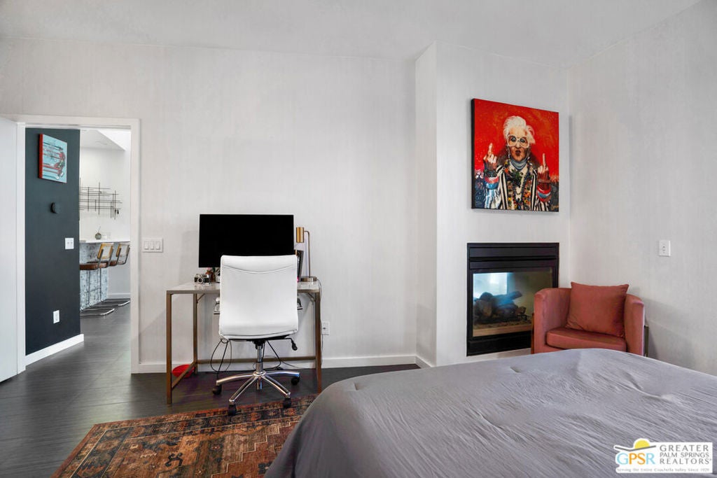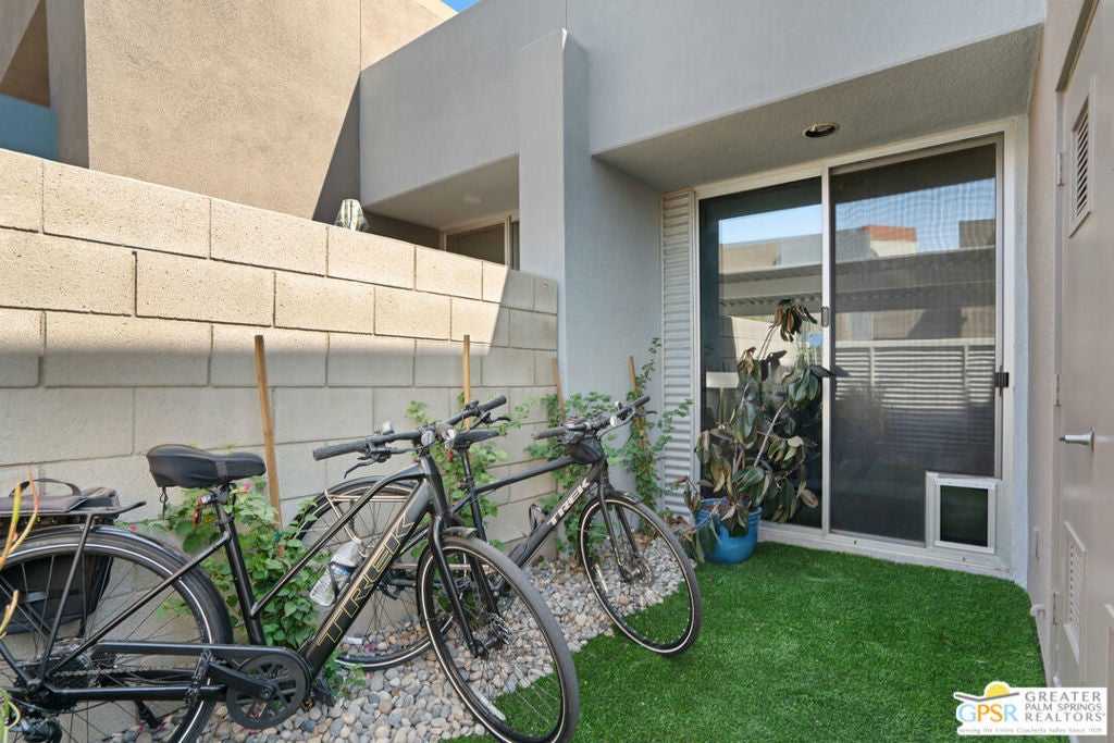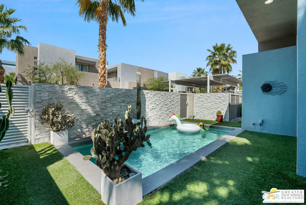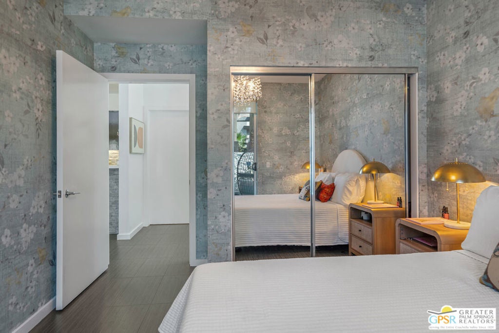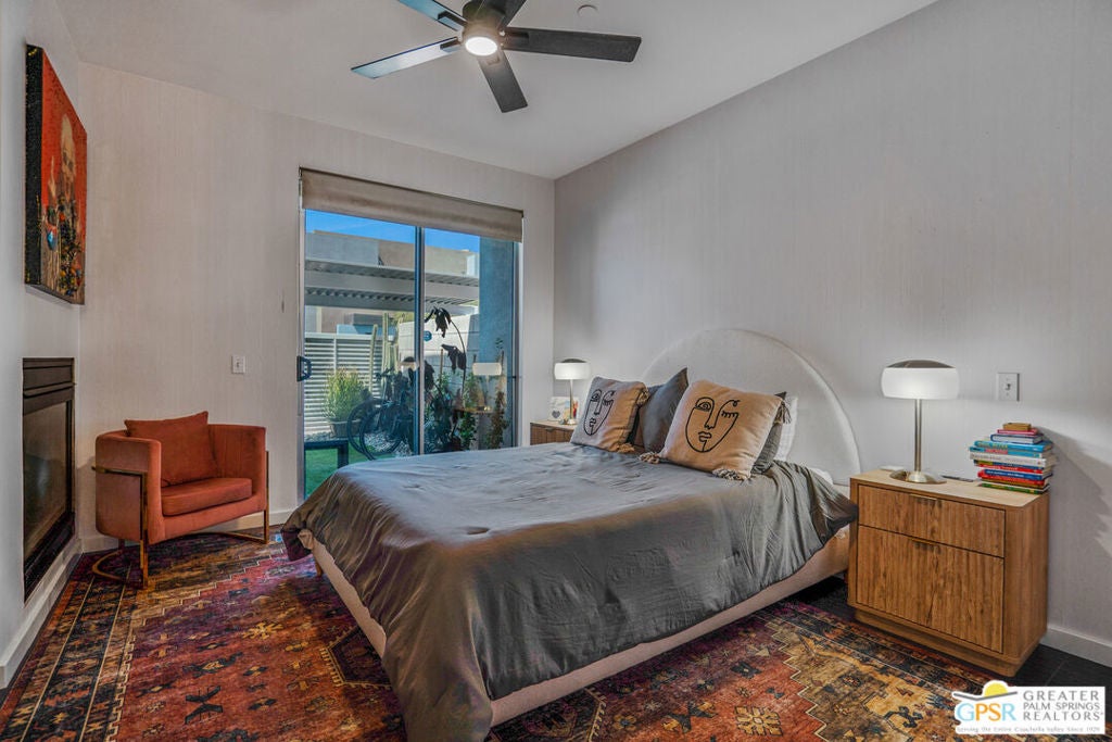 Welcome home to your Pied--terre in Palm Springs! This lovely, private, single story, 2 beds, 2 baths, with saltwater pool-- is ready to move right in. Tasteful finishes and perfect flow. Bedrooms on either side of common area, again, fantastic privacy. On a corner lot, one of 6 of it's kind. Wonderful double-sided fireplace. New HVAC, newer pool equipment. Laundry in unit. Community amenities include 2 pools, 2 spas, gym, and clubhouse. Gated and secure. Great for full-time occupancy, long-term rental, or just a week-ender getaway.