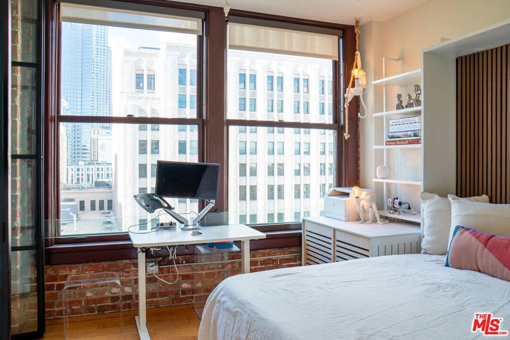 FOR LEASE - Stunning Updated Custom Loft with Expansive DTLA Skyline Views! This desirable upper-floor loft is one of the most unique and updated units within The Rowan Building, the crown jewel of Downtown LA's Historic Core. Unit 903 is a spacious condo with a functional modern loft layout, abundant original windows, exposed brick, and stunning west-facing views. The unit tastefully blends historic character with top-end modern finishes and comforts, including hardwood floors, soaring ceilings, Scavolini cabinetry, central HVAC, and in-unit laundry. The spacious 1/1 layouts provides flexibility for a variety of uses, with spaces for living, dining and WFH, as well as privacy with a separate bedroom area. The kitchen has been reimagined and boasts new stone counters and backsplash, high-end appliances, dramatic lighting and a custom island with storage and seating. The primary suite is separated by custom industrial glass doors, and includes a fully built-out walk in closet and hidden laundry closet. The fully updated primary bath includes designer stone and ceramic tile, a rich wooden vanity, extra-deep soaking tub with glass enclosure, and concealed linen storage. A wall of huge, mahogany-framed windows bring in an abundance of natural light to the unit and provides views to the gorgeous architecture of the surrounding cityscape. Originally built in 1912, the historic Rowan Building was designed by famed LA architects Parkinson & Bergstrom in the iconic Beaux-Arts style. In 2009, the building was extensively restored and converted into live-work condominiums. Historic details have been preserved including exposed brick walls, Carrara marble corridors, and Art Deco elevator doors. The property boasts countless amenities including 24/7 security and concierge, bike storage, and resident lounge. Perfectly-manicured outdoor spaces include a lush tropical garden, pet relief area, hot and cold plunge pools, outdoor seating with fire pits, and built-in gas BBQs. The Rowan is perfectly situated within the vibrant Historic Core neighborhood: adjacent to Spring Street Park, convenient to two Metro stops, and surrounded by the countless restaurants, culture and nightlife options that comprise the quintessential downtown lifestyle. This is the DTLA lease opportunity that you have been looking for! Showing by appointment. Tenant pays Electric and Internet. Parking and storage available for an additional fee.