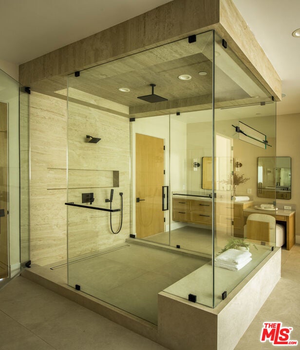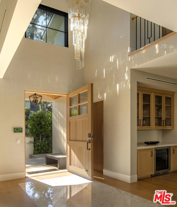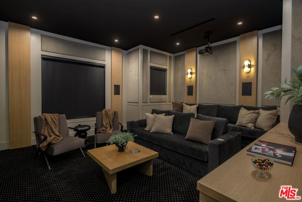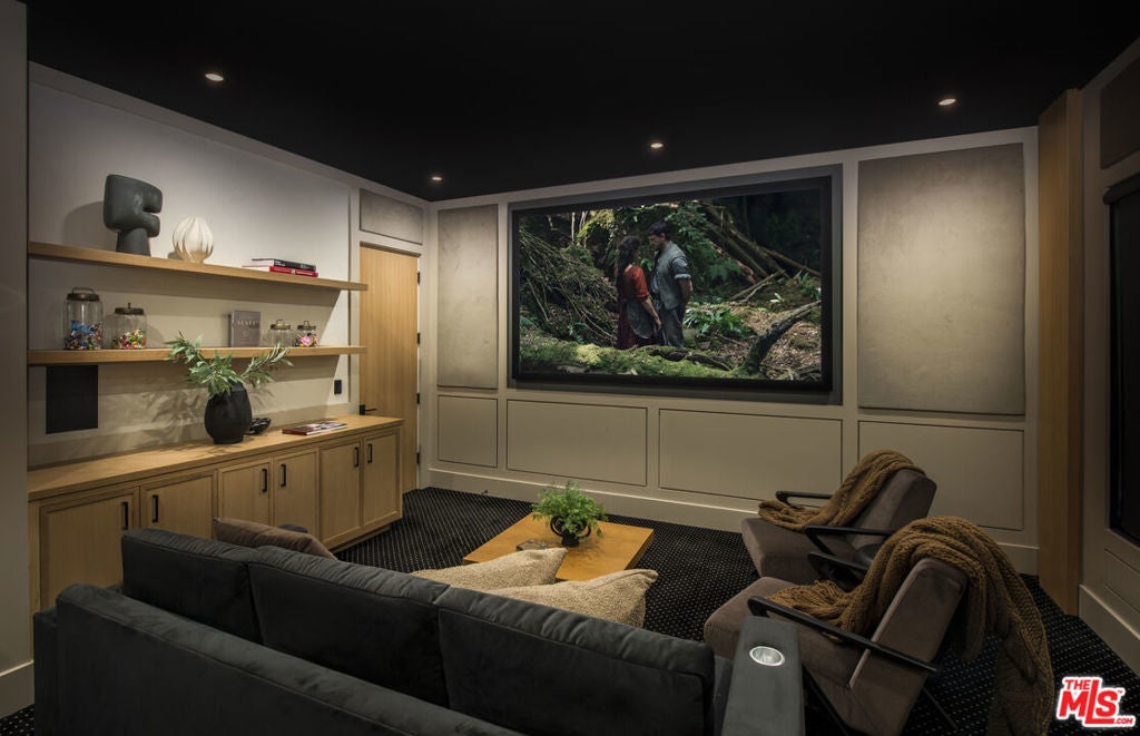 Completed in 2024, this gated compound welcomes you into a contemporary retreat in the heart of Westwood. Delineated by soaring high ceilings and the rich finishes of wood, stone, and metal, an immediate sense of warmth is felt upon arrival. The main living space offers a seamless connection from the kitchen and living room to the expansive backyard, where a sparkling saltwater pool, fire pit, and built-in barbecue area invite opportunities to entertain guests or relax in privacy. Back inside, the chef's kitchen showcases white oak cabinetry, Wolf and Sub-Zero appliances, and a Taj Mahal stone island. Off the kitchen is the spacious living room, centered around a striking leathered granite fireplace with generous windows on either side. Also on this floor sits the formal dining area, with additional egress to the backyard, a guest bedroom or office, and a designated screening room. Upstairs, there is a family room or flex space just off the landing, leading to the additional guest bedrooms, each with an en-suite bath, and a serene primary wing overlooking the backyard. The primary suite continues the calming, organic motif of the first level, with walnut wood accents, a large balcony, and a luxurious bathroom with a generously-sized shower, soaking tub, and double vanities. A spacious ADU mirrors the detailed level of craftsmanship of the main residence, with an additional living room, kitchen, and bedroom plus en-suite bath. The entire home is enhanced by a Control4 smart home system throughout. It is ideally located near UCLA and Westwood Village, with proximity to the 405 freeway.