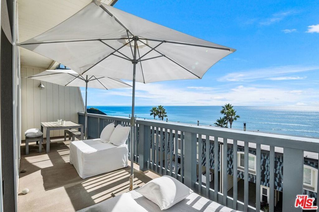 Enjoy coastal living at its finest in this tastefully renovated penthouse condo just steps from the sand. No expense was spared in the remodel, creating a stylish and exceptionally comfortable beach retreat. The residence features breathtaking ocean views, a spacious deck ideal for sunset watching, and a prime location on the ocean side of the highway.Inside, you'll find beautiful wood flooring, quartz countertops, open shelving, a custom-built closet, and a cozy woodburning fireplace. This coveted top floor unit offers unmatched views and an inviting, modern aesthetic throughout. The gated community includes desirable amenities such as a pool, spa, and secure access providing the perfect blend of luxury, relaxation, and peace of mind.