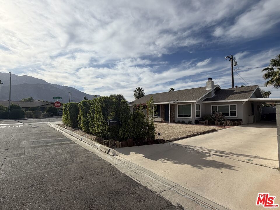 Nestled in the highly sought-after South End (no wind) Demuth Park neighborhood, this charming Palm Springs home offers the perfect blend of comfort, convenience, and investment potential. Ideally positioned on a premier corner lot, the property enjoys sweeping San Jacinto Mountain views from both the front of the home and the sun-filled backyard with gorgeous bougainvillea and a sparkling pool that sets the tone for relaxed desert living. Offering a little over 1300SF, the living room is anchored by a wood burning fireplace and picture window showcasing mountain views. There are 3 beds, 2 baths plus a large game room. House can sleep 9. The kitchen is darling with retro stove and hood (the old school gas burners are the best) and includes a dutch door to the backyard, a perfect ambiance to entertain guests! The property is being offered fully furnished, creating an effortless opportunity for immediate enjoyment or income production. Demuth Park is still under cap requirement for STR! Thoughtfully maintained and improved, the property includes a newer roof, new water heater, newer HVAC & water heater, updated electrical and plumbing, full irrigation, new 100ft of high privacy hedging and an upgraded heated pool with new pump, filter, and heater. Just 7 minutes to Palm Canyon Drive and all the cool hotels (The Parker, The Ace) celebrated dining, shopping, and premier golf, the location is unbeatable. 2 minutes from Palm Springs International Airport Across. Across the street is the coveted Tahquitz Creek / Demuth Park offering expansive green space, gorgeous views, pickle ball courts, dog parks, sports fields, playgrounds, and access to the CV Link, connecting you across the Coachella Valley for biking, walking, and recreation. This home has had a proven history of strong Airbnb revenue and is located in an area without a short-term rental permit cap presenting a rare investment opportunity in one of Palm Springs' most desirable neighborhoods. Seller intends to complete a 1031 exchange at no cost to buyer. Buyer to cooperate with seller's exchange. Property is occupied. Do not disturb. Shown by appt ONLY. No sign on property.