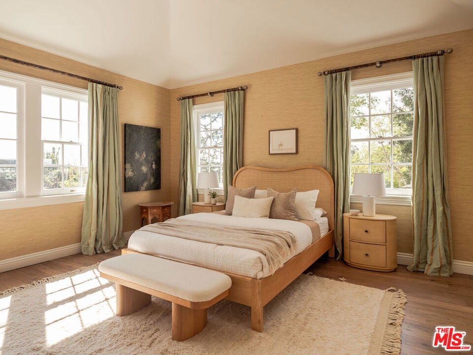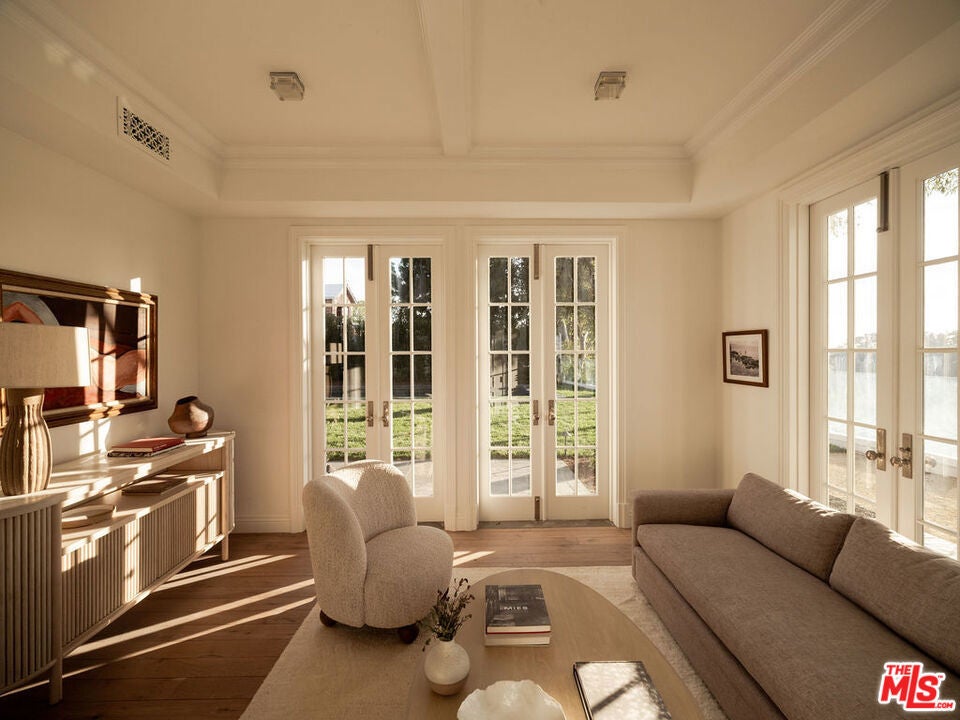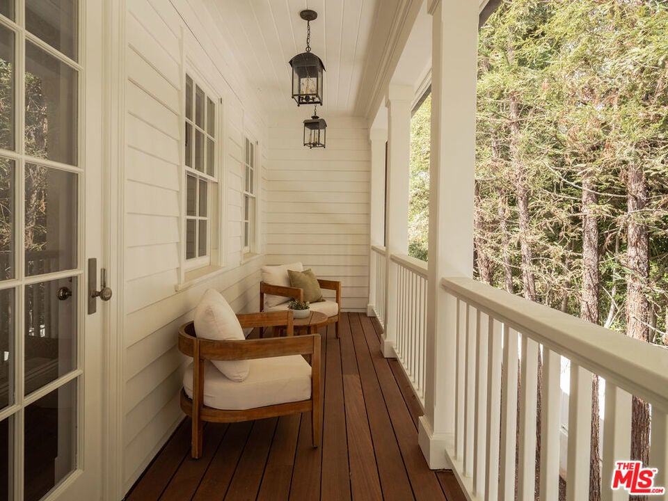 Gated and privately set in Pacific Palisades' coveted Lower Riviera, this gracious traditional estate offers the rare combination of privacy, scale, and elegance that defines life on the Westside at its finest. Perched above Rustic Canyon with mountain views stretching toward the horizon, the property sits on over 18,000 square feet of newly landscaped grounds. Surrounded by apple, lemon, and avocado trees, you feel a world apart while remaining moments from the coast, canyon trails, and the neighborhood's beloved dining and caf scene. Designed with the refined sensibility of Windsor Smith, this 7,500 square foot residence unfolds across an expansive floor plan. The formal living room anchors the main level - featuring high ceilings, a fireplace and rich architectural detailing. The foyer flows naturally into an airy dining room with a generous butler's pantry. The gourmet kitchen - appointed with Wolf and Sub-Zero appliances, opens to a cozy family room and breakfast nook. Making this property equally suited for both intimate dinners and large-scale gatherings. The primary suite is a private retreat: a dedicated sitting area, dual marble bathrooms, and dual closets compose a spa-inspired space. Five additional ensuite bedrooms, each with oversized closets and bespoke wallpapers - are complemented by an upstairs sitting room and reading nook. Additional amenities include a home gym, executive office, and a full-featured smart home system with Control4, Lutron lighting, Jandy pool controls, and integrated security. Outside, the estate is built for year-round California living: a resort-style pool and spa, a full outdoor kitchen with pizza oven and BBQ, an outdoor fireplace, and a two-story guest house. On one of the Lower Riviera's quietest streets, this is Pacific Palisades living without compromise.