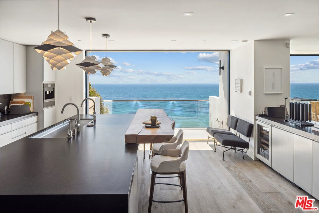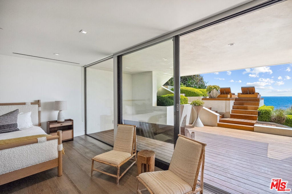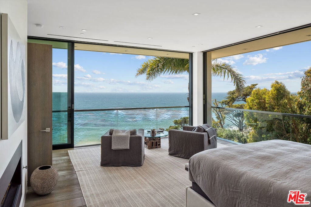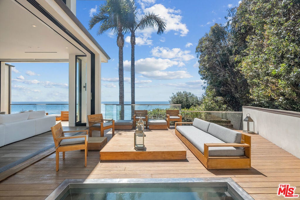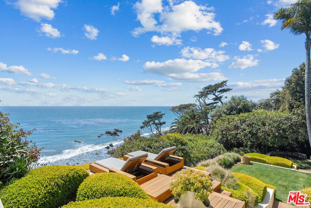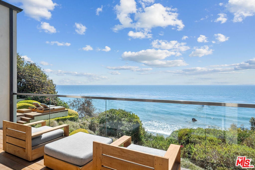 Summer lease available! Commanding sweeping ocean vistas from nearly every room, this extraordinary blufftop estate in Malibu blends refined modern living with serene coastal luxury. Conceived by acclaimed architect Doug Burdge and built to exacting standards by Scott Halley, the residence is a fully realized vision of elegance and sophistication enhanced by a rare additional parcel and direct stair access to one of Malibu's most coveted beaches, just past Lechuza Point. Impeccably upgraded with state-of-the-art audio/visual and security systems, the home offers effortless comfort and advanced functionality throughout. The main level features a spacious step-down living room with fireplace, an open dining area, and a versatile office or music room, all oriented to capture the dramatic ocean views. A huge deck off the living room includes a spa and BBQ, perfect for entertaining or relaxing above the coastline. The gourmet kitchen, equipped with top-tier appliances, opens to a second generous deck with stair access to the lush garden terraces below. Nearly every room on this floor enjoys breathtaking views of the Pacific. A dramatic open staircase leads to the expansive top-floor primary suite, a private retreat with panoramic coastline views, a spa-like bath, and a massive walk-in closet. Two additional large bedroom suites complete the upper level, each offering their own stunning outlooks and luxurious finishes. On the lower level, a sleek media and game lounge is complemented by a Sub-Zero wet bar and a temperature-controlled wine cellar. Two additional guest suites complete this floor, providing comfort and privacy for family or visitors. The outdoor spaces are designed for both relaxation and connection to nature, with beautifully landscaped gardens, multiple lounging and dining areas, and an outdoor shower, ideal after a day on the sand. A rare opportunity to enjoy a turnkey bluff estate in one of Malibu's most desirable settings.