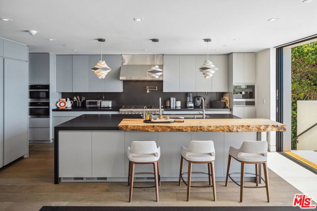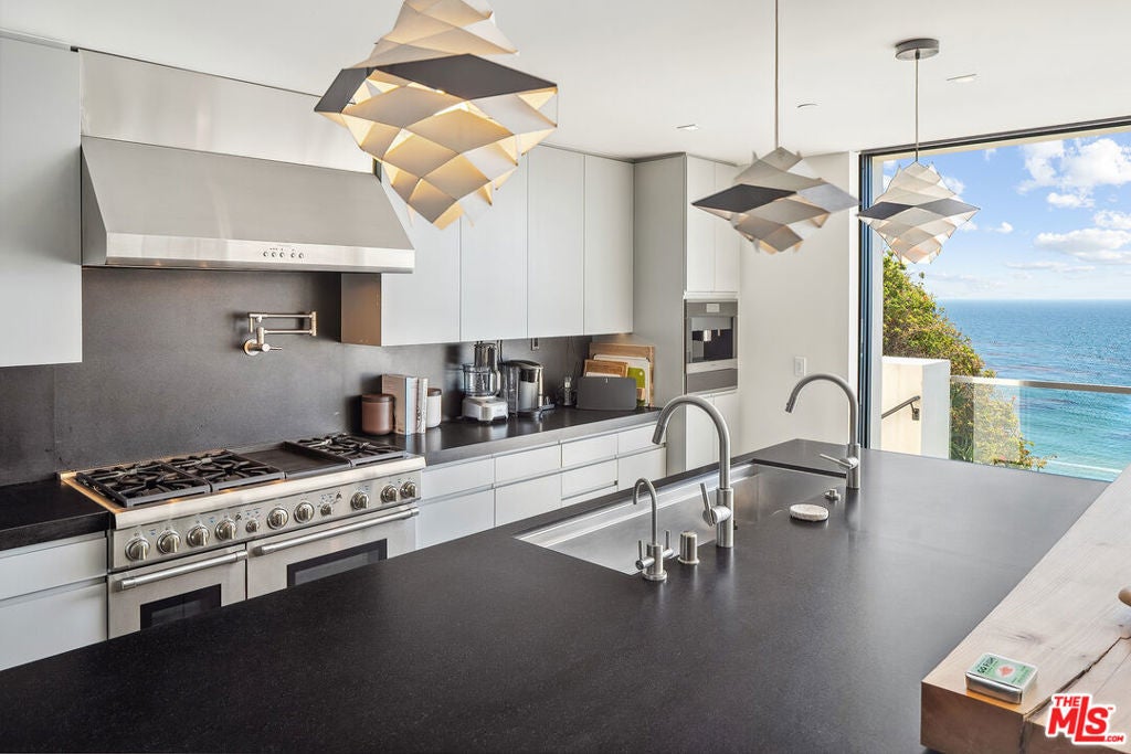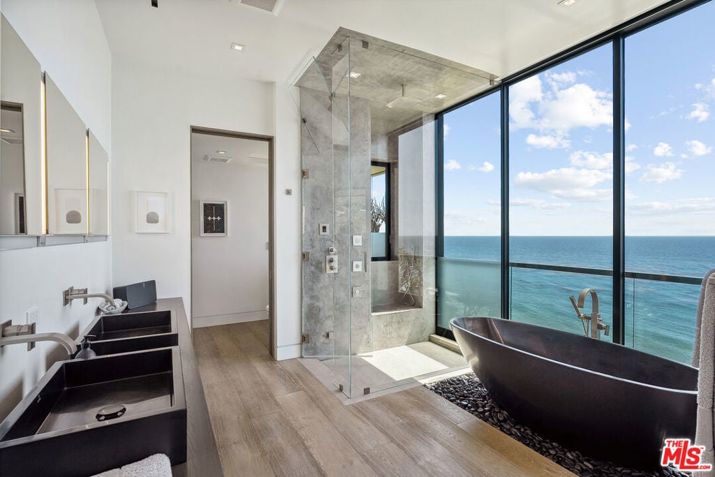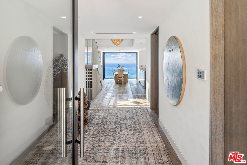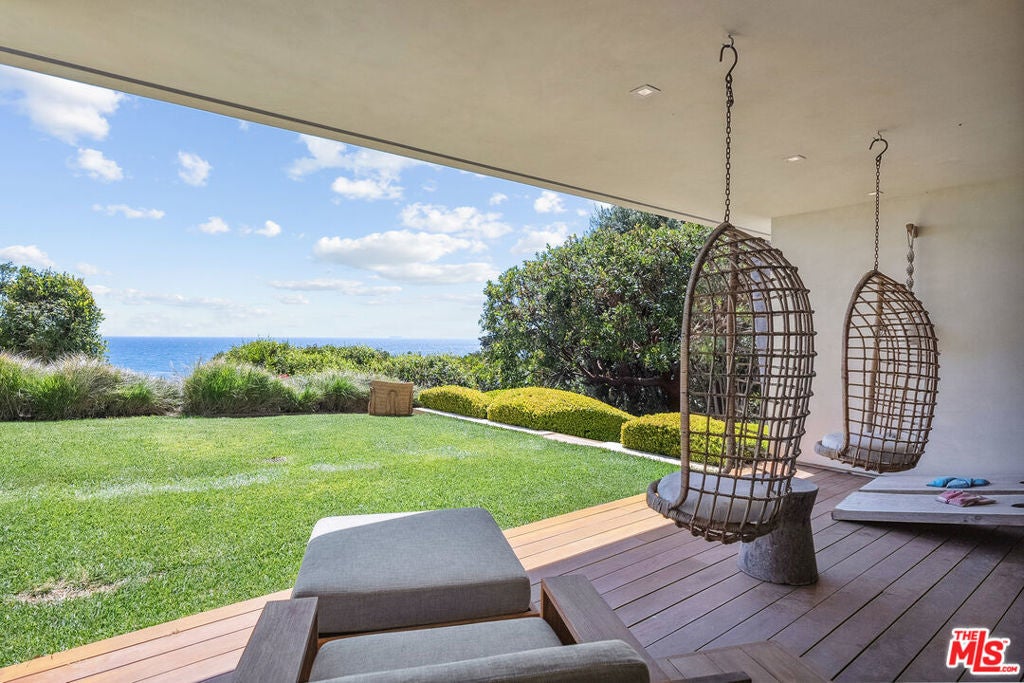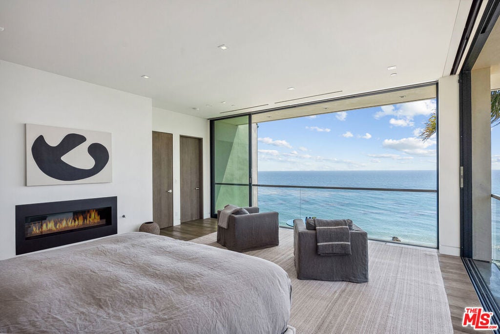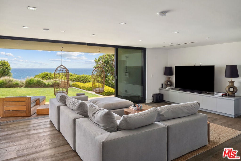 Summer lease available! Commanding sweeping ocean vistas from nearly every room, this extraordinary blufftop estate in Malibu blends refined modern living with serene coastal luxury. Conceived by acclaimed architect Doug Burdge and built to exacting standards by Scott Halley, the residence is a fully realized vision of elegance and sophistication enhanced by a rare additional parcel and direct stair access to one of Malibu's most coveted beaches, just past Lechuza Point. Impeccably upgraded with state-of-the-art audio/visual and security systems, the home offers effortless comfort and advanced functionality throughout. The main level features a spacious step-down living room with fireplace, an open dining area, and a versatile office or music room, all oriented to capture the dramatic ocean views. A huge deck off the living room includes a spa and BBQ, perfect for entertaining or relaxing above the coastline. The gourmet kitchen, equipped with top-tier appliances, opens to a second generous deck with stair access to the lush garden terraces below. Nearly every room on this floor enjoys breathtaking views of the Pacific. A dramatic open staircase leads to the expansive top-floor primary suite, a private retreat with panoramic coastline views, a spa-like bath, and a massive walk-in closet. Two additional large bedroom suites complete the upper level, each offering their own stunning outlooks and luxurious finishes. On the lower level, a sleek media and game lounge is complemented by a Sub-Zero wet bar and a temperature-controlled wine cellar. Two additional guest suites complete this floor, providing comfort and privacy for family or visitors. The outdoor spaces are designed for both relaxation and connection to nature, with beautifully landscaped gardens, multiple lounging and dining areas, and an outdoor shower, ideal after a day on the sand. A rare opportunity to enjoy a turnkey bluff estate in one of Malibu's most desirable settings.