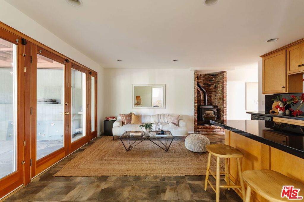 Tucked into a quiet hillside, this Tujunga retreat blends refined design with a sense of warmth and creative possibility. The main level offers 3 bedrooms and 2 baths, including a primary suite with en-suite bath and adjoining sunroom. A spacious living room anchors the home with soaring ceilings, a stone-clad fireplace, and stained glass windows, while the updated kitchen frames treetop views. Below, a fully independent creative suite unfolds with kitchenette, full bath, and bonus areas; well-suited for a studio, workspace, or guest quarters. Layered outdoor spaces include an expansive deck, a back patio with hot tub, and a hilltop gazebo that captures the natural beauty and quiet of Tujunga. Gated entry and covered parking complete the offering. A rare balance of a spacious layout, privacy, and creative potential in a stunning natural setting.
