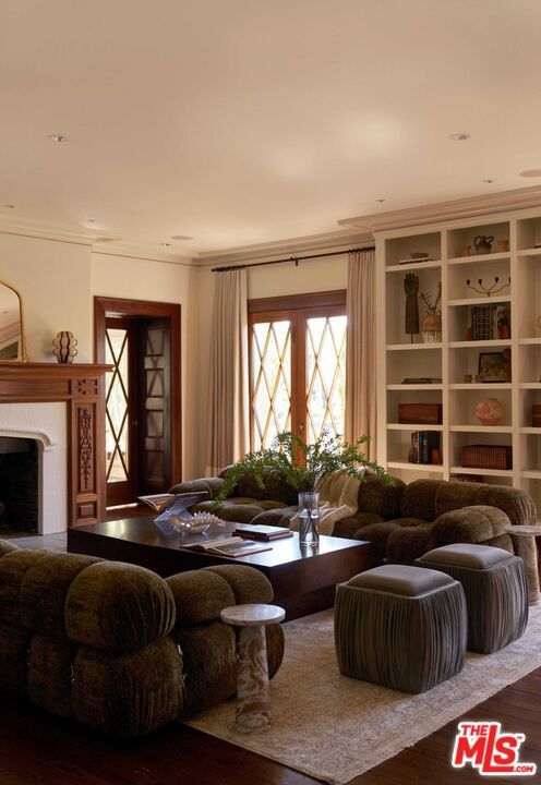 Stately and enduring, this Windsor Square English residence sits on an expansive flat lot, blending architectural pedigree with thoughtful, design-forward updates. Originally built by Meyer & Holler, known for iconic landmarks such as the Chinese and Egyptian Theatres, the home has been meticulously restored and refined by June Street Architecture, preserving its historic integrity while elevating it for modern living. A grand gated entry sets the tone, unfolding into a formal living room anchored by a fireplace, and a separate den with its own fireplace, an intimate retreat layered with warmth and character. The formal dining room connects to a well-appointed kitchen and sunlit breakfast room, with adjacent laundry and two conveniently placed powder rooms. Upstairs, a flexible and generous layout offers three secondary bedrooms alongside an extraordinary primary suite, complete with a large walk-in closet, dual baths, and a dedicated office that easily functions as an additional bedroom. The scale throughout is both impressive and livable, with beautifully preserved windows, doors, and woodwork that speak to the home's craftsmanship and history. Outside, the grounds unfold like a private park: lush, expansive, and designed for both entertaining and retreat. A pool and gazebo are set within the verdant backyard, while a detached garage offers versatile use as a gym, screening room, or creative studio. A separate guest suite provides additional flexibility for visitors or extended stays. A rare offering of scale, provenance, and enduring beauty, and just moments from the shops and restaurants of Larchmont Boulevard, this house checks every box.