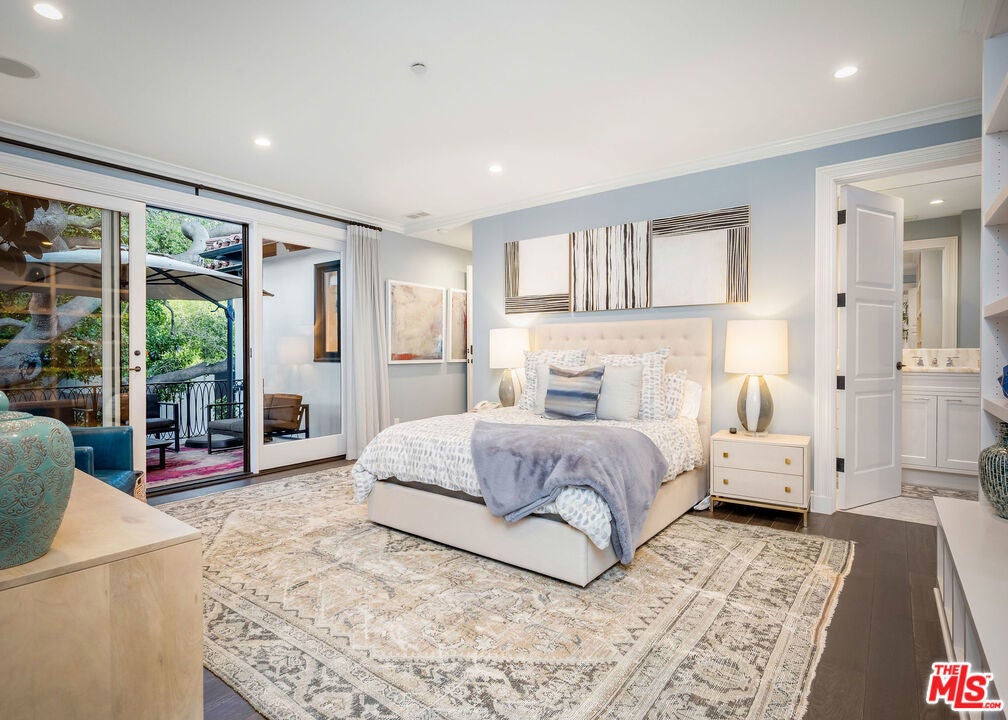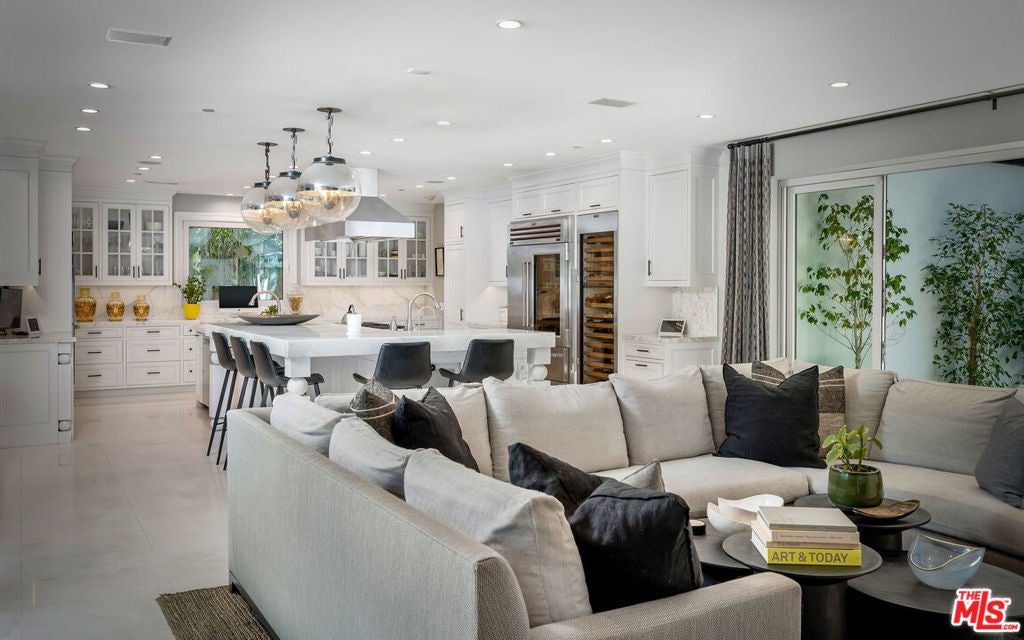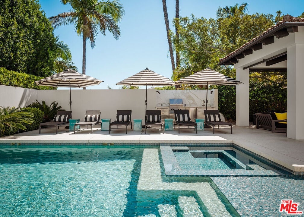 Rare scale. Unmatched privacy. True resort living - Hidden behind high gates and mature hedges, this contemporary villa delivers exceptional space, seclusion, and access from front to back. Designed for grand-scale entertaining, expansive indoor-outdoor living unfolds through retractable glass walls to a pool, lawns, and sculpture garden, all completely private. A dramatic two-story entry with a sweeping staircase opens to grand living and formal dining spaces, a state-of-the-art kitchen with family room, and a sophisticated screening lounge. The primary suite is a true retreat, featuring dual marble baths and custom walk-in closets. Additional en-suite bedrooms and staff quarters complete the residence. A gated circular driveway welcomes guests from the front, while rare street-to-street access adds a second layer of privacy and functionality. A double-gated garage with direct interior access is complemented by a private rear entry via a discreet mews behind the home ideal for secure arrivals, staff, or seamless service. Exceptional quality throughout. Impossible privacy - A one-of-a-kind compound in one of Los Angeles' most coveted locations.