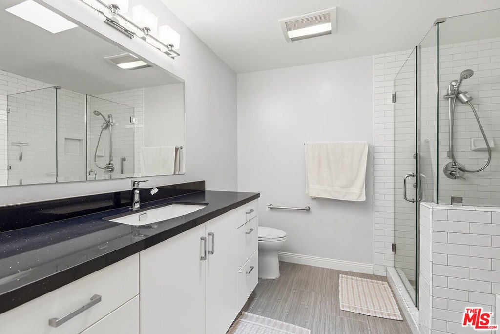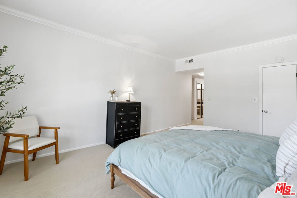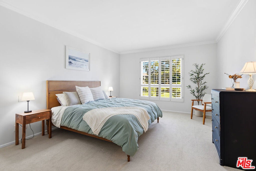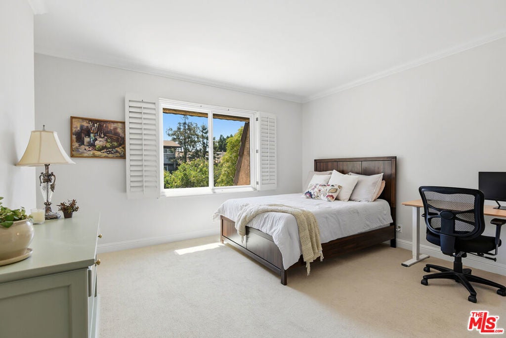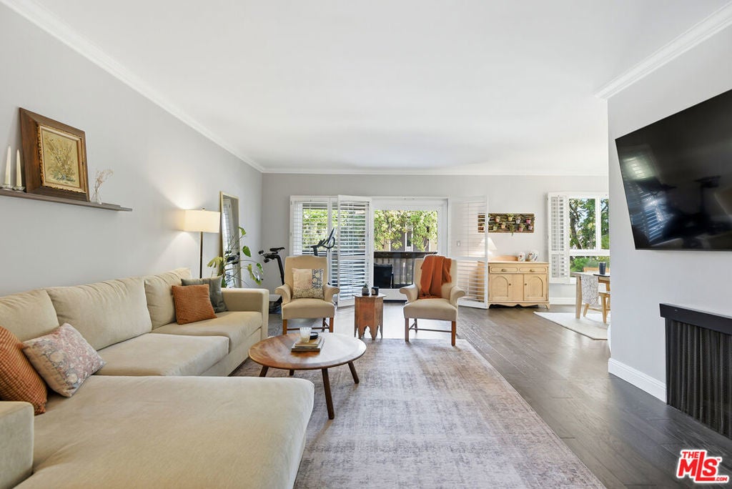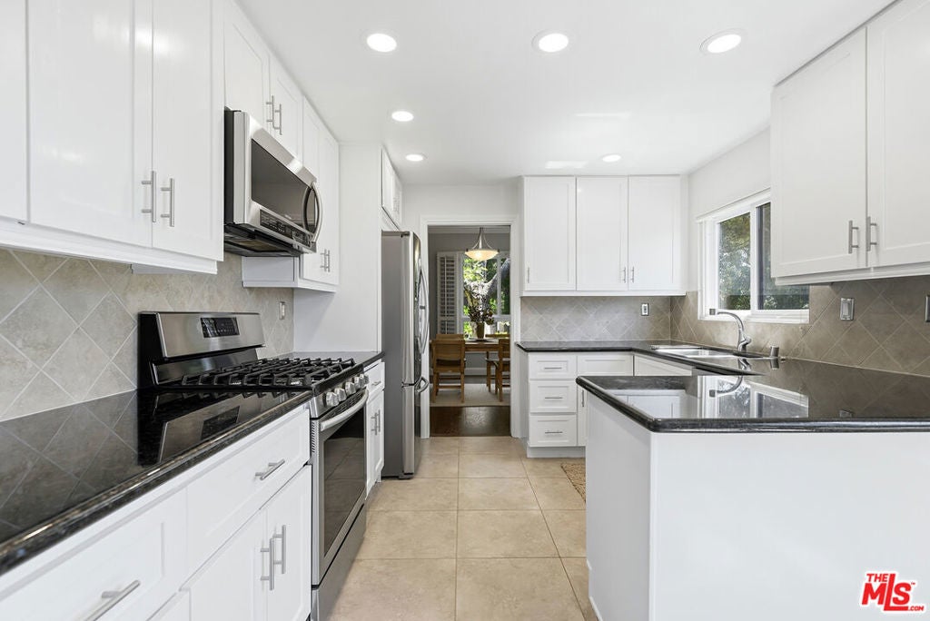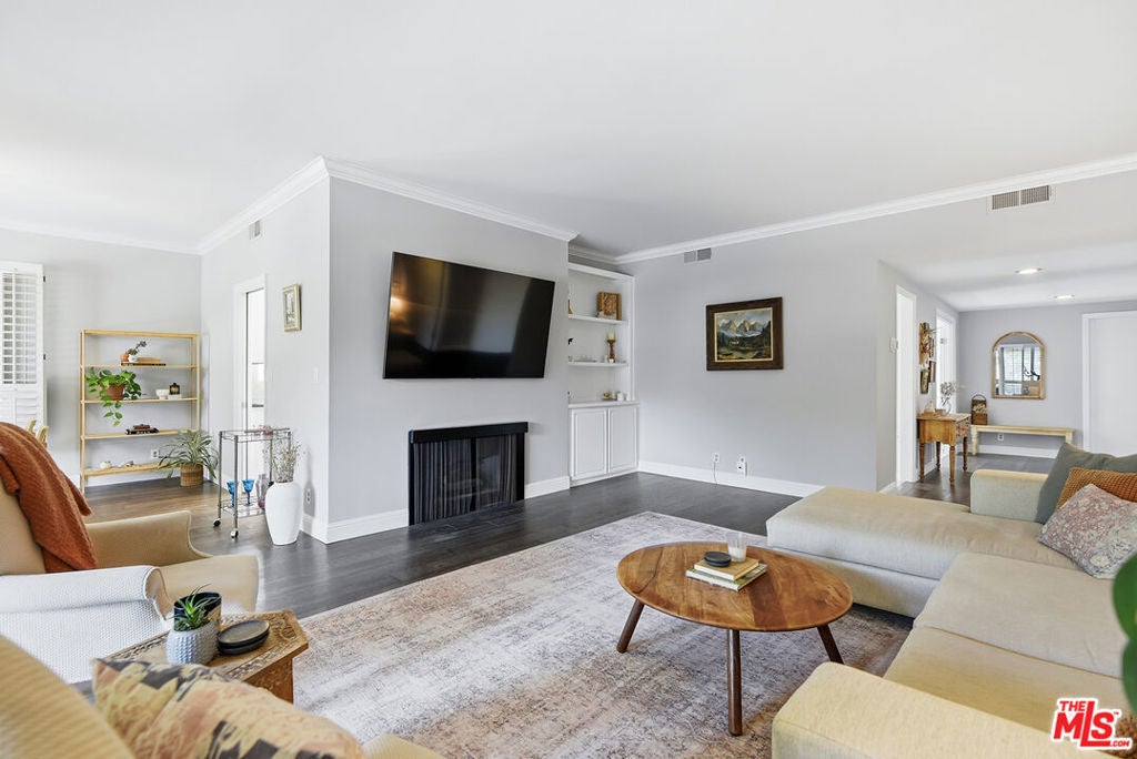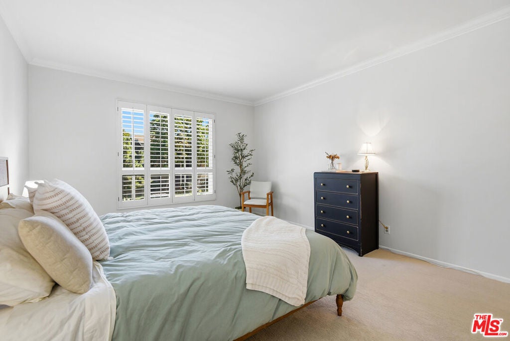 Top-floor renovated corner unit offering 3 bedrooms and 2 bathrooms, with 2,070 square feet of living space. Features include high ceilings, abundant natural light, and serene treetop views from multiple rooms. This spacious residence features an oversized living room with built-ins, a fireplace, and sliding glass doors that open to an expansive private balcony, ideal for indoor-outdoor living. The updated kitchen is equipped with stainless steel appliances, granite countertops, a custom tile backsplash, and an eat-in breakfast nook, complemented by large windows throughout. The generously sized primary suite includes a walk-in closet and an en-suite bathroom with a soaking tub and walk-in shower. Additional features include in-unit laundry, central air and heat, side-by-side parking, and ample storage.The quiet 11-unit building offers a pool, gated patio, and grassy yard, located near Culver City Park (sports courts, fields & play areas), Westfield Mall, Howard Hughes Center, Playa Vista, and the 405. Located in the award-winning Culver City School District.