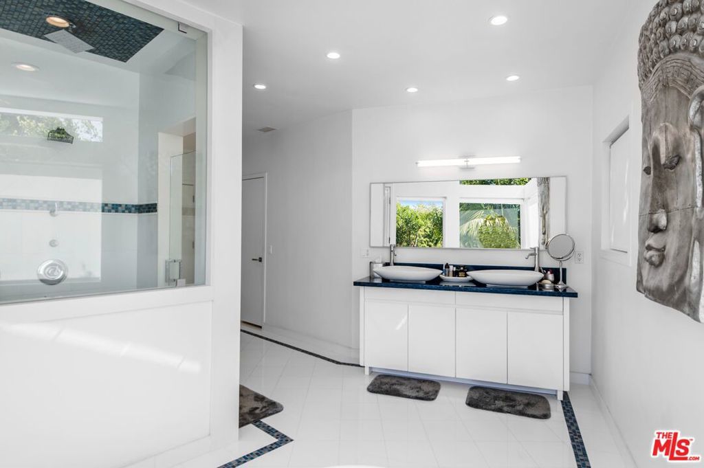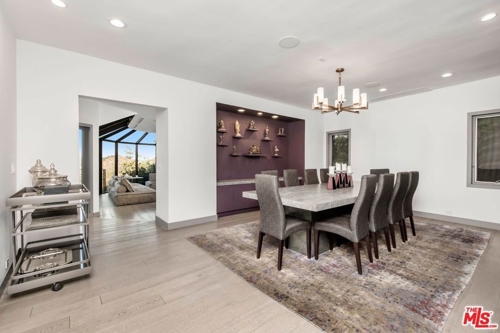 Welcome to The Summit Gated Community. 1 of only 10 homes located in the exclusive Guard-Gated Community The Summit with city views. Boasting over 5,000 square feet of living space, this extremely private and beautifully updated, home is one of the very few in the community to feature city and canyon views. Enter the property into the large gated front courtyard with expansive space for lounging and entertaining. The formal foyer opens into a voluminous great room with soaring two-story wood-paneled and skylit ceiling, impressive fireplace, and walls of sliding glass that open to the outdoor space and overlook the extraordinary views. The architecture of this fabulous home delivers clean lines with walls of glass throughout that seamlessly fuse to integrate the interior and exterior spaces and offer the ultimate Los Angeles lifestyle with ideal space for entertaining in grand style. Public rooms on the main level include a spacious formal dining room, sprawling chef's kitchen with breakfast room, and family room with fireplace and built-in bar. There are 4 bedrooms and 4.5 bathrooms including the tremendous primary suite complete with spectacular views, fireplace, sitting room or office with balcony, walk-in closet, and luxurious bathroom. A total of 3 en-suite bedrooms upstairs including the primary suite and 1 en-suite bedroom downstairs. The backyard offers expansive patio space, spa and infinity pool that endlessly flows to the shimmering vistas beyond.