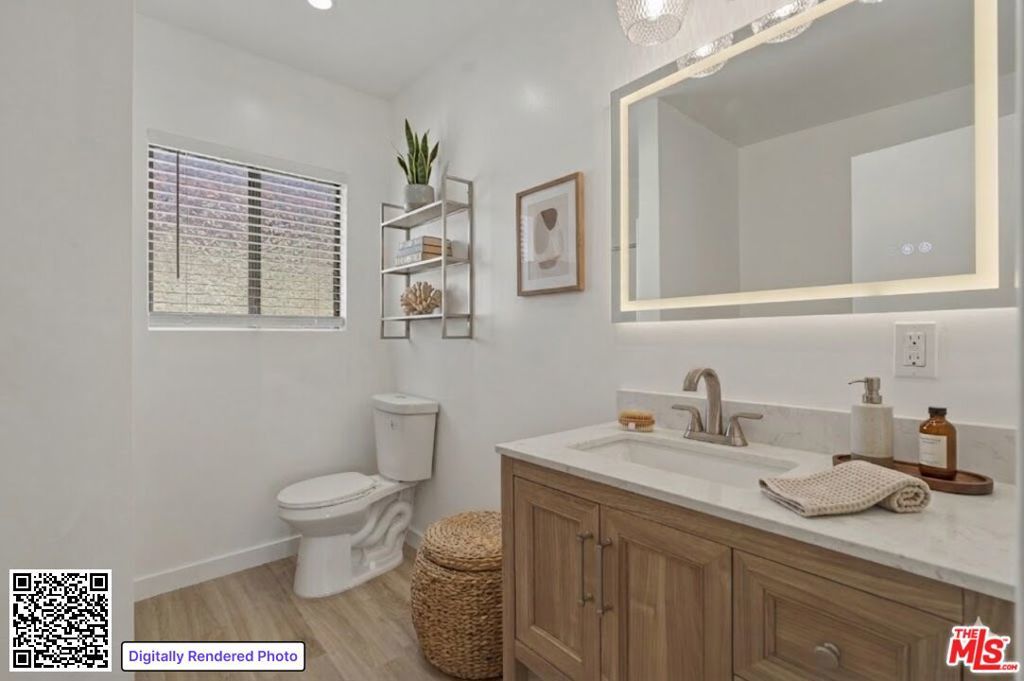 Completely remodeled 2 bedroom 1 bathroom unit located in East Hollywood just minutes from Los Feliz. The unit features a clean, modern finish throughout with new flooring, recessed lighting, and a spacious open layout. The kitchen has been fully updated with new cabinetry, countertops, and includes a refrigerator, microwave, and oven/stove. The bathroom has also been renovated with a modern vanity and lighted mirror.
