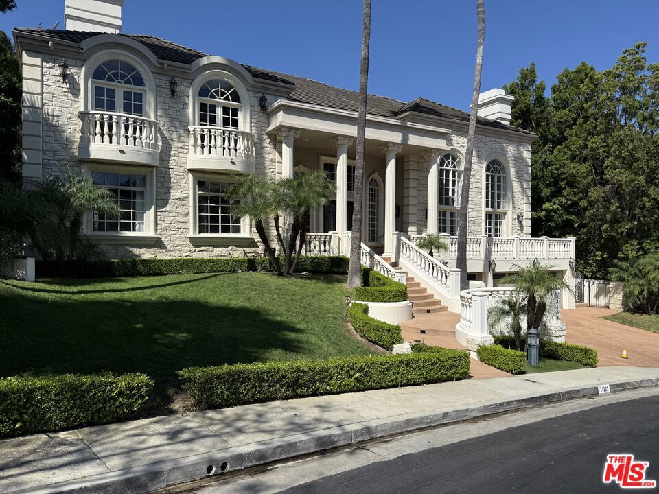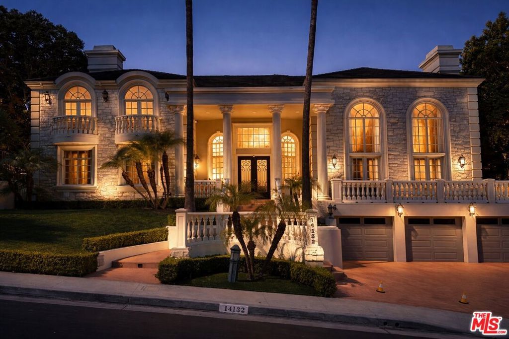 Set behind the gates of the exclusive Mulholland Estates, one of Los Angeles' most prestigious guard-gated communities, renowned for its privacy and home to many high-profile celebrities and elite residents, this grand residence blends timeless European architecture with resort-style living. Now vacant, beautifully remodeled, and available for immediate showings, the property offers both luxury and convenience in a premier location with close proximity to the Westside and many of Los Angeles' top private schools. From its commanding faade with stone detailing, columned entry, and manicured grounds, to sweeping lawns and serene hillside views, this home stands as one of the community's most impressive offerings. Inside, soaring ceilings and light-filled interiors showcase elegant proportions and a refined, neutral palette. The formal living room is designed for both comfort and entertaining, featuring expansive windows, French doors that open to the pool terrace, a stately fireplace, and a sleek wet bar. The remodeled kitchen blends style and function with Caesarstone countertops, a designer glass tile backsplash, Viking 8-burner range, built-in oven and steamer, Sub-Zero refrigeration, and a generous breakfast area overlooking the gardens. The thoughtfully designed floor plan includes four bedrooms upstairs, highlighted by a dramatic primary suite with dual walk-in closets, dual bathrooms, a private sitting lounge, and a two-sided fireplace. A fifth bedroom is located on the main level, while a versatile bonus room offers the flexibility for a sixth bedroom, gym, or creative space. Additional features include a professional recording studio, a recreation room with direct garage access, and seamless indoor-outdoor flow throughout. The private backyard is a true retreat, complete with a pool, spa, gazebo, lush landscaping, and an expansive lawn, ideal for both entertaining and everyday living. A rare opportunity to acquire a beautifully remodeled estate in one of Los Angeles' most coveted gated communities.