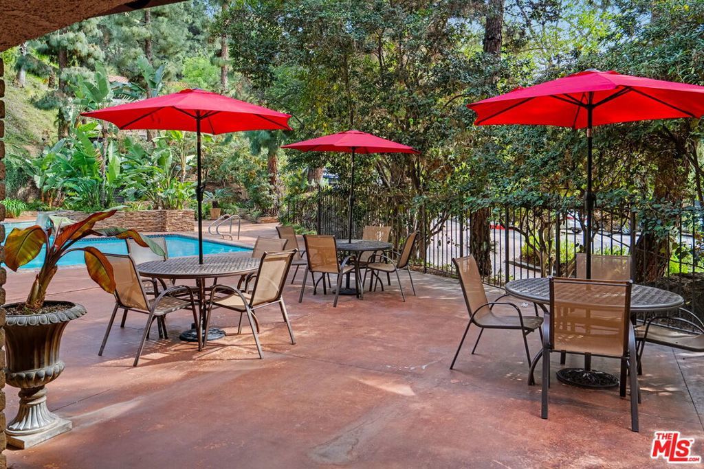 Your permanent vacation starts at Cahuenga Hills Tennis Condominiums! Unit 1203 is a bright, front-facing residence conveniently tucked at the front of the complex, elevated above the parking area with easy access. The updated space feels warm and inviting, featuring light flooring that ties the home together and a curated wall color palette that adds a modern, refreshed feel. The updated kitchen offers ample cabinetry, durable quartz countertops, and stainless steel appliances that open seamlessly into the living area and out to a private balcony surrounded by greenery, creating an incredible indoor-outdoor flow. Additional features include recessed lighting throughout, double-pane windows that bring in abundant sunlight, Nest-controlled central air, and in-unit laundry. This resort-style gated community offers a full suite of amenities including two pools (with a heated main pool), tennis courts, two fitness centers, dry sauna, dog park, a private hiking trail behind the property, ample guest parking, and a recreation room with library, kitchen, pool table, and ping pong, along with a security guard, upgraded camera system, and Butterfly access. What is more, your cable, internet, water and trash are included! Ideally located near the Hollywood Bowl, major studios, famous hiking trails, the beautiful Hollywood Reservoir, and the 101 freeway, this is comfortable, low-maintenance living with a true retreat-like feel in the heart of the city. Your permanent vacation awaits!
