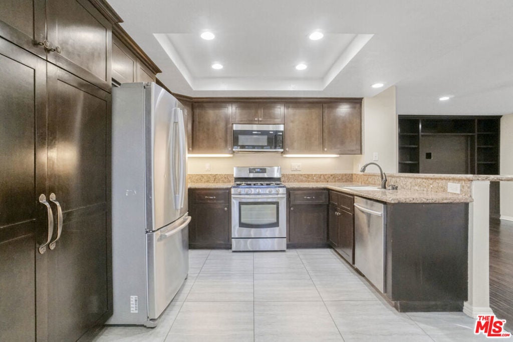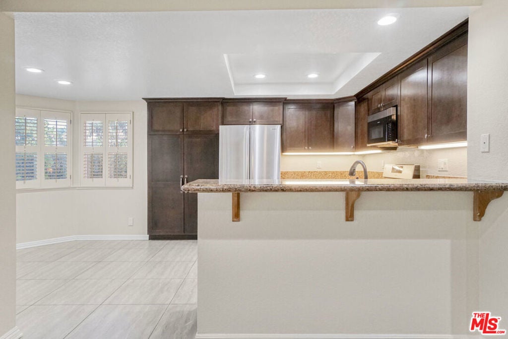 This stunning home in Calabasas Hills Estates offers a blend of luxury and comfort, perfect for families. The living room with its soaring ceilings and cozy fireplace sets the perfect tone for relaxation and entertainment. It's an inviting space that can easily accommodate gatherings or quiet evenings at home.The family room is designed for enjoyment, featuring a built-in entertainment unit that enhances the movie-watching experience. The adjoining sunroom adds extra space for relaxation, making it a versatile area for various activities.The chef's kitchen stands out as a focal point of the home, blending functionality with elegance. Its large breakfast bar and granite countertops make it perfect for both cooking and entertaining, while the charming breakfast nook provides a lovely view of the backyard.The primary suite offers a luxurious retreat, featuring an elegant en-suite bath complete with a dual sink vanity and a soaking tub. The spacious walk-in closet with built-in organizers adds convenience and functionality, making it a perfect personal sanctuary. The second floor features two additional bedrooms and a hallway bath, providing ample space for family or guests. The notable upgrades, including fresh interior paint and modern lighting, enhance the home's appeal and functionality. Living in this community provides a secure environment with 24-hour patrols and a range of amenities that enhance your lifestyle. With access to pools, parks, and award-winning schools, it's an ideal place for families and individuals alike, all while being close to shopping and dining options.