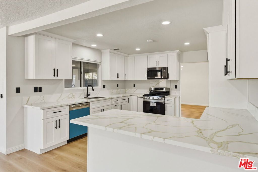 Welcome to this truly stunning, fully remodeled ranch-style home in one of Hesperia's most sought-after neighborhoods. Beautifully reimagined from top to bottom, this impressive residence offers 4 spacious bedrooms, including 1 conveniently located downstairs, and 3 beautifully updated bathrooms across approximately 2,809 square feet of refined living space, all situated on a massive 18,000+ sqft lot. Step inside and enjoy an abundance of natural light that fills the open, thoughtfully designed floor plan. The elegant living room showcases updated lighting, designer flooring, and a cozy fireplace, creating the perfect setting for both everyday living and entertaining. At the heart of the home is the show-stopping chef's kitchen, featuring modern built-in appliances, custom cabinetry, quartz countertops and a separate mini bar w/ sink area ideal for hosting guests or enjoying family gatherings. Each bedroom has been designed with comfort and style in mind, including the spacious primary suite, which serves as a true retreat. The primary bedroom features a spa-like en-suite bathroom complete with a walk-in shower, soaking tub, and a generous walk-in closet. The remodeled bathrooms throughout the home feature high-end finishes, modern tile work, and designer fixtures. Step outside to the expansive backyard offering exceptional versatility with RV access large enough for trucks, cars, boats, and all your toys, plus endless possibilities for outdoor living, storage, or future customization. The workshop shed adds even more functionality to this incredible property. Additional upgrades include a finished 3-car garage, New AC/Heat unit, premium flooring, custom cabinetry, freshly painted inside/out, new water valves inside, new water heater, and septic tank pumped and certified., just to name a few. Ideally located in a prime, commuter-friendly neighborhood near top-rated schools, beautiful mountain surroundings, and just minutes from the 15 Freeway, this move-in ready home truly shows like a model. A must see. Not to be missed. MOST UPGRADED AND BEST PRICED IN THE DIRECT AREA.