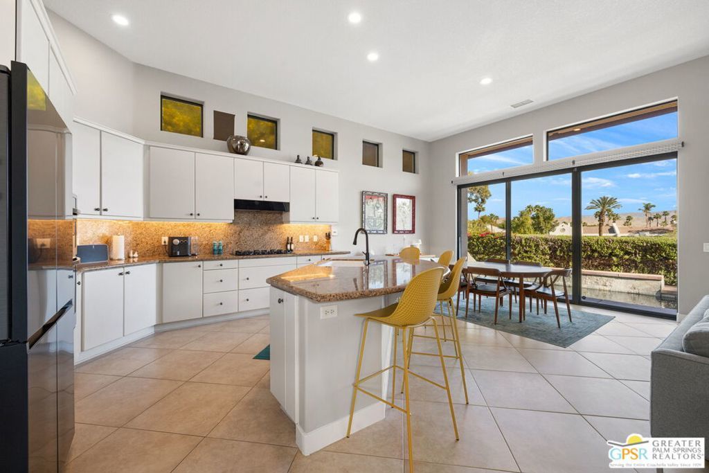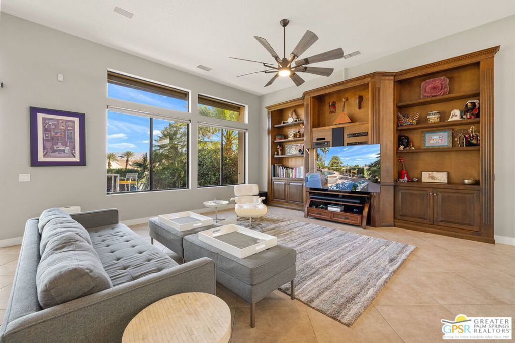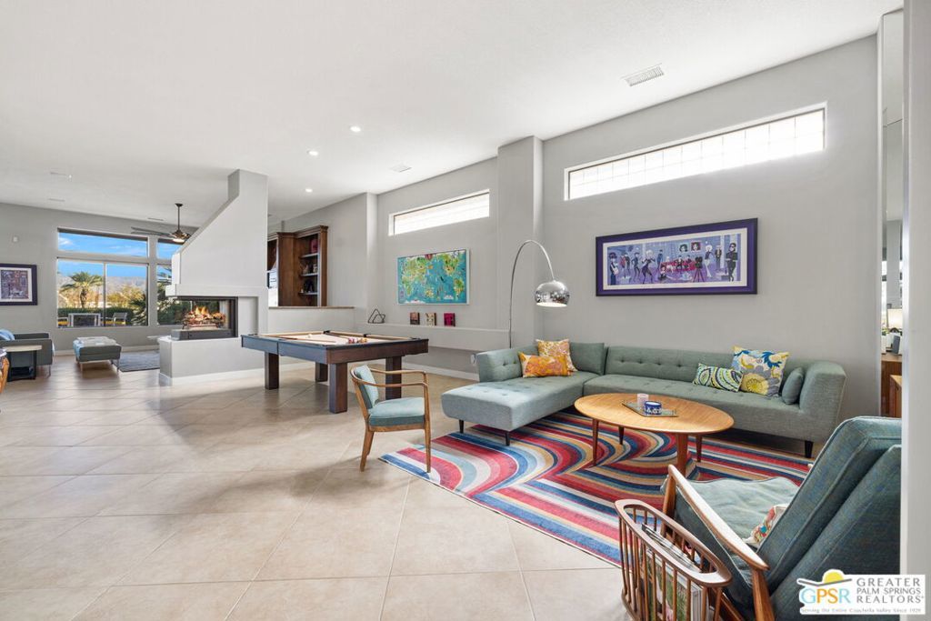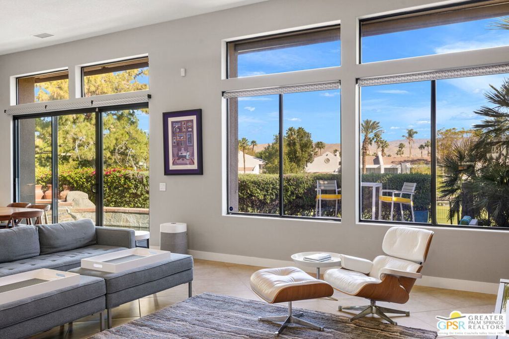 Set along the 14th fairway of the Pete Dye Course at Mission Hills Country Club, this single-level 3 bedroom, 3.5 bath residence at Stone Ridge Estates captures sweeping golf course and mountain views in a setting defined by space, light, and lifestyle. With a private pool and spa, open floor plan, and both formal and casual living areas, the home is designed for effortless desert living. Tall ceilings and expansive living spaces create an immediate sense of volume, while large windows and doors frame the fairway and surrounding mountains. The layout allows for both connection and separation, making it ideal for entertaining or simply enjoying the quiet rhythm of the desert. Outdoor living is a true highlight. Mornings begin with sunlight stretching across the fairway, while evenings unfold poolside beneath retractable awnings designed for comfort and shade. A private side courtyard offers a second outdoor retreatlushly landscaped and perfect for quiet moments, gatherings, or simply enjoying the desert air. The Primary Suite enjoys views and privacy, while two additional ensuite bedrooms provide comfortable accommodations for guests or extended stays. The home has also been thoughtfully updated, including newer Lennox HVAC systems, motorized shades, updated lighting, pool equipment, and refreshed landscaping. Additional features include a spacious garage, smart home lighting, and flexible living spaces that have supported both personal enjoyment and seasonal rental use. Ownership includes HOA benefits with social/fitness membership to Mission Hills Country Club, offering access to dining, fitness, and a vibrant calendar of events all within a welcoming and well-managed community. A home defined not just by its views, but by the lifestyle it creates - where mornings, sunsets, and everyday moments become something special.
