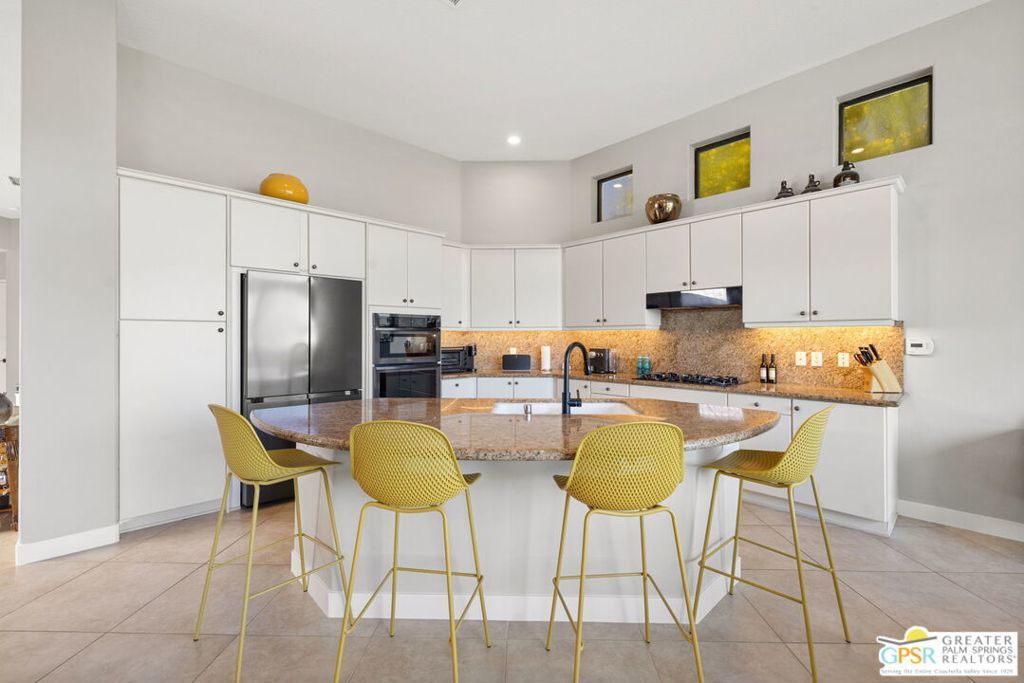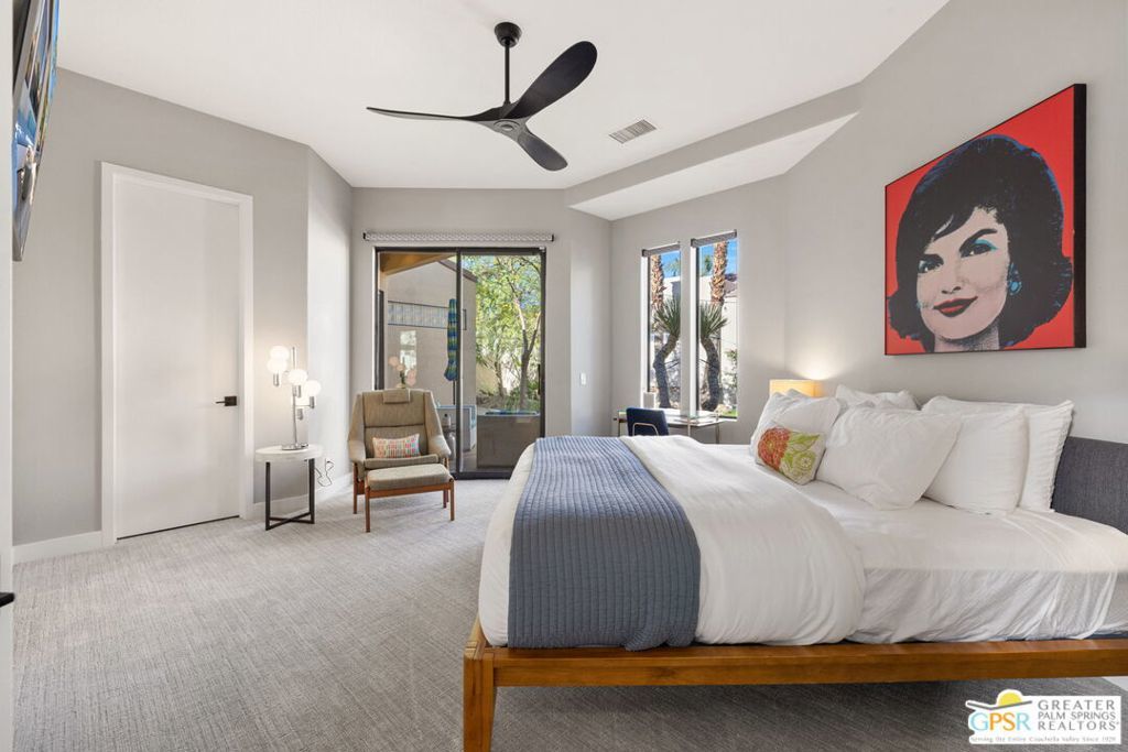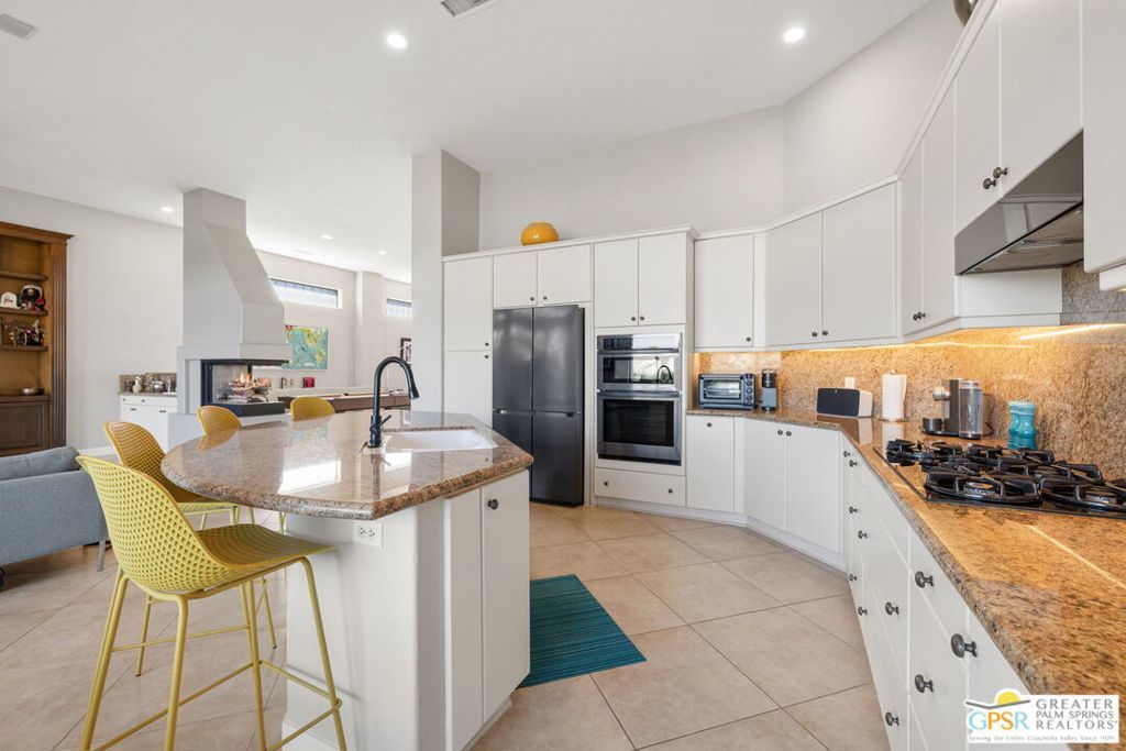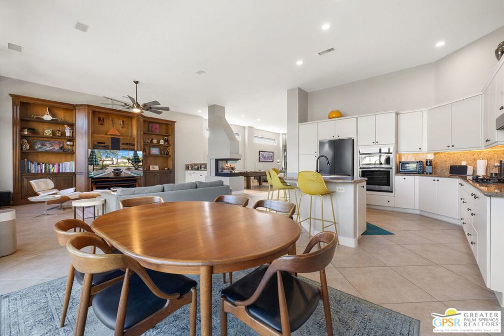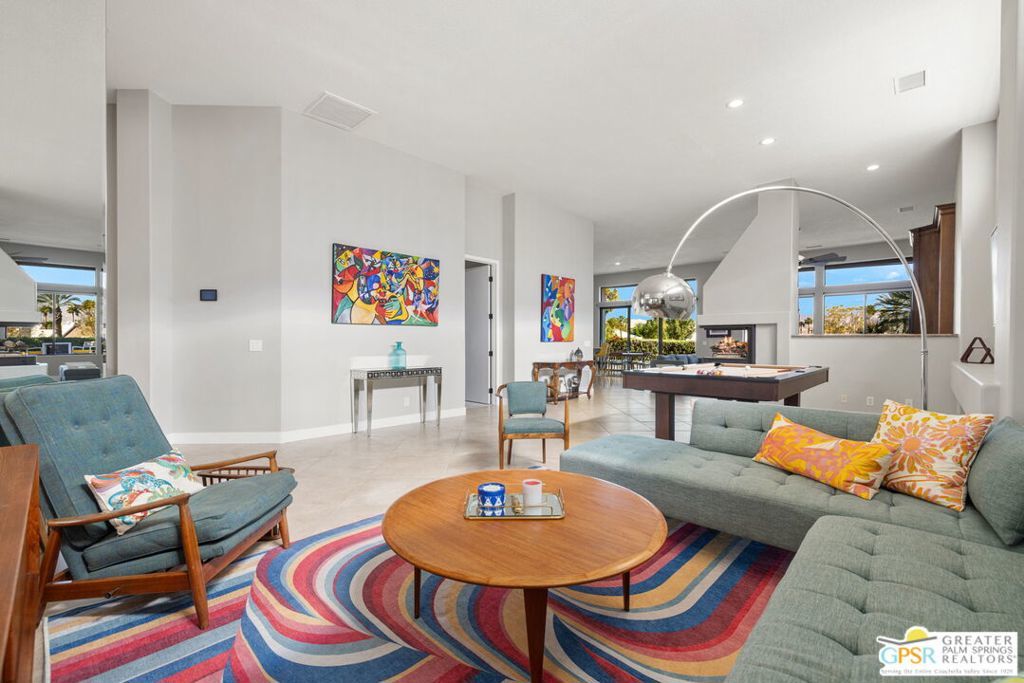 Set along the 14th fairway of the Pete Dye Course at Mission Hills Country Club, this single-level 3 bedroom, 3.5 bath residence at Stone Ridge Estates captures sweeping golf course and mountain views in a setting defined by space, light, and lifestyle. With a private pool and spa, open floor plan, and both formal and casual living areas, the home is designed for effortless desert living. Tall ceilings and expansive living spaces create an immediate sense of volume, while large windows and doors frame the fairway and surrounding mountains. The layout allows for both connection and separation, making it ideal for entertaining or simply enjoying the quiet rhythm of the desert. Outdoor living is a true highlight. Mornings begin with sunlight stretching across the fairway, while evenings unfold poolside beneath retractable awnings designed for comfort and shade. A private side courtyard offers a second outdoor retreatlushly landscaped and perfect for quiet moments, gatherings, or simply enjoying the desert air. The Primary Suite enjoys views and privacy, while two additional ensuite bedrooms provide comfortable accommodations for guests or extended stays. The home has also been thoughtfully updated, including newer Lennox HVAC systems, motorized shades, updated lighting, pool equipment, and refreshed landscaping. Additional features include a spacious garage, smart home lighting, and flexible living spaces that have supported both personal enjoyment and seasonal rental use. Ownership includes HOA benefits with social/fitness membership to Mission Hills Country Club, offering access to dining, fitness, and a vibrant calendar of events all within a welcoming and well-managed community. A home defined not just by its views, but by the lifestyle it creates - where mornings, sunsets, and everyday moments become something special.