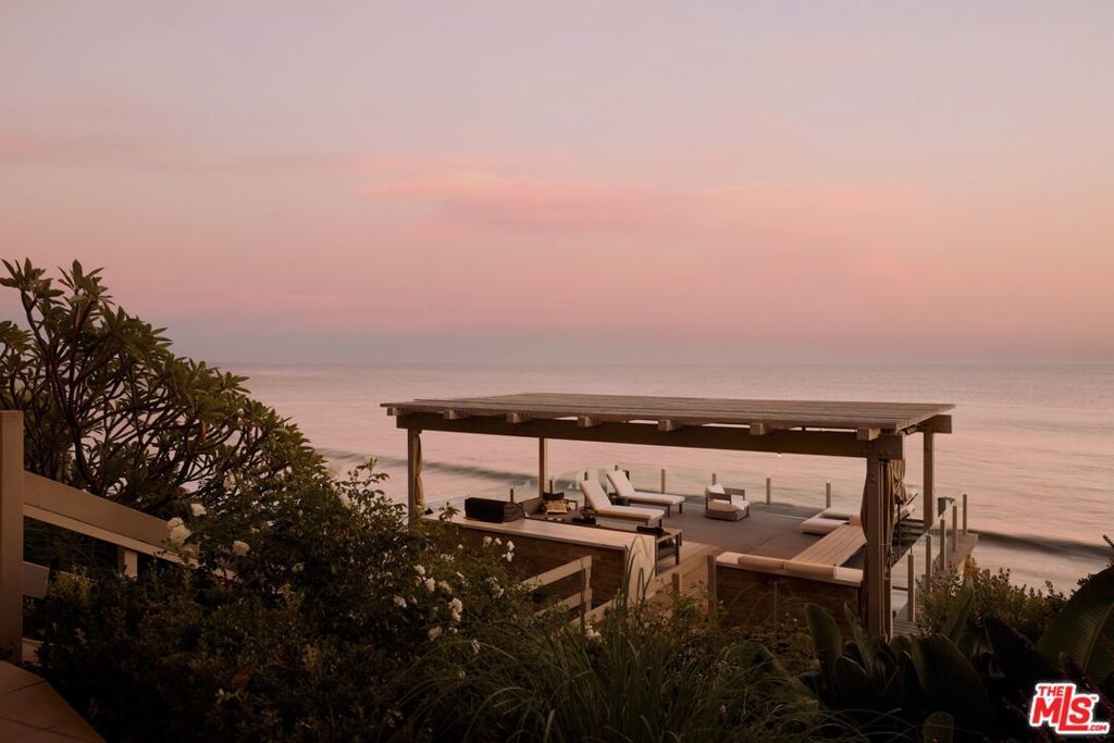 Spectacular Paradise Cove beachfront compound located on the sand in one of the most exclusive gated enclaves in the world, offering stunning blue-water views up and down the coast. With approximately 90 feet of beach frontage, this estate is not on the bluffs or merely ocean-view like others in the community that have sold in the $90 - $200 million range - it is truly oceanfront. A separate, fully self-contained second home/large cabana sits directly on the sand. A rare and expansive entertaining patio is also positioned right on the beach, along with a large rooftop deck atop the cabana - perfect for hosting gatherings and events on and in the water. The spacious, light-filled main home features four bedrooms, including dual primary suites, and a vast kitchen/dining/family great room with soaring ceilings, skylights, a fireplace, wraparound windows, and decks for lounging and seamless indoor/outdoor entertaining - all opening to the ocean and panoramic coastal views. The lower level includes a screening/game room that opens directly to the ocean, plus a full bath and a hidden kids' bunk room. The enclave itself is gated and set back from the highway, while this particular compound is located at the end of a cul-de-sac, offering the ultimate in privacy and security. The larger of the two primary suites includes a fireplace, sitting area, walk-in closet, ocean-view spa bath, and a private deck with views. The second home/cabana features a kitchen, full bath, dining area, and large living room that opens to the water and oceanfront deck. Whether used as a main residence or a vacation retreat, this compound presents a rare opportunity to live on the sand within Malibu's premier, ultra-exclusive, billionaires' gated enclave.