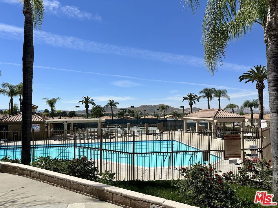 This beautiful single-story 2-bedroom, 2-bath home in the 55+ Casa Blanca Villas community offers an open-floor plan with a fully equipped kitchen, abundant natural light, and sliding doors to a patio ideal for outdoor dining. The primary bedroom includes an ensuite bath; the second bedroom overlooks the charming and quite neighborhood. Additional amenities include washer/dryer, new A/C, and a 2-car garage with storage. The house is only 1/2 block away from the clubhouse where you can enjoy the pool, spa, tennis courts, exercise room, BBQ area, billiards room, and the social lounge with a fireplace and TV. It is conveniently located near Menifee Global Medical Center, shops, pharmacies, and restaurants. Ready to move in!