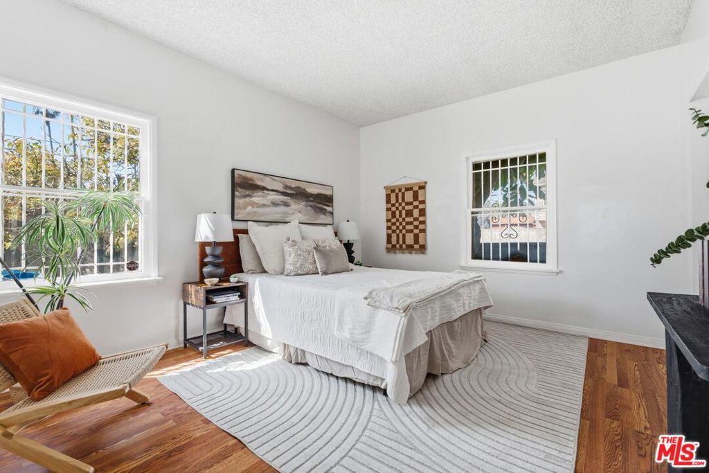 Charming 1927 Spanish-style gem nestled in the prestigious Windsor Hills area, offering 3 bedrooms and 1 and 1/4 baths bursting with character and untapped potential. Stunning focal-point windows flood the interior with natural light, while a cozy fireplace anchors the living room. The easy, functional floor plan flows naturally from room to room perfect for everyday living and entertaining. Original hardwood floors in the living area complement the new flooring throughout the bedrooms and hallway, and the home has been freshly painted throughout. The large lot and spacious bedrooms give you room to grow, while the expansive backyard offers multiple entertaining possibilities a charming barn-style covered area and a covered patio with built-in brick BBQ. A long driveway leads to a detached one-car garage with excellent ADU potential. This is a fantastic opportunity for a buyer looking to put their personal touch on a home with great bones in a highly sought-after neighborhood. Some updates needed making it the perfect canvas to build equity and make it truly your own. Sold AS-IS. No termite report provided. Buyers and Buyers' Agents are advised to conduct their own due diligence. No warranties or guarantees made by Owners or Owners' Agents.