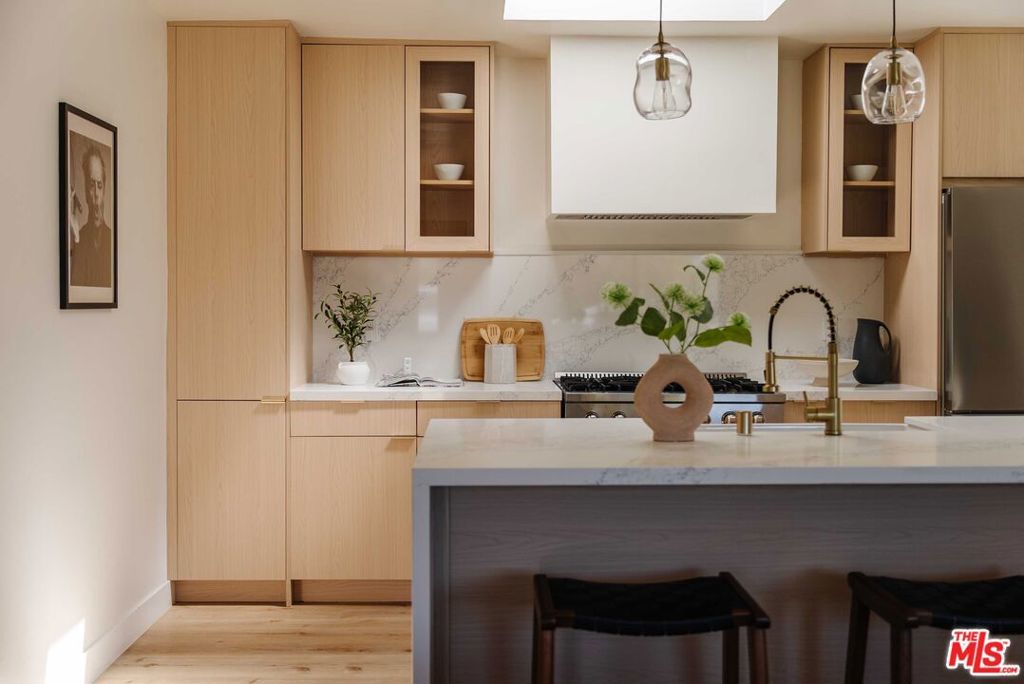 Nestled behind a privacy hedge and gated entry, this newly remodeled retreat perfectly blends charm and sophistication. An open-concept living space welcomes guests, anchored by a chef's kitchen featuring a stunning center island and premium appliances. The interior flows effortlessly toward the private quarters, where you'll find three bedrooms - including a tranquil primary suite with a generous walk-in closet and a spa-inspired bath with dual vanities and a glass-enclosed shower. Find thoughtful upgrades throughout such as rich hardwood floors, a tankless water heater, and Nest thermostat. Beyond the main house, a versatile bonus room awaits - perfect for an office, home gym or creative studio. The finished garage doubles as a cozy den, opening seamlessly to an expansive backyard featuring a firepit lounge and alfresco dining area. Perfectly situated near the beach, Google HQ, Mar Vista, Culver City, and Marina del Rey, this home offers a rare blend of seclusion and convenience.