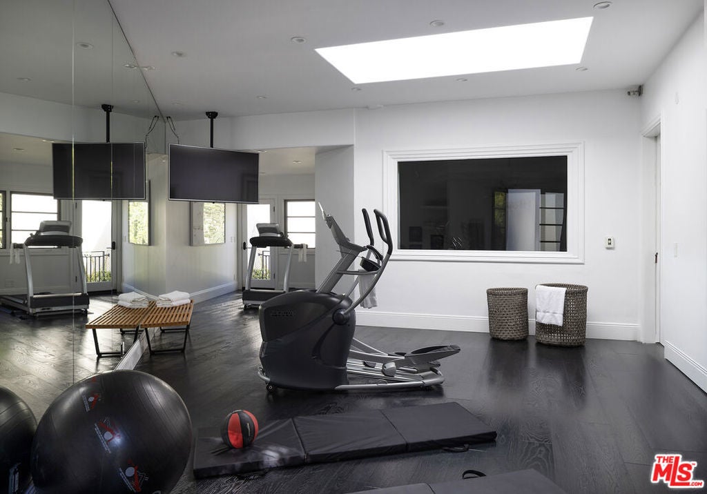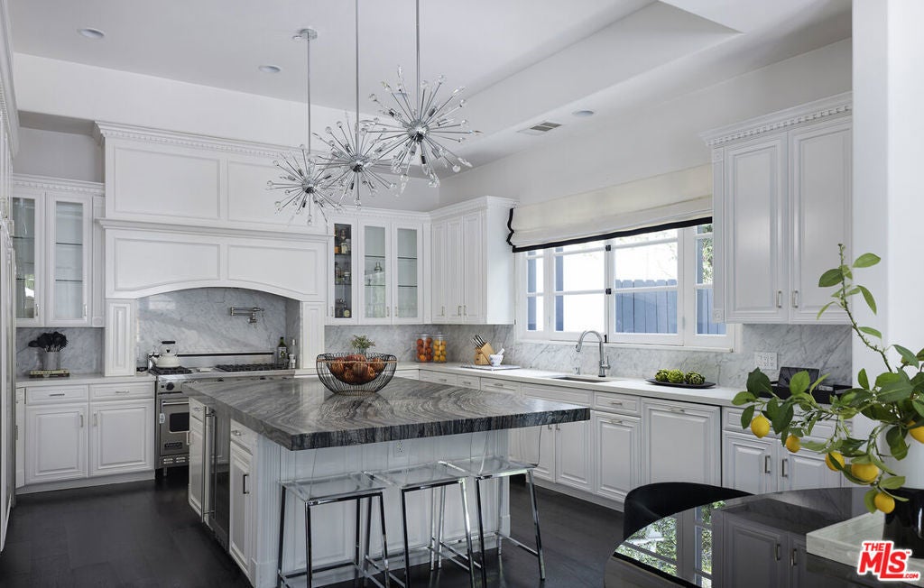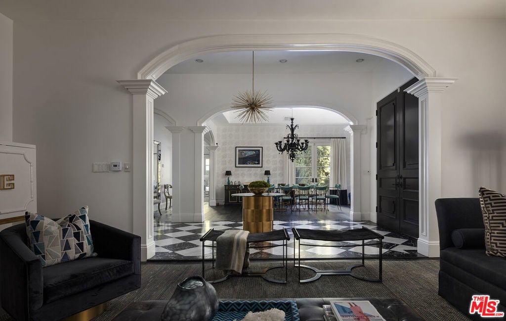 A Beverly Hills Masterpiece, Steps from Sunset... Discreetly positioned moments from the Beverly Hills Hotel, this Contemporary Mediterranean estate offers a rare convergence of professional design and effortless livability. Preston Lee's interior vision is realized throughout furniture and art by Jonathan Adler, Slim Aarons, and Fornasetti lending each room a collected, timeless character that photographs cannot fully capture. The open floor plan unfolds beneath soaring ceilings with recessed lighting, rich hardwood floors, and custom crown moldings. A dramatic black-and-white marble entry sets the tone before giving way to formal living and dining rooms sized for seated gatherings of any scale. The entertainer's family room flows naturally into a chef's kitchen anchored by an oversized center island the kind of layout where guests migrate effortlessly from cocktails to dinner without the party ever losing its momentum. French doors extend the entertaining footprint outdoors to a private patio with retractable awning, pool and waterfall, built-in BBQ, and outdoor fireplace. Whole-home surround sound covers every zone upstairs, downstairs, inside and out so the atmosphere travels with your guests wherever the evening takes them. Five bedrooms and six baths are distributed across two levels. Upstairs, the primary suite is a destination unto itself: a fireplace, generous walk-in closets, double vanities, sunken soaking tub, and an oversized shower. Three additional en-suite bedrooms with private balconies mean out-of-town guests arrive to hotel-level privacy and comfort. A dedicated gym and dance studio complete the upper floor equally useful the morning after a late night as it is for a more intentional occasion. Further amenities include a basketball court, trampoline area, three interior fireplaces, and a three-car garage. Whether you're hosting an intimate dinner, a poolside gathering, or a full weekend of guests, this home has the design, vibe and the pedigree to do it beautifully. Some homes must be experienced to be understood. This is one of them.