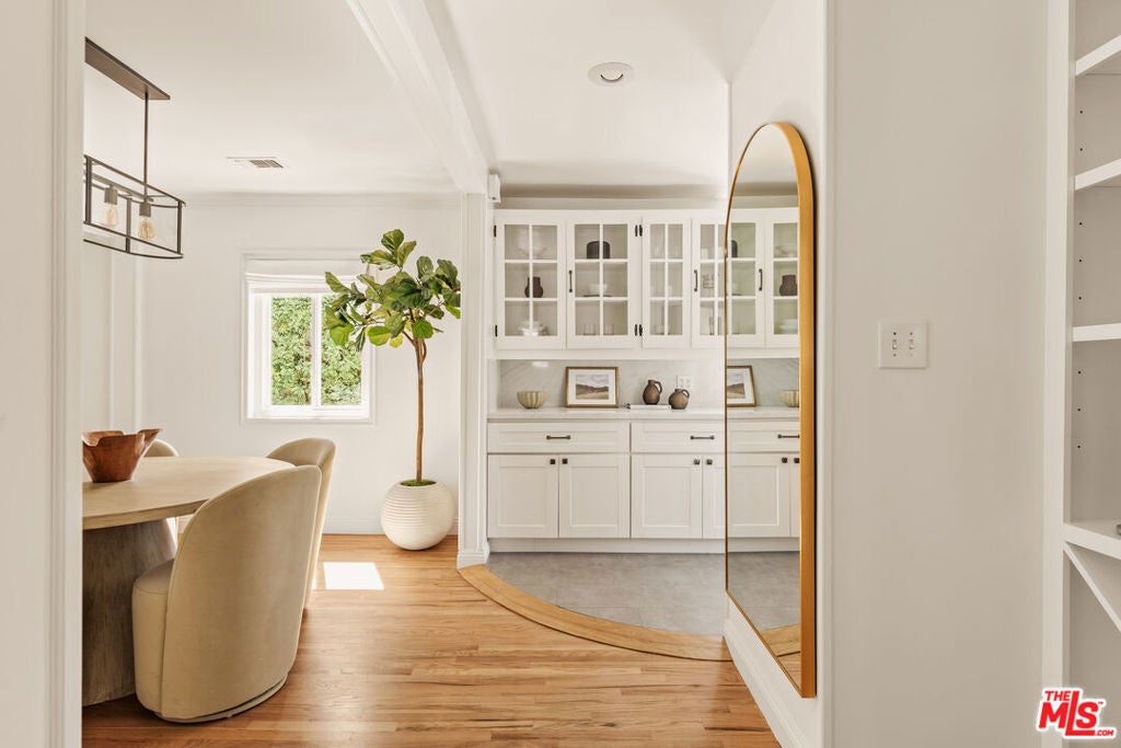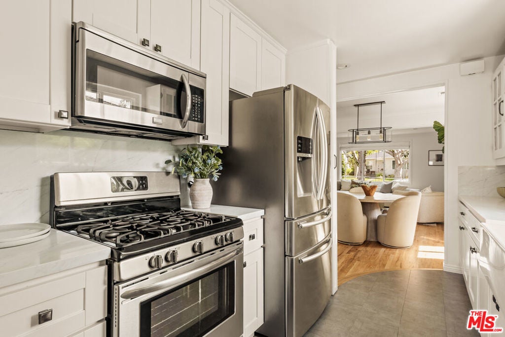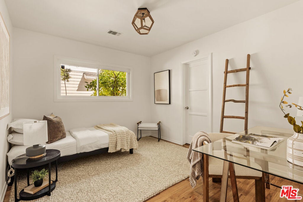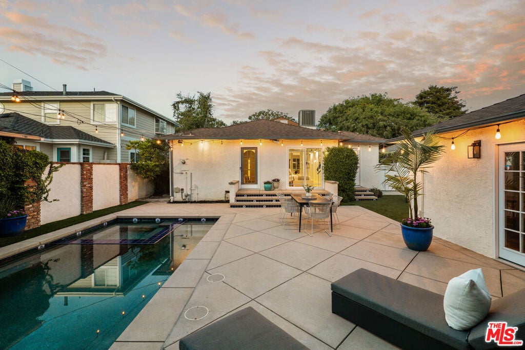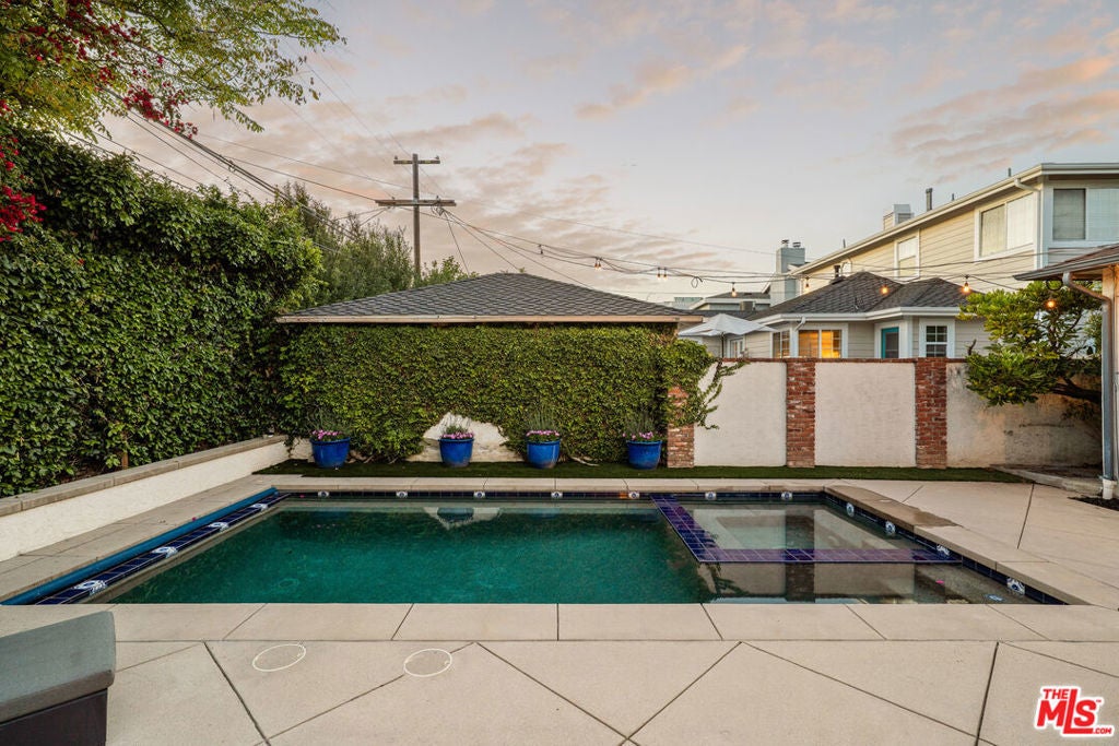 Nestled in the highly sought-after North Kentwood neighborhood, this beautifully updated pool home blends timeless character with thoughtful modern upgrades. Offering 3 bedrooms and 2 bathrooms with single-level living, the home welcomes you with warmth, natural light, and refined finishes throughout. Step inside to discover newly refinished hardwood floors that flow seamlessly throughout the home, enhancing the bright, airy interiors. Classic architectural details such as coved archways and built-in shelving add charm and sophistication, while the open layout creates an effortless connection between living, dining, and entertaining spaces. Built-in speakers throughout the home create the perfect atmosphere for everyday living and entertaining. The heart of the home is the newly remodeled kitchen, featuring quartz countertops, a designer backsplash, a new farmhouse sink, and stainless steel appliances, perfectly blending style and function for everyday living and hosting alike. The spacious primary suite offers generous closet space, a bathroom with dual sinks, and direct access to the backyard, one of three access points that create seamless indoor-outdoor flow. Outside, a private oasis awaits, featuring a sparkling pool and spa, lush landscaping, and space for both quiet relaxation and memorable gatherings. The pool features an automatic protective cover that may be walked on, along with new landscaping and drainage. Whether enjoying a peaceful morning or entertaining under the California sun, this backyard delivers the ultimate indoor-outdoor lifestyle. The garage has been converted to a bonus room/flex space/pool house with new flooring, offering additional versatility for a home office or gym. Ideally located near neighborhood favorites, including little Vons, shops, a yoga studio, and everyday conveniences, this N Kentwood gem offers comfort, style, and an exceptional Westchester lifestyle. The main house is 1,483 sq ft, and the converted garage is approximately 350 sq ft.