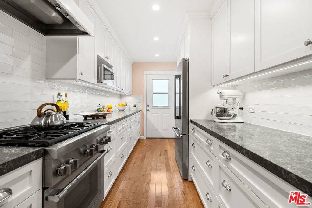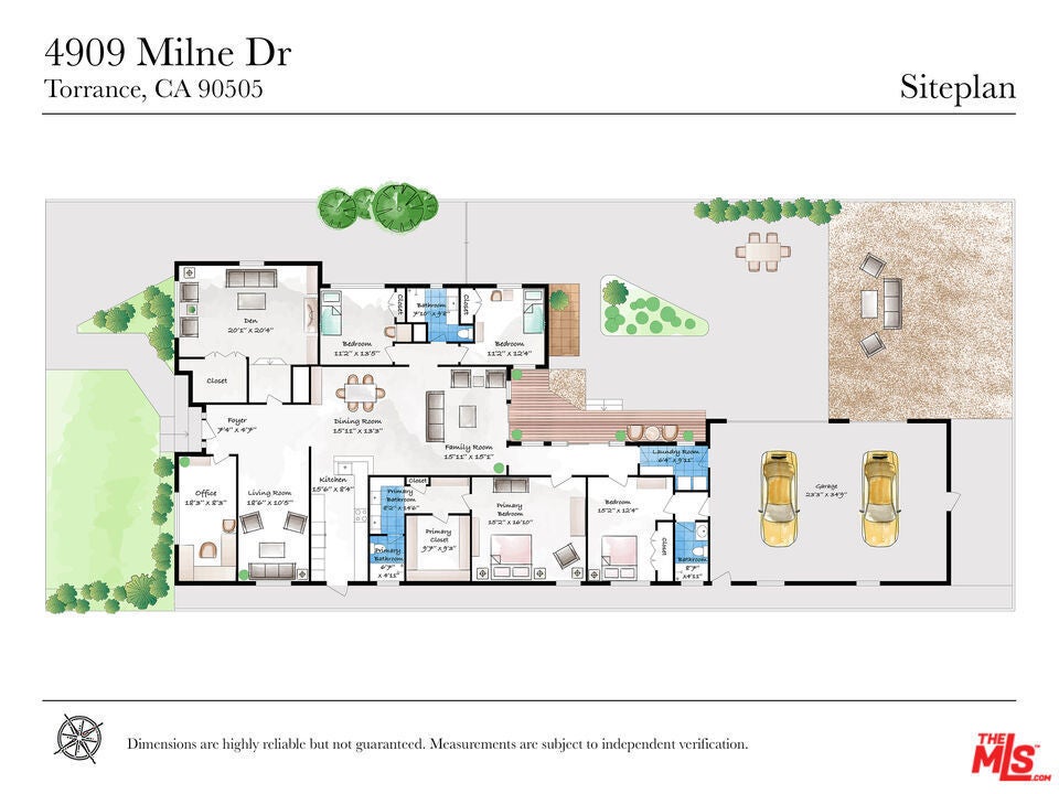 Set in the coveted Seaside neighborhood of South Torrance, just moments from Riviera Village and the beach beyond, 4909 Milne offers the best of coastal living with nearly 2,700 square feet all on a single level. With 4 bedrooms, 3 bathrooms, a den that easily functions as a 5th bedroom, and a dedicated office, the home offers the kind of space and flexibility that's hard to find. Situated on a 9,000 square foot lot with a 3+ car garage, there's plenty of room to create your ideal backyard, whether that means a pool, play space, or a large grassy area. A south-facing front door welcomes you into a light-filled entry with vaulted ceilings that extend into the sun-soaked office at the front of the home and the inviting living room. The home has been thoughtfully remodeled throughout, featuring 3/4 inch hardwood floors, brick flooring in the den, custom cabinetry, and quartz countertops in the kitchen and baths. The kitchen offers ample storage and is equipped with newer stainless steel appliances, including a Thermador range and Bosch refrigerator and dishwasher. It opens seamlessly to the dining area and family room, where sliding doors lead out to the deck and expansive backyard beyond. The layout is both functional and private. Two bedrooms off the family room share a full bath, while the rear of the home features two en suite bedrooms, including the primary suite with a custom walk-in California Closet, dual sinks, and a beautifully finished white tiled shower. A dedicated laundry room connects to the attached garage, offering space for three cars plus a work area, ideal for car enthusiasts, a gym, or potential ADU conversion. Located on a flat, quiet street near some of the South Bay's best schools, dining, and beaches, 4909 Milne is a rare opportunity in one of Torrance's most sought-after neighborhoods.