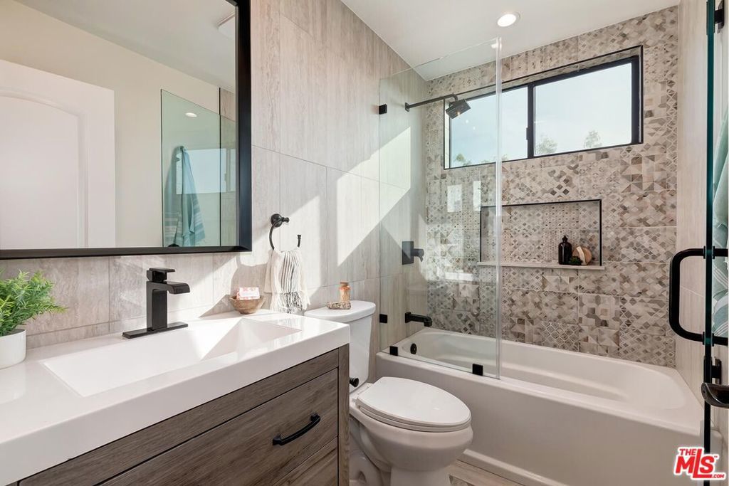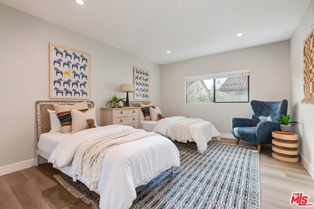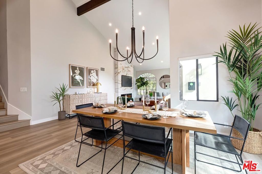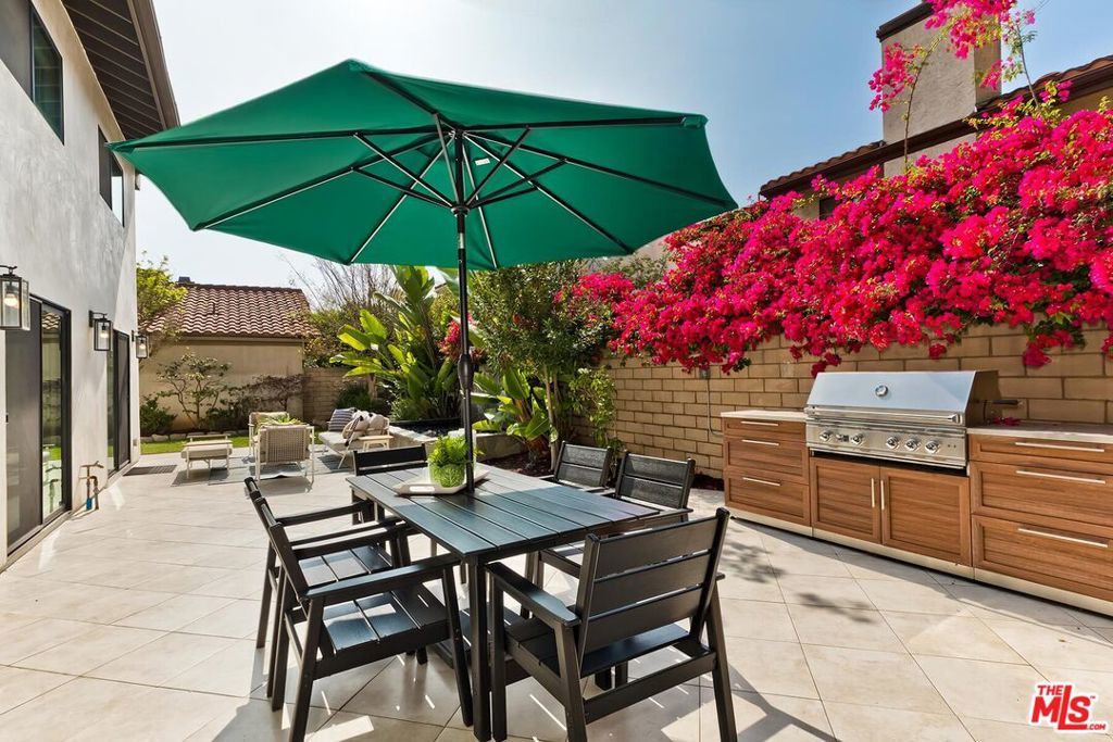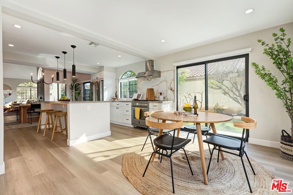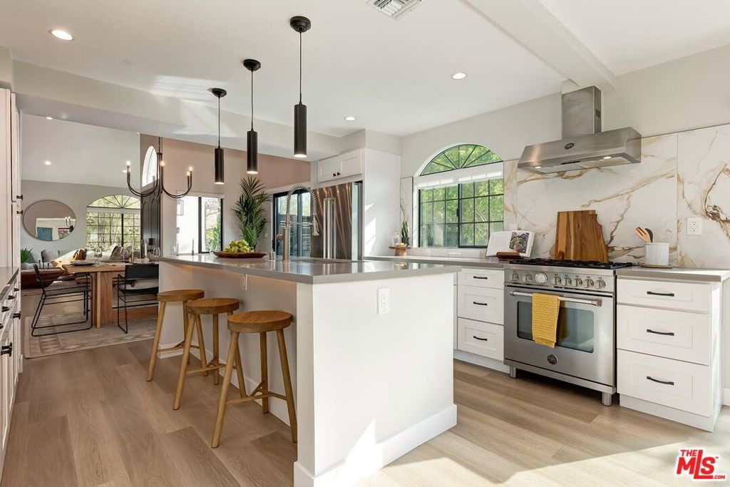 Stunning Modern Mediterranean Retreat on a Rare Cul-de-Sac Lot in Culver City. Thoughtfully designed and meticulously remodeled, this gorgeous 2-story, 4-bedroom home sits on an expansive 8,108 sq ft lot in a tranquil cul-de-sac within Studio Estates just moments away from the restaurants, shops, and energy of Downtown Culver City. Located in the highly sought-after Culver City Unified School District, this home checks every box for discerning buyers. A sweeping front driveway sets the tone, offering exceptional privacy and ample space for up to 8 cars leading to a 2-car garage. The lush grounds feel like a private oasis, featuring a sprawling grassy yard, multiple patio spaces, outdoor dining, a built-in barbecue center, and a cascading fountain surrounded by mature trees. Inside, soaring vaulted ceilings and wide-plank French oak luxury vinyl floors create a bright, airy atmosphere. The living room is anchored by a sleek electric fireplace framed in dramatic floor-to-ceiling Italian porcelain, with picture windows overlooking the quiet, no-through-traffic street. The dining area opens seamlessly to the backyard, perfect for indoor-outdoor entertaining. The chef's kitchen is anchored by a Bertazzoni range and framed by Italian porcelain backsplash, with white soft-close cabinetry, grey quartz countertops, and a center island with seating. It flows into a casual breakfast area and family room where multiple sliding glass doors dissolve the boundary between indoors and out. The flexible floor plan includes a downstairs bedroom served by an updated full bath, ideal for guests or a home office. Upstairs, the primary suite features vaulted ceilings, a walk-in closet, and a serene bath with an oversized walk-in shower, porcelain tile walls, tumbled marble floors, hand shower, and a rain shower head. Two additional bedrooms share a second updated bath. Set on a street where neighbors gather and kids play, this home delivers the rare combination of privacy, community, and walkability, steps from Culver City's top restaurants, theaters, and weekly farmers market, and minutes from Sony, Amazon & Apple offices/studios.