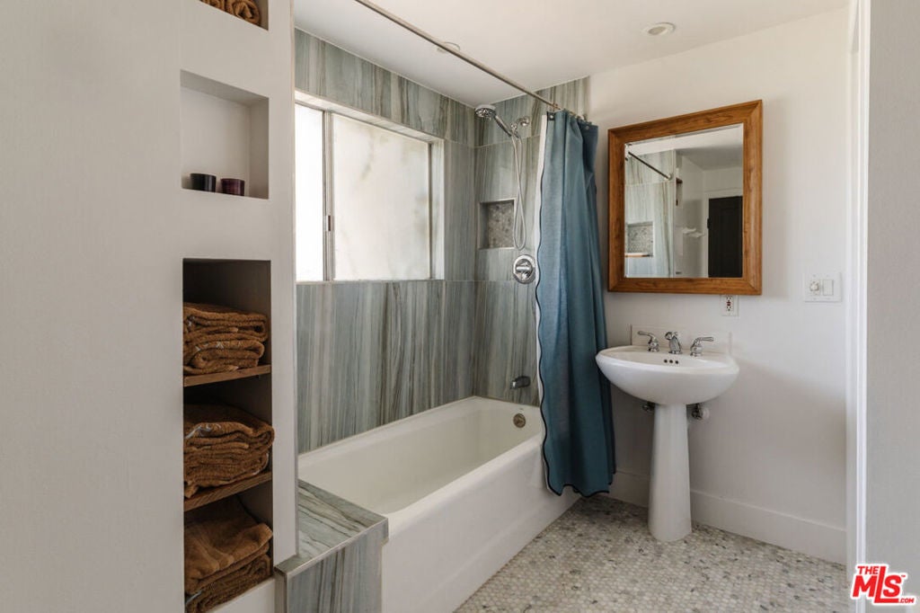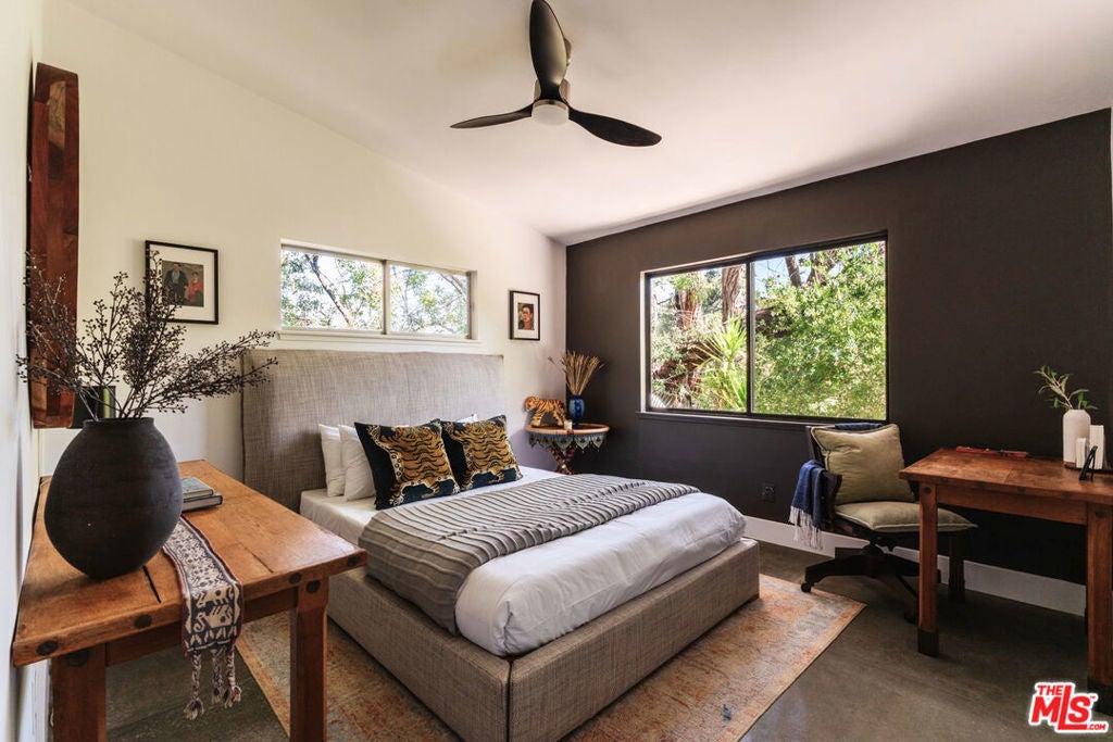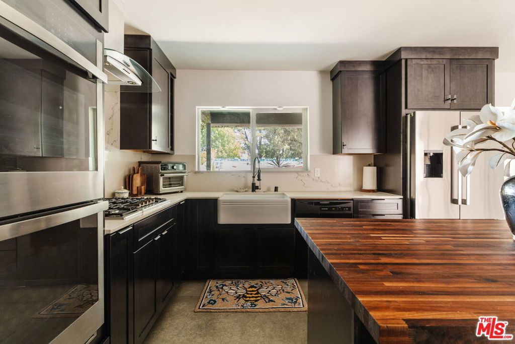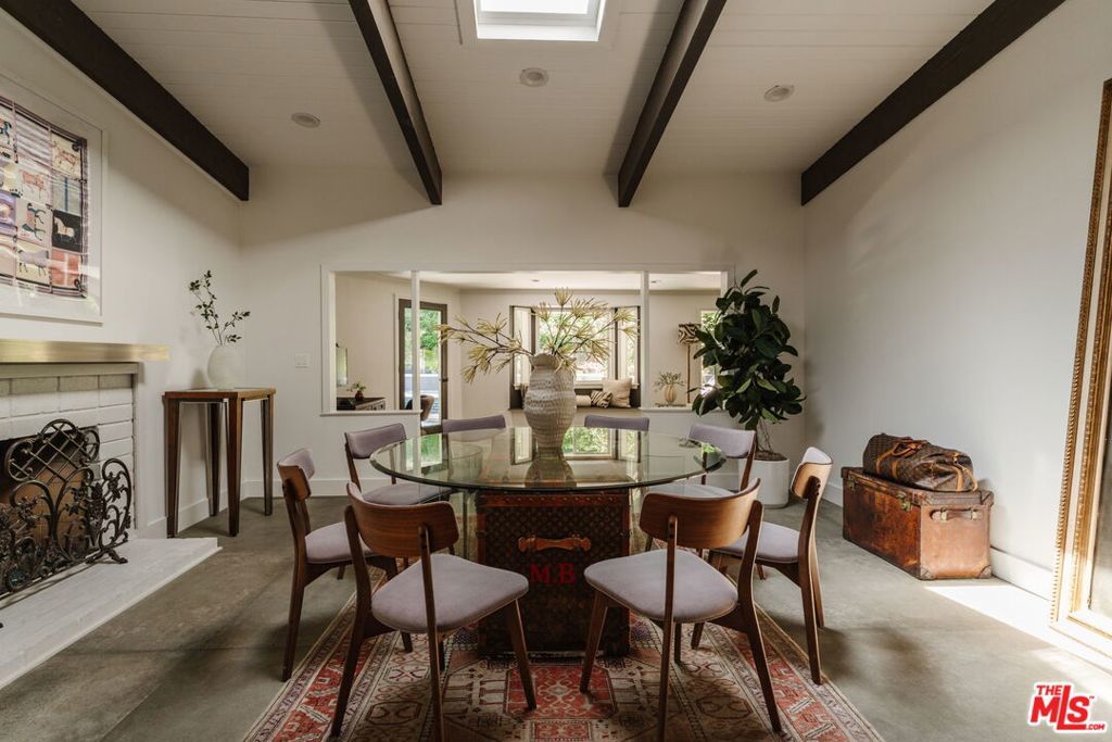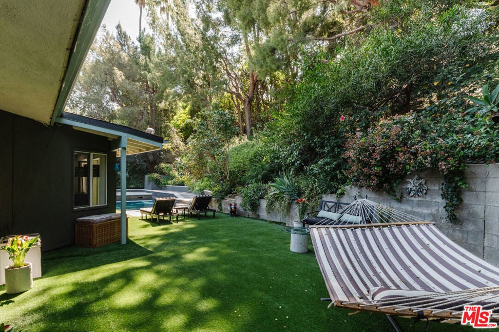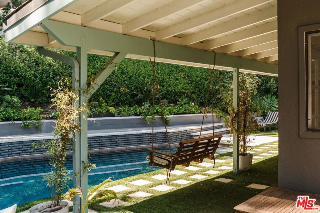 Welcome to iconic mid-century living in this Charles Du Bois residence, thoughtfully reimagined to elevate everyday livability while preserving its architectural roots. Vaulted, beamed ceilings and skylights crown the main living areas, inviting abundant natural light and creating an airy, serene atmosphere throughout. The living spaces flow effortlessly from the beautifully updated kitchen, with custom cabinetry, generous storage, and elevated finishes, into the dining and living rooms that extend seamlessly to the backyard for true indoor-outdoor connection. The completely private, lush backyard feels like a true sanctuary with a solar-heated pool and multiple areas for lounging and entertaining; it's the perfect space for slow mornings, sun-soaked afternoons, and memorable evenings with family and friends. The primary suite opens directly to a private corner of the backyard, extending the home's sense of serenity and connection to nature. Two closets provide functional storage, while the spa-like en-suite bathroom offers ease and elegance with dual vanities, a glass-enclosed shower, and a freestanding tub. Three additional generously sized bedrooms provide comfort and flexibility for family and guests, while the versatile den/bonus area is ideal as an additional living space, home office, playroom, fitness studio, or creative retreat. Additional highlights include a two-car garage with direct access to the home and a separate storage shed for added convenience. The home has been thoughtfully and extensively remodeled over the last several years, including a completely redesigned kitchen and bathrooms, new flooring throughout, fresh interior and exterior paint, new interior and exterior doors, updated HVAC and furnace, a new water heater, a new roof, and enhanced landscaping, allowing you to move right in and enjoy with ease. Ideally positioned in the highly desirable West of Valley Circle neighborhood, this home is just moments from shops, restaurants, markets, and scenic hiking trails. Enjoy living in close proximity to The Commons at Calabasas, the Topanga Mall and Village, Platt Village, and the 101 for easy commuting. Zoned for award-winning schools, including Lockhurst Elementary, Hale Charter Middle, and El Camino Real Charter High School. A rare alignment of design, discretion, and location; this is Woodland Hills living, elevated.