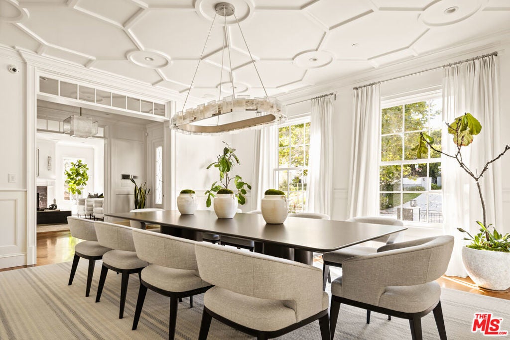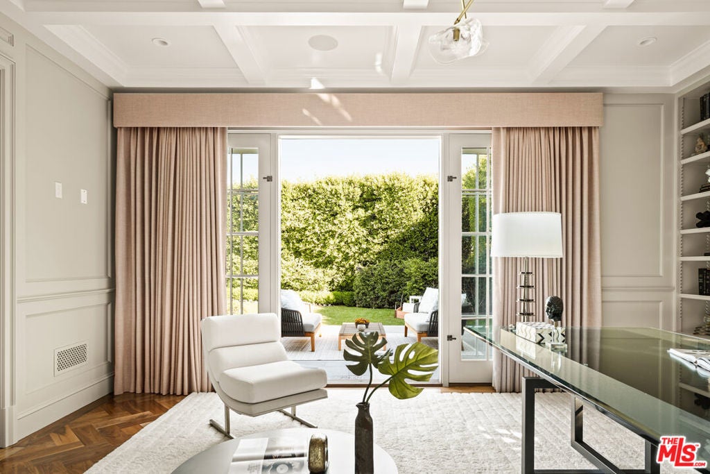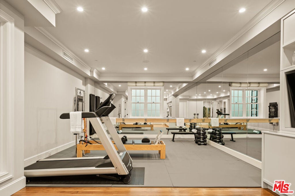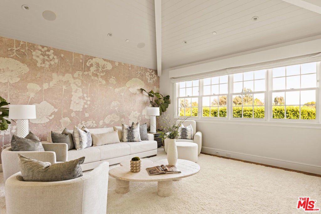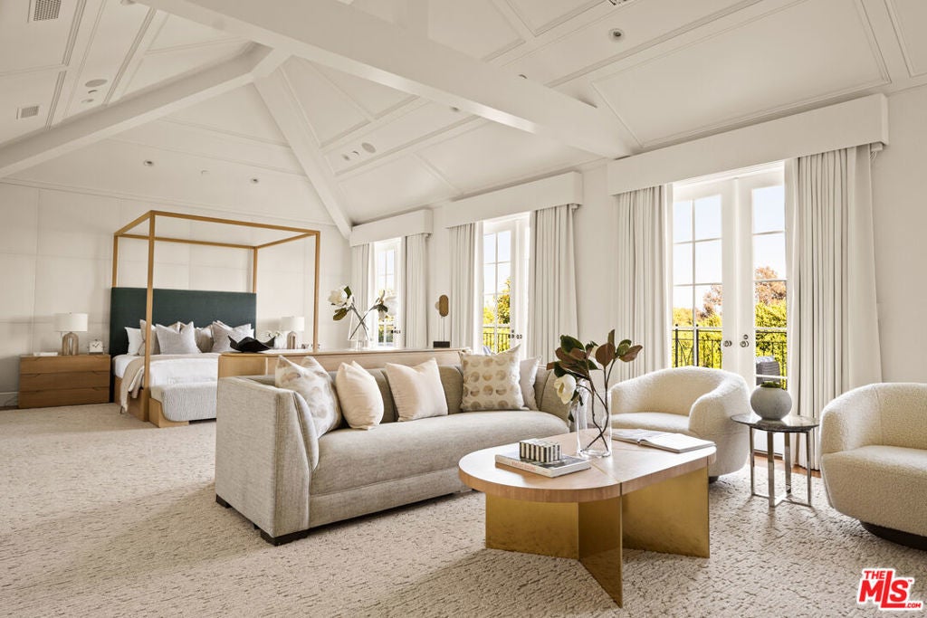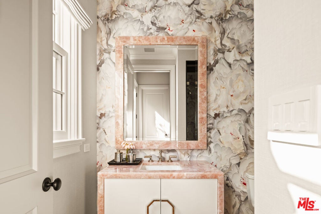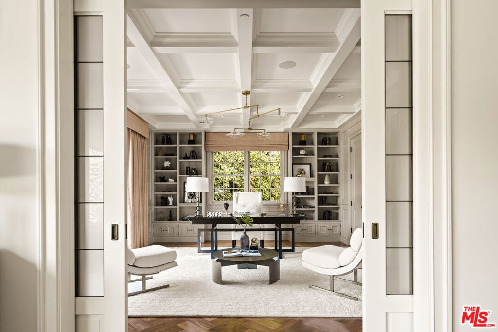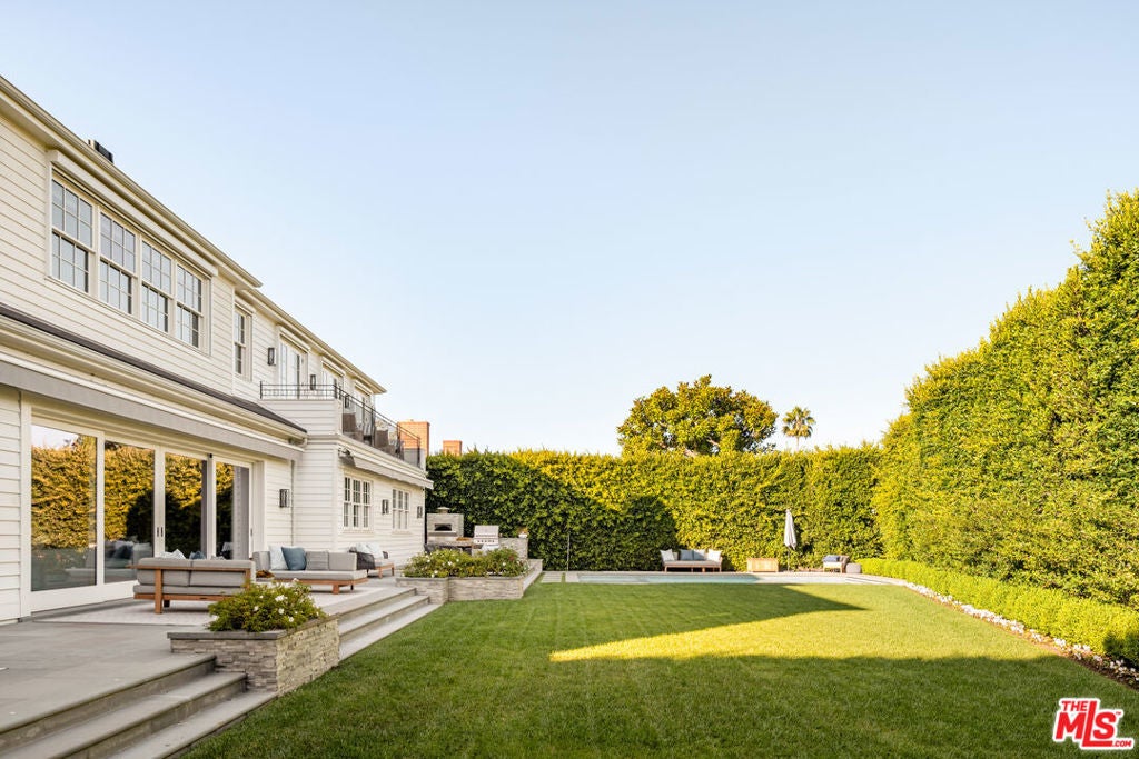 Tucked away in the highly sought-after Lower Riviera of Pacific Palisades, this exceptional traditional estate captures the spirit of understated luxury through impeccable craftsmanship, refined details, and a calm, sophisticated atmosphere. From timeless finishes to thoughtfully executed upgrades and distinctive architectural windows, the home has been designed with both beauty and livability in mind. Spanning three expansive levels, the residence offers a natural sense of flow and balance. On the main floor, bathrooms accented with amethyst and rose quartz bring a subtle, tranquil elegance. Formal spaces include a richly detailed study and a graceful dining room, complemented by a hidden butler's pantry and separate wet bar ideal for both intimate dinners and larger gatherings. At the center of the home, the chef's kitchen stands out with its honed marble hood, top-tier appliances, and a welcoming breakfast nook. Just beyond, the family room opens effortlessly to a secluded outdoor setting featuring a bluestone terrace, pool and spa with automated cover, built-in BBQ, wood-fired pizza oven, and mature hedging for privacy. Natural light pours into the upper level through skylights, where two ensuite bedrooms and a versatile bonus room complete with custom wallpaper and whiteboard walls offer flexibility for work, study, or play. The primary suite is a true retreat, highlighted by vaulted ceilings, linen-upholstered walls, a statement fireplace, motorized blackout shades, and a private balcony with subtle ocean glimpses. Its spa-like bath features hand-laid Michael Aram floral marble, heated floors, dual walk-in closets, and a dual-suite configuration with individual Japanese toilets. The lower level is designed for both relaxation and recreation, showcasing a cutting-edge home theater with a full-scale screen, cinema-quality projection, custom seating, and rich black mohair walls. This floor also includes a generous flex space, an additional bedroom, a custom wine cellar, and a fully equipped gym with mirrored walls and a ballet barre. Additional features include a comprehensive security system, Crestron whole-home audio and video integration, three retractable outdoor awnings, a vegetable garden, and completed post-fire inspection with air-quality remediation for added reassurance. Blending classic elegance with modern comfort, this home presents a rare opportunity to live in one of Los Angeles' premier neighborhoods, just moments from the renowned Riviera Country Club. Offered partially furnished, it includes a thoughtfully curated selection of designer and custom furnishings throughout.