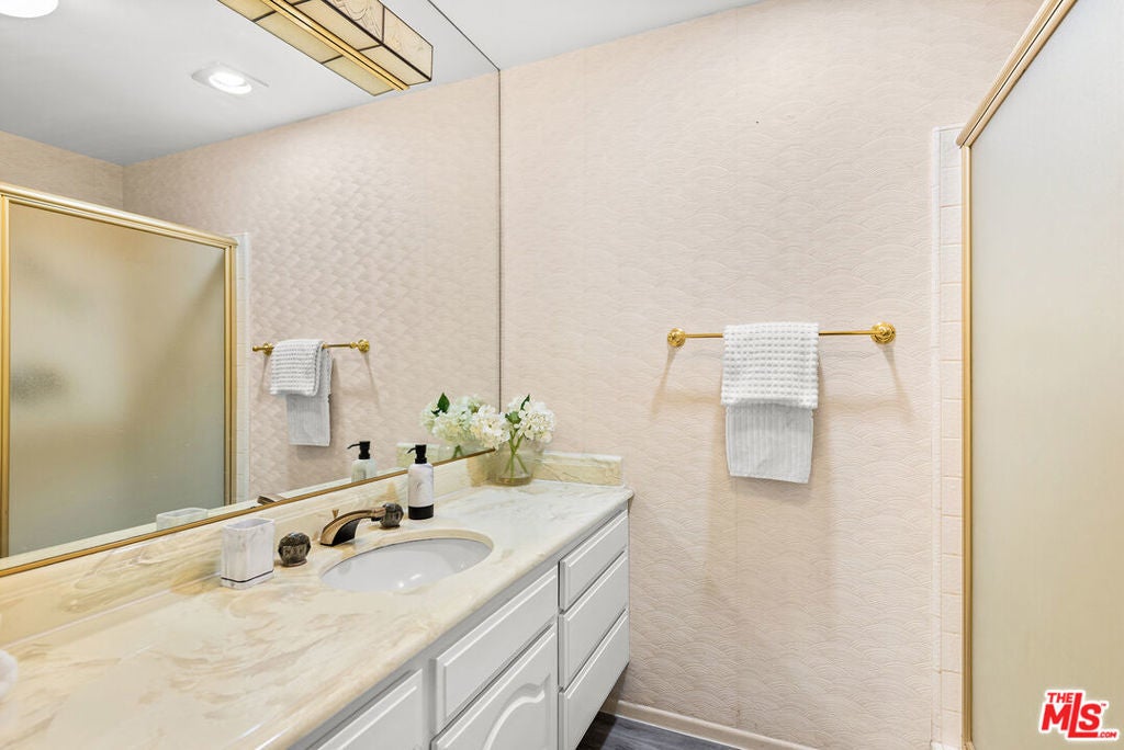 PRIME LOCATION in Building 4 at the exclusive gated community of Encino Towers, is this 1985 SF single story, 2 bed, 3 bath unit with 2 private balconies. The spacious primary suite has a double door entry, 2 walk-in closets, gas fireplace and access to the rear balcony with hillside views. The large primary bath includes separate tub, shower, and double sinks. The living room has a fireplace, wet bar and access to the front balcony with amazing views overlooking the community, trees and the hills of the valley. Other features include the kitchen with stainless appliances, 2 ample pantries, views; dining area; in unit laundry; two side by side parking spaces & additional storage in the garage. Fireplaces are decorative. The grounds are quiet & serene, with lush landscaping, a heated pool, 2 spas, waterfalls, tennis courts, pickleball & resort-like living. HOA includes 24-hour security gate, EQ ins, water, high speed Internet, cable TV & common area maintenance. Guest parking. The exterior of all buildings at Encino Towers have been recently painted and all entrance lobbies have been updated. Just South of Ventura Blvd near shops & restaurants.