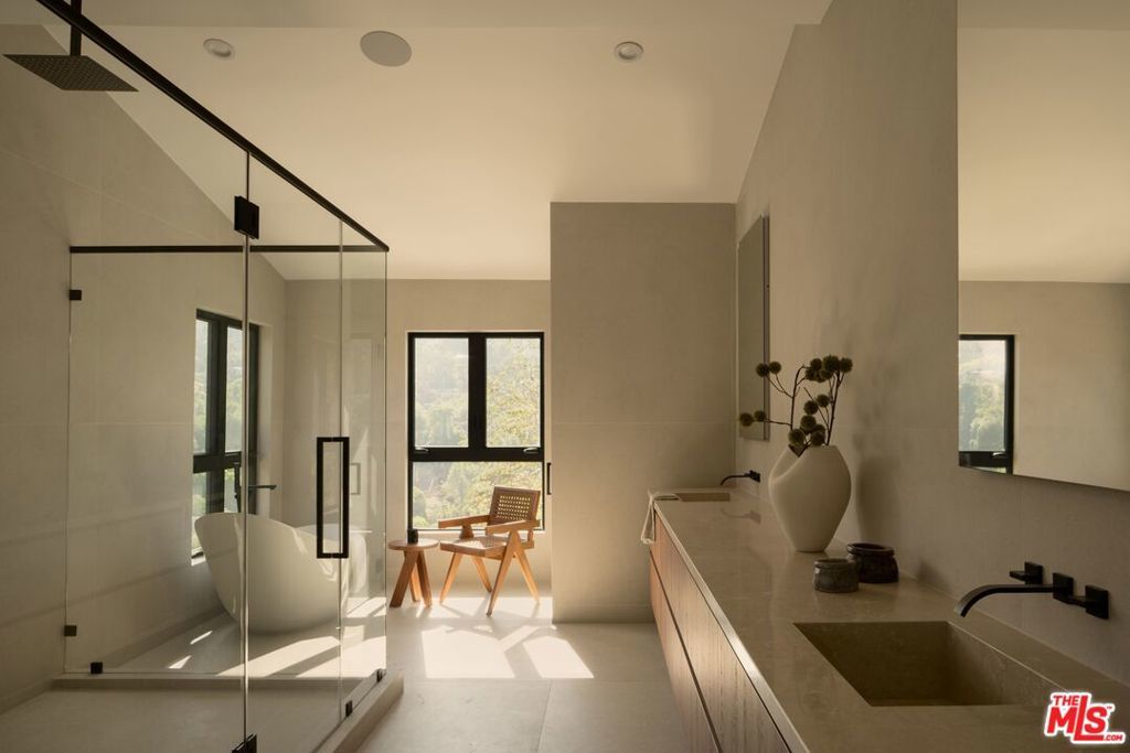 There are very few homes in the Hollywood Hills that deliver this level of privacy, scale, and presence just minutes from the Sunset Strip. This newly built home as a modern architectural estate, set beyond a long gated approach and surrounded by canyon views that stretch in every direction. The sense of arrival is immediate, anchored by long driveway that comfortably accommodates multiple vehicles, a rarity in this pocket of Nichols Canyon. Inside, the home is warm, modern, and organic in tone. Natural light pours through expansive walls of glass, and the layout flows easily from one space to the next, opening directly to the outdoors. It's designed for both everyday living and entertaining, while still feeling calm and removed from the city.The kitchen is clean and functional, featuring Thermador appliances, Taj Mahal waterfall countertops, custom cabinetry, and a walk-in pantry. The exterior is where the property truly distinguishes itself. A zero-edge pool and spa overlook the canyon, framed by multiple outdoor living areas including a built-in BBQ, fire feature lounge, covered patio, and a flat grassy yard, and a half sport court, an increasingly uncommon combination. The primary suite is set apart for privacy and scale, featuring vaulted ceilings, a fireplace, dual oversized walk-in closets, and a private balcony oriented toward the views. The en-suite bath is designed as a true escape, complete with a soaking tub, walk-in shower, and dedicated vanity. Additional bedrooms are generously sized, ideal for guests, workspace, or flexible living. Set in one of the most desirable pockets of the Hollywood Hills, this is a home for someone who values discretion, space, and a seamless indoor-outdoor lifestyle, all within minutes of Los Angeles' best dining, nightlife, and culture. Minimum 13-month lease required.