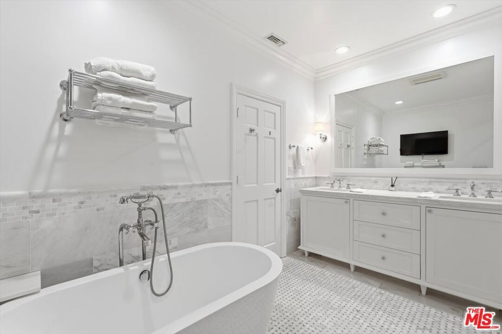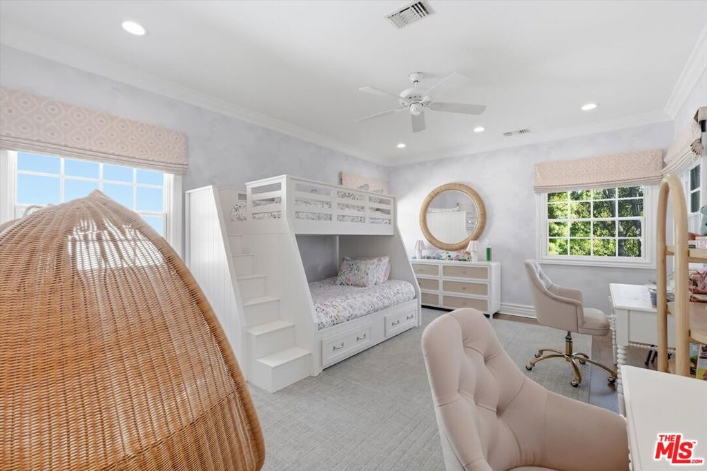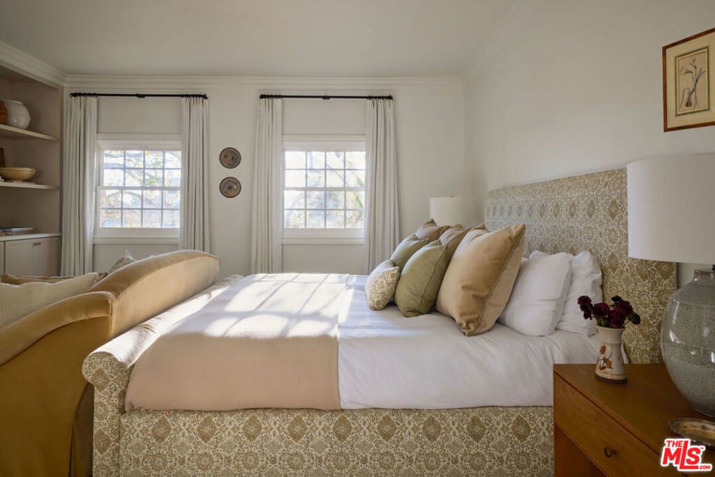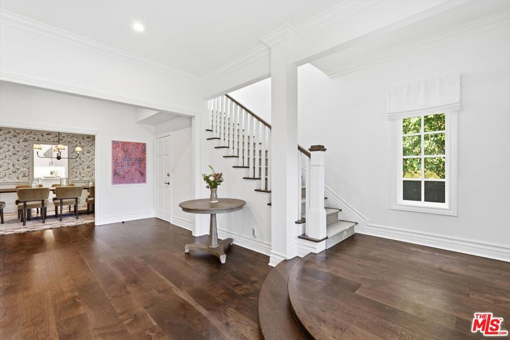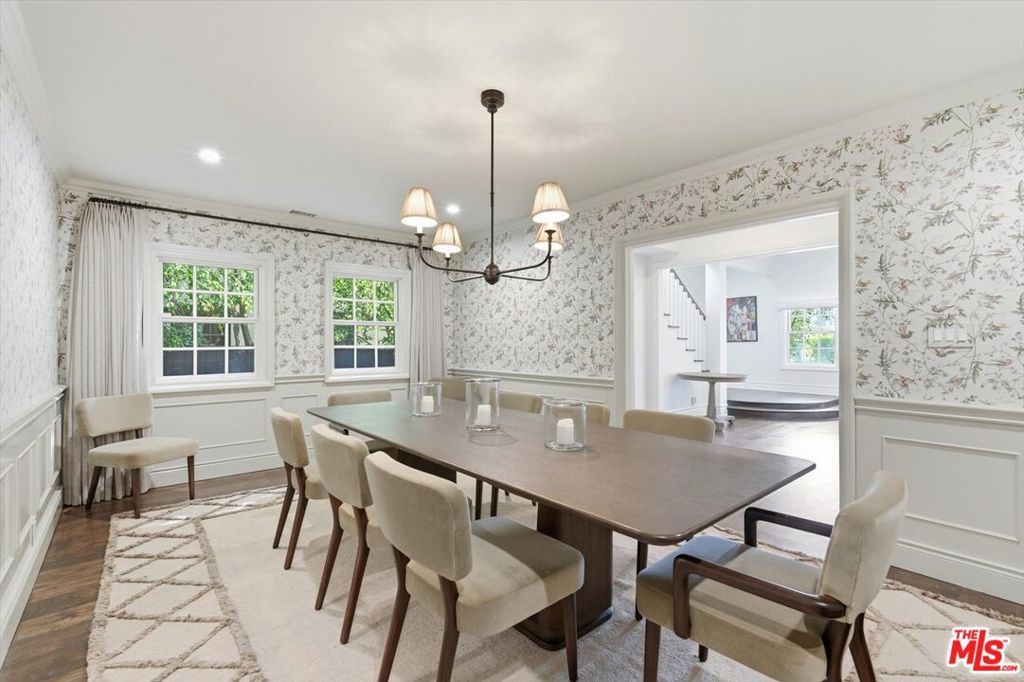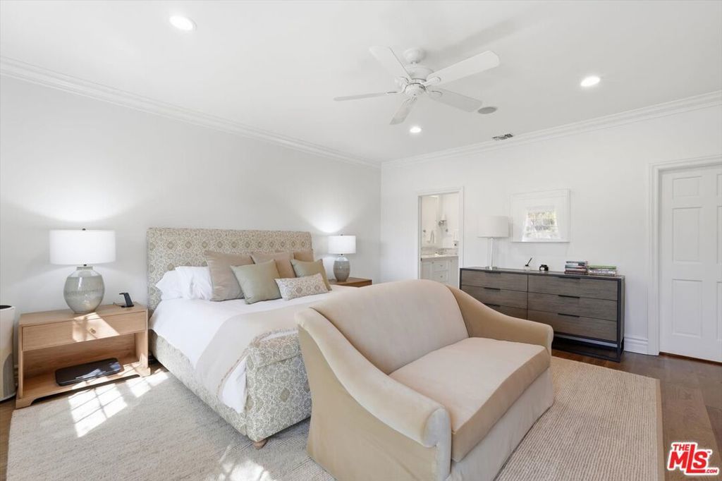 Location, Location, Location! Unbelievable opportunity to own this designer-done remodeled 2-story Traditional. The front yard greets you with lush landscaping bursting with flowers and a 100-year-old sycamore tree. The entry is light and bright with high ceilings flowing to the living room and dining room. The living room has a fireplace and a huge window overlooking the front garden. The custom dining room has built-in custom cabinetry with a built-in wine refrigerator and sink perfect for entertaining. The family room / media room has high ceilings and opens to the kitchen and also offers casual dining. The kitchen has been completely remodeled with all new appliances, new cabinets and counters. As well as a brand new HVAC and water filtration system. In addition, the added new butler's pantry area enhances the dining room and kitchen experience. French doors from the family room open to a truly magical backyard with a pool, outdoor fireplace, outdoor theatre, dining area, lush landscaping with total privacy, and multiple entertaining areas. The ADU is brand new with a kitchenette, built-in desks, and floor-to-ceiling storage cabinets with French doors that open to the outside dining area. Upstairs are 5 rooms. The primary spans the entire front of the house with large windows and high ceilings. There's a large sitting room that could be an office, nursery, or playroom and a large bedroom with a fireplace. The primary also features a remodeled bathroom with dual sinks, a soaking tub, a steam shower, and 2 sizable walk-in closets. Off the center hallway are 3 additional bedrooms. 2 of them are medium-sized with 1 ensuite and other shares hallway bathroom, 3rd is a junior suite with a large bedroom ensuite and a walk-in closet. This home has tons of light, high ceilings, hardwood floors throughout, a gated driveway with a covered electric awning the length of the driveway, new lush landscaping, and outdoor lighting, and is located on the best street between Sunset Blvd and San Vicente in Brentwood! There's a private dedicated 24-hr/ 7 days a week security guard for Anita, Medio, and Carmelina. ALL wires have been put underground . Some furniture could be available for additional purchase as all is custom for the home. This home is move in ready, just bring your toothbrush!