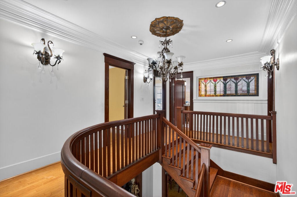 Located in the highly sought-after Hancock Park neighborhood, this classic 1914 Craftsman residence is a rare offering within the Historic Preservation Overlay Zone (HPOZ). The home features 4 bedrooms and 2.5 baths with a layout that feels both open and connected. Select photos include virtual staging to illustrate design possibilities and showcase the home's full potential. Each bedroom offers direct access to one of two full-length balconies front and rear creating a seamless extension of the living space and embracing Southern California's indoor-outdoor lifestyle. The inviting front yard and expansive raised porch with elegant columns set the tone for the home's timeless architectural appeal. Inside, light-filled living spaces feature hardwood floors, crown molding, two fireplaces, and distinctive staircases, all enhanced by abundant natural light. The kitchen offers granite countertops, travertine flooring, and French doors that open to a private redwood deck, creating an easy flow for everyday living and entertaining. The backyard is a peaceful retreat with mature fruit trees and multiple areas to relax or gather. With its classic architecture, generous layout, and enduring charm, this home presents an exceptional opportunity to update and personalize.