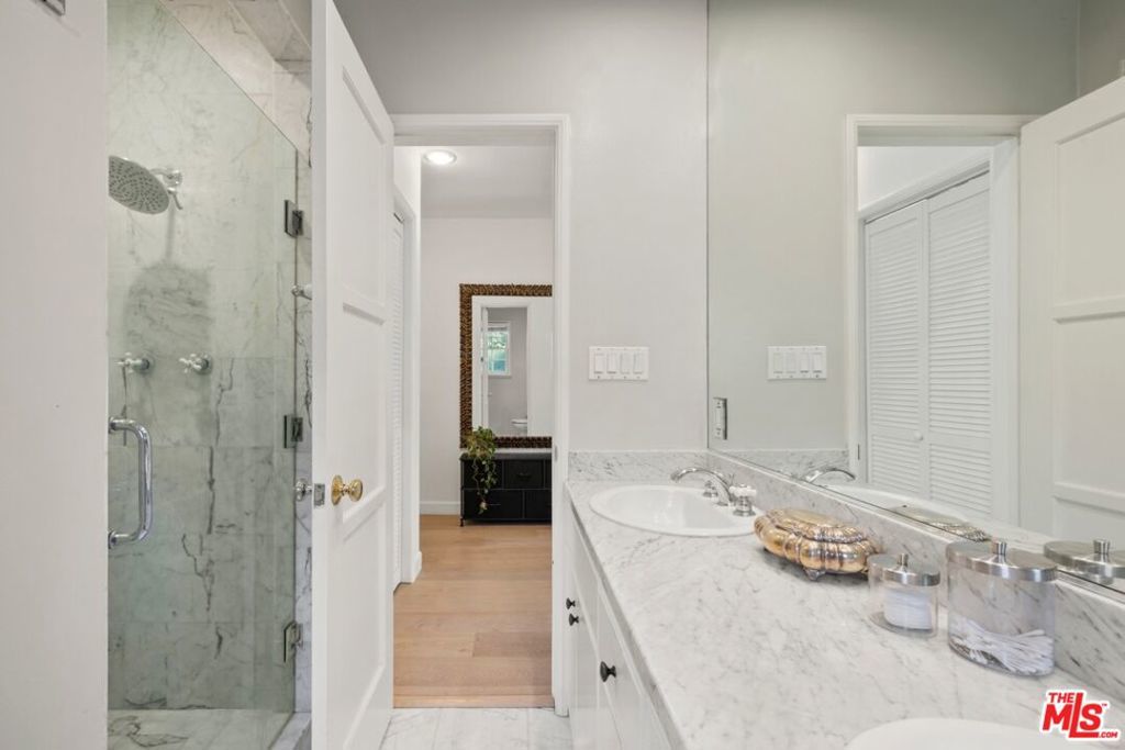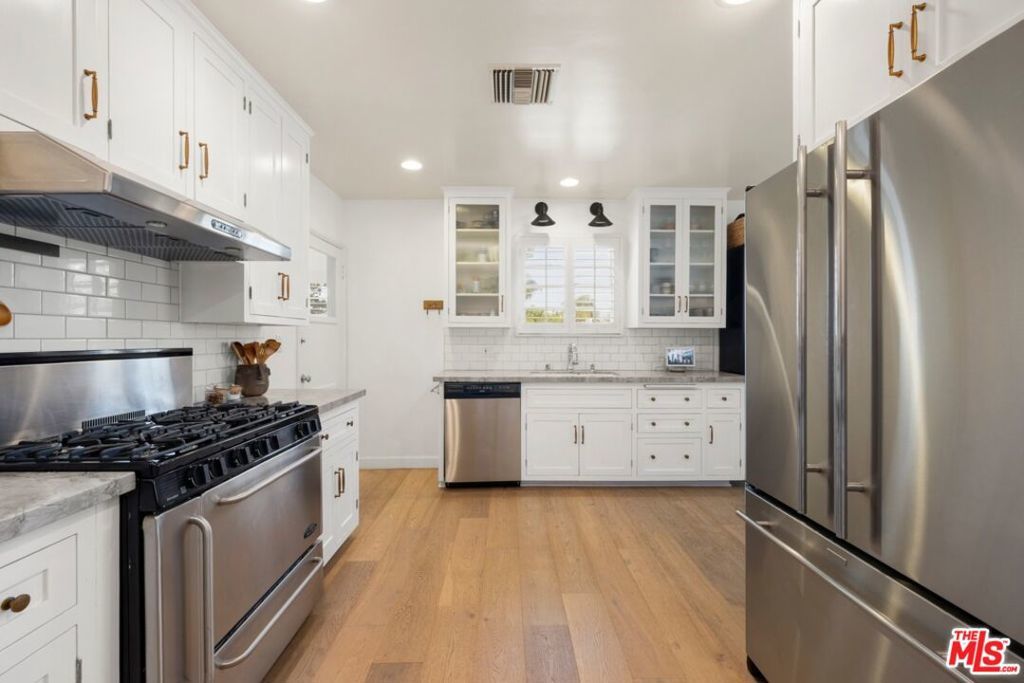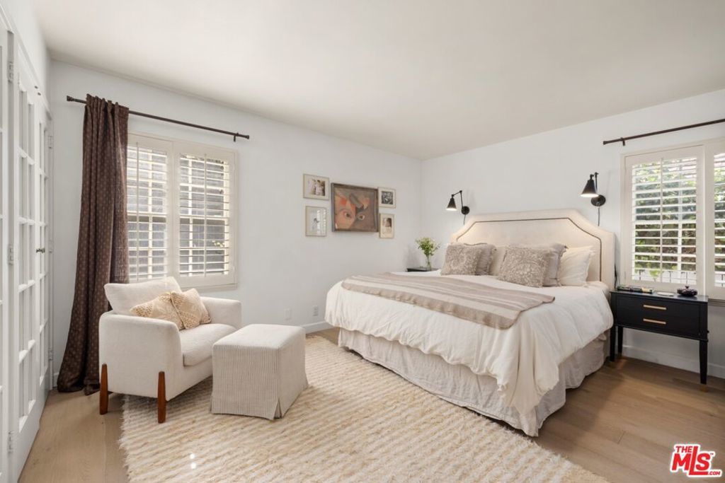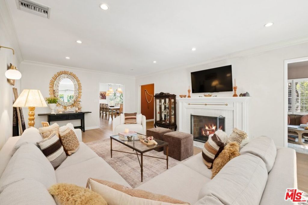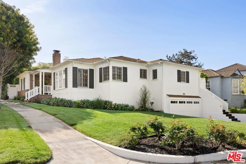 Situated on a picturesque corner lot in prime Cheviot Hills, this beautifully updated single-story residence offers three bedrooms and three bathrooms, blending timeless traditional charm with refined, stylish interiors. A welcoming foyer opens to a spacious, sun-filled living room featuring crown molding, recessed lighting, French doors, newer White Oak hardwood floors, and an elegant fireplace. Just beyond, the formal dining room provides a warm and inviting space for entertaining dinner guests and flows seamlessly into the gourmet kitchen, complete with marble countertops, a subway tile backsplash, stainless steel appliances, custom cabinetry with designer hardware, and a cozy breakfast nook. The inviting family room, centered around a second fireplace, provides a warm and comfortable space to unwind. The primary suite is a true retreat, showcasing generous closet space, hardwood floors, custom shutters, and en-suite bathroom with dual vanities, stone countertops, and stone tile shower. French doors open to a private, fully hedged backyard with low-maintenance turf and a spacious brick patio, ideal for seamless indoor-outdoor living and entertaining. Additional highlights include two well-appointed guest bedrooms, two additional bathrooms, a dedicated laundry room, a two-car garage, and an oversized driveway. Ideally located in the highly sought-after heart of Cheviot Hills, this exceptional residence is just moments from Fox Studios, the Griffin Club, and the premier shopping, dining, and entertainment of Westfield Century City.