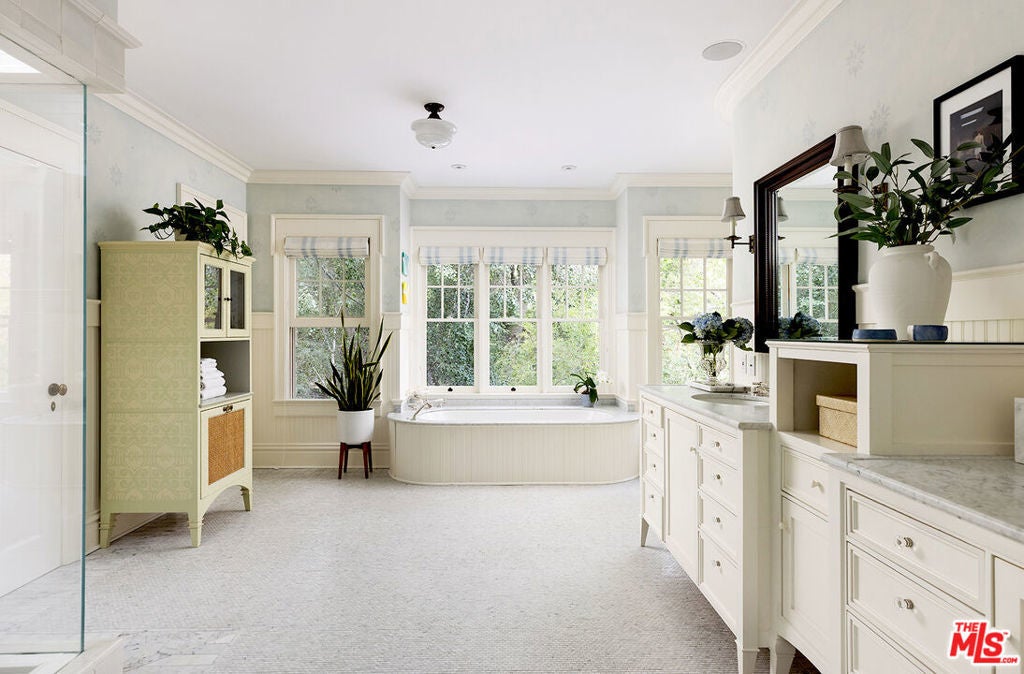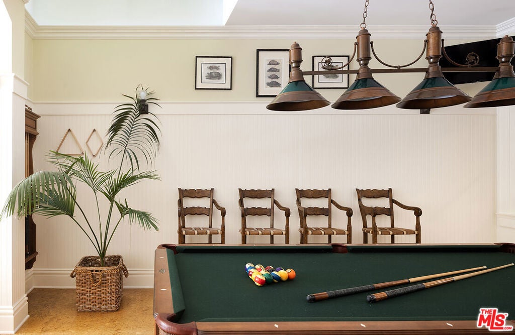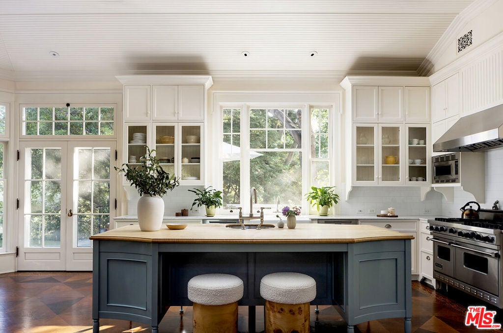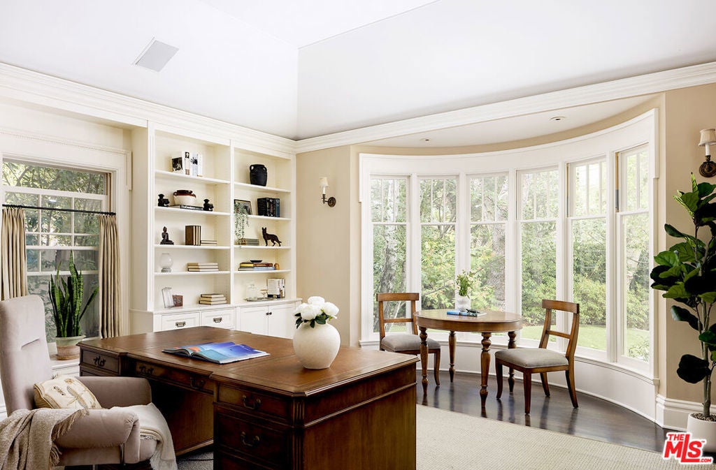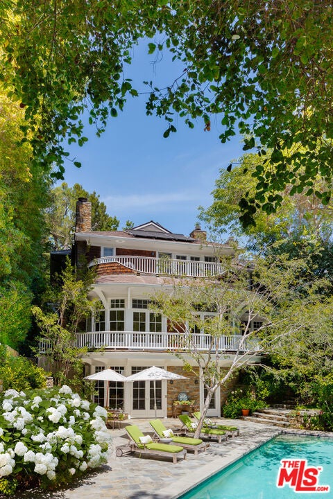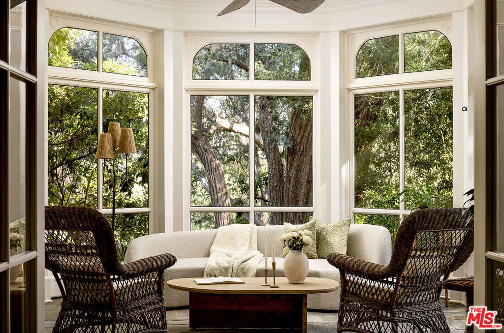 Sited on nearly one acre of lush grounds adorned with blossoming hydrangeas, cascading wisteria, and swaying mature trees, a timeless, magical gated compound unfolds; completely private, hidden from the street and reached by a long, tree-lined driveway. Designed by architect Lise Claiborne Matthews, AIA, ASID, and never before on the market, this rare offering spans two verdant parcels, 13127 Boca de Canon and 2041 Mandeville. Once the site of a historic botanical garden, the property is fully encircled by mature trees, offering exceptional privacy. The enchanting facade opens to interiors that blend elegance and warmth, featuring soaring ceilings, curved glass windows, French doors at nearly every turn, and exquisite custom millwork throughout. The open-concept layout encourages effortless entertaining. Upon entering, guests are welcomed by a sense of scale and sophistication, with an elegant dining room and formal living room anchored by a marble fireplace and framed by architecturally distinctive ceilings and curved glass windows. Filtered light and greenery are visible from nearly every room. The living area includes a cozy step-down family room with media center and fireplace. The chef's kitchen is appointed with a butcher-block island, three sinks, Viking range, Sub-Zero refrigeration, dual Miele dishwashers, and pantry. A sunlit informal dining area and tranquil sunroom provide serene spaces for morning coffee or quiet reflection. The main level also includes a guest suite, large study, and sixth bedroom. The expansive primary suite offers a sitting room, French doors to a private balcony, custom niches, and a spa-inspired bath with marble dual-sink vanity, oversized steam rain shower, soaking tub, dual water closets, dressing area, and two walk-in closets. Secondary bedrooms are spacious and filled with natural light. The recreational level features an entertainment and wellness wing complete with kitchenette, billiards room, sauna, cinema, gym, wine cellar, soundproof playroom, and a light-filled atrium. Outdoors, resort-style amenities include a 50-foot saltwater pool, meditation garden, koi pond, grassy lawn, patios, and lounging decks, with ample room for future additions such as a sport court or play area. Completing the estate are a three-car garage, a fully functional gym or potential ADU, expansive motor court, and parking for twelve-plus vehicles. The entrance is accessed via a private drive off Mandeville Canyon. Just moments from Brentwood, Santa Monica, and Pacific Palisades, the estate offers both convenience and discretion while feeling entirely removed from the city.