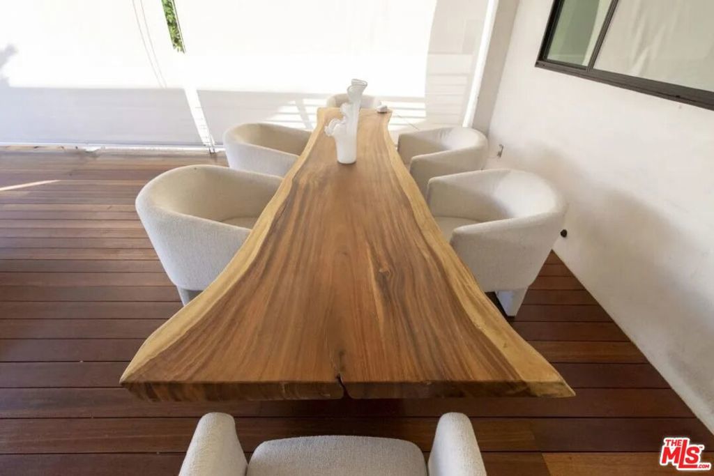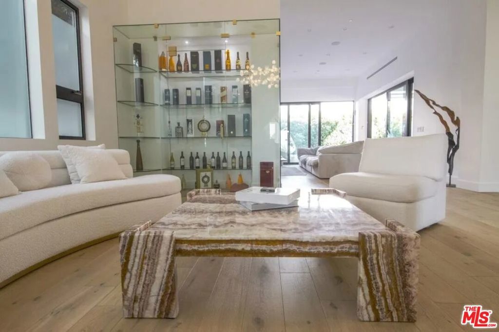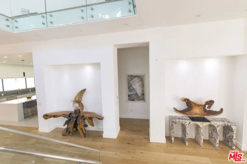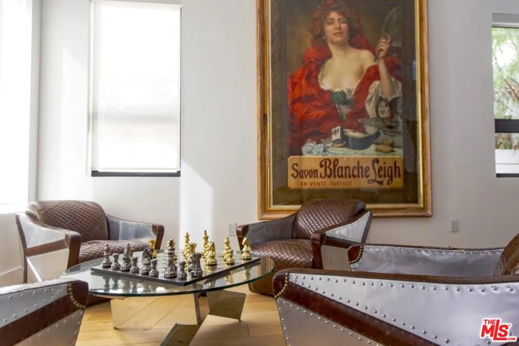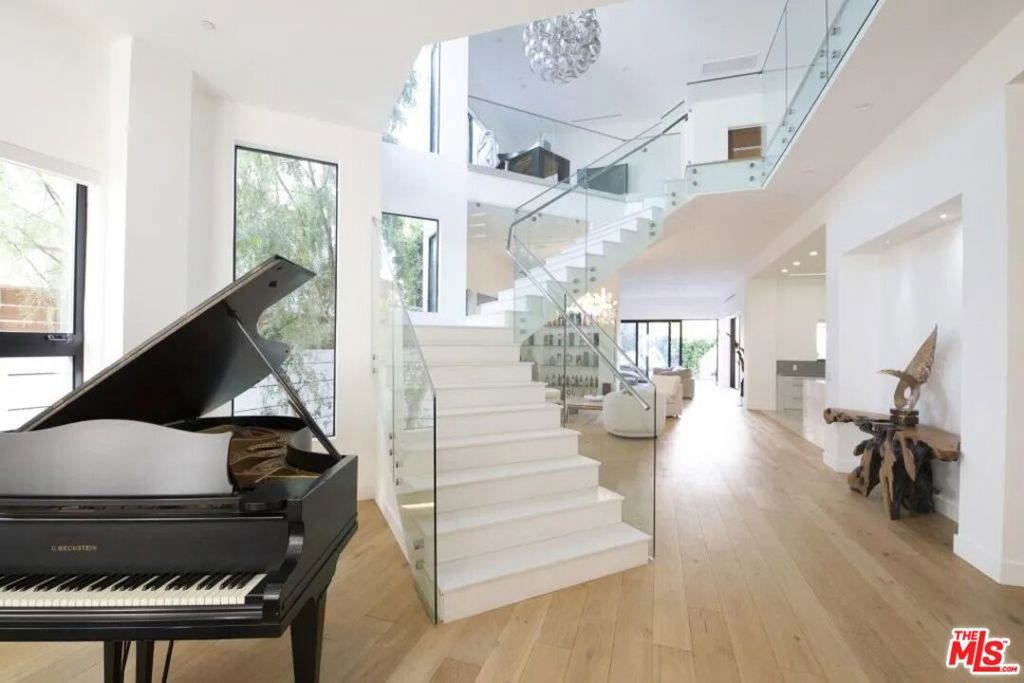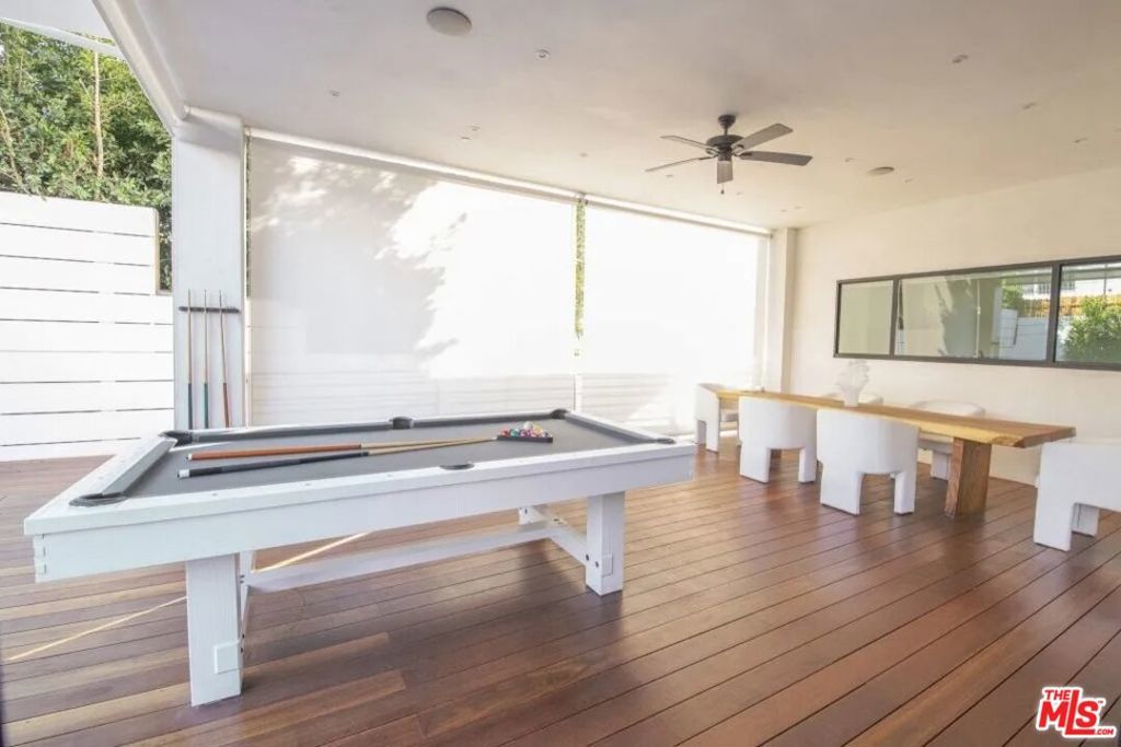 Fully furnished and turnkey, two-story modern residence located in the Melrose Village area. Recently remodeled, this home features high ceilings, a staircase entry, and an open floor plan designed for functional living. The kitchen is equipped with Thermador stainless steel appliances, including a six-burner range, center island with sink, built-in microwave, and ample counter space. The main level includes an en-suite bedroom suitable for guests, office, or additional use. The living room opens to a covered patio through sliding glass doors, providing indoor-outdoor access. The backyard includes a pool, spa, built-in BBQ, cabana, and seating area. Upstairs, the primary suite features high ceilings, two walk-in closets, and a private terrace overlooking the backyard. The primary bathroom includes a soaking tub, glass-enclosed shower, and dual sinks. Three additional en-suite bedrooms and a den area complete the second level. Additional features include a home automation system, security system, and integrated audio.
